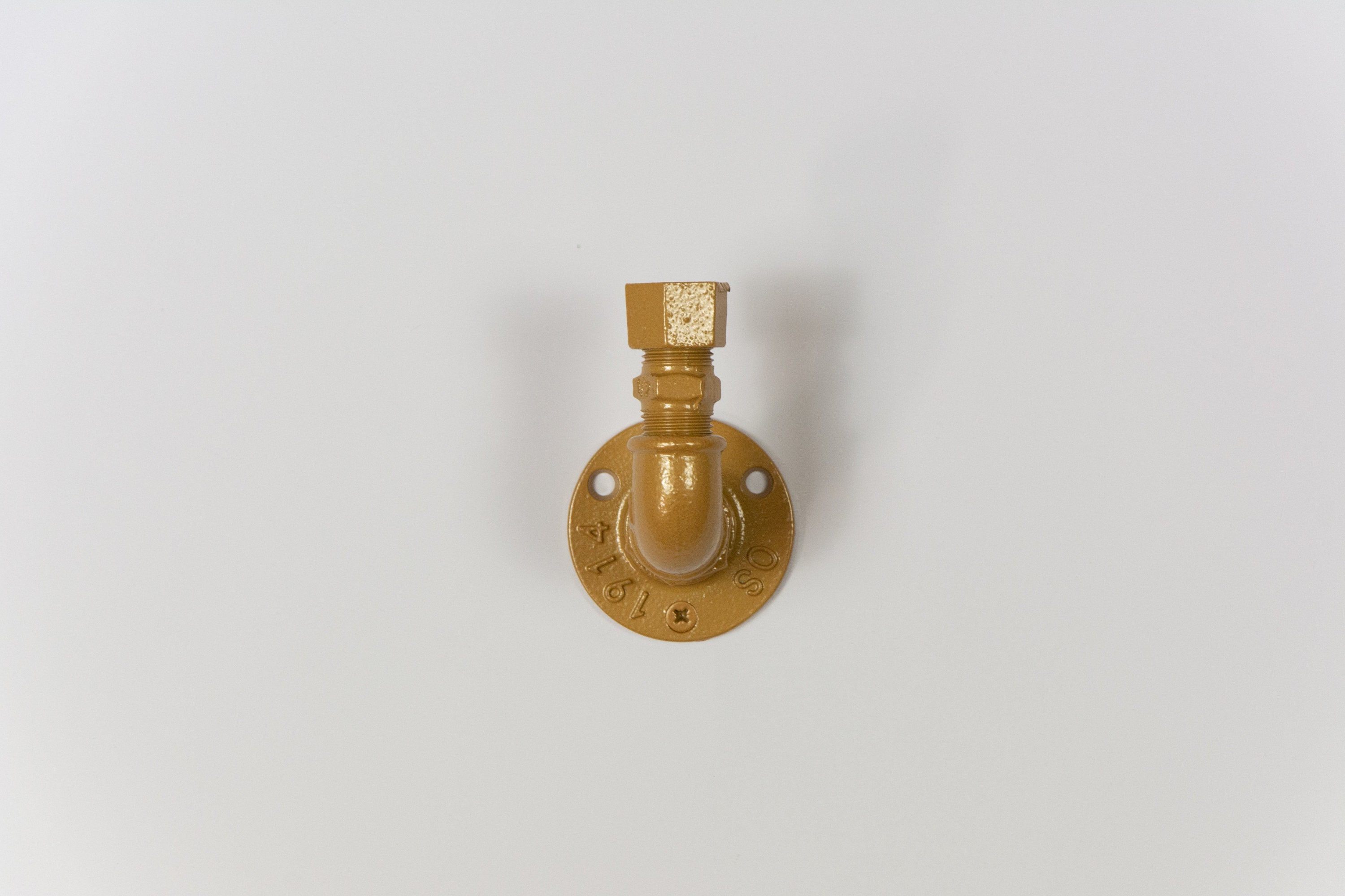 A modern pipe hook wall decor will definitely add a stylish appeal to any room! In a variety of color options to match any home decor including industrial, farmhouse, rustic, steampunk, and so on. The color of the hook in the pictures is Gold Pearl.