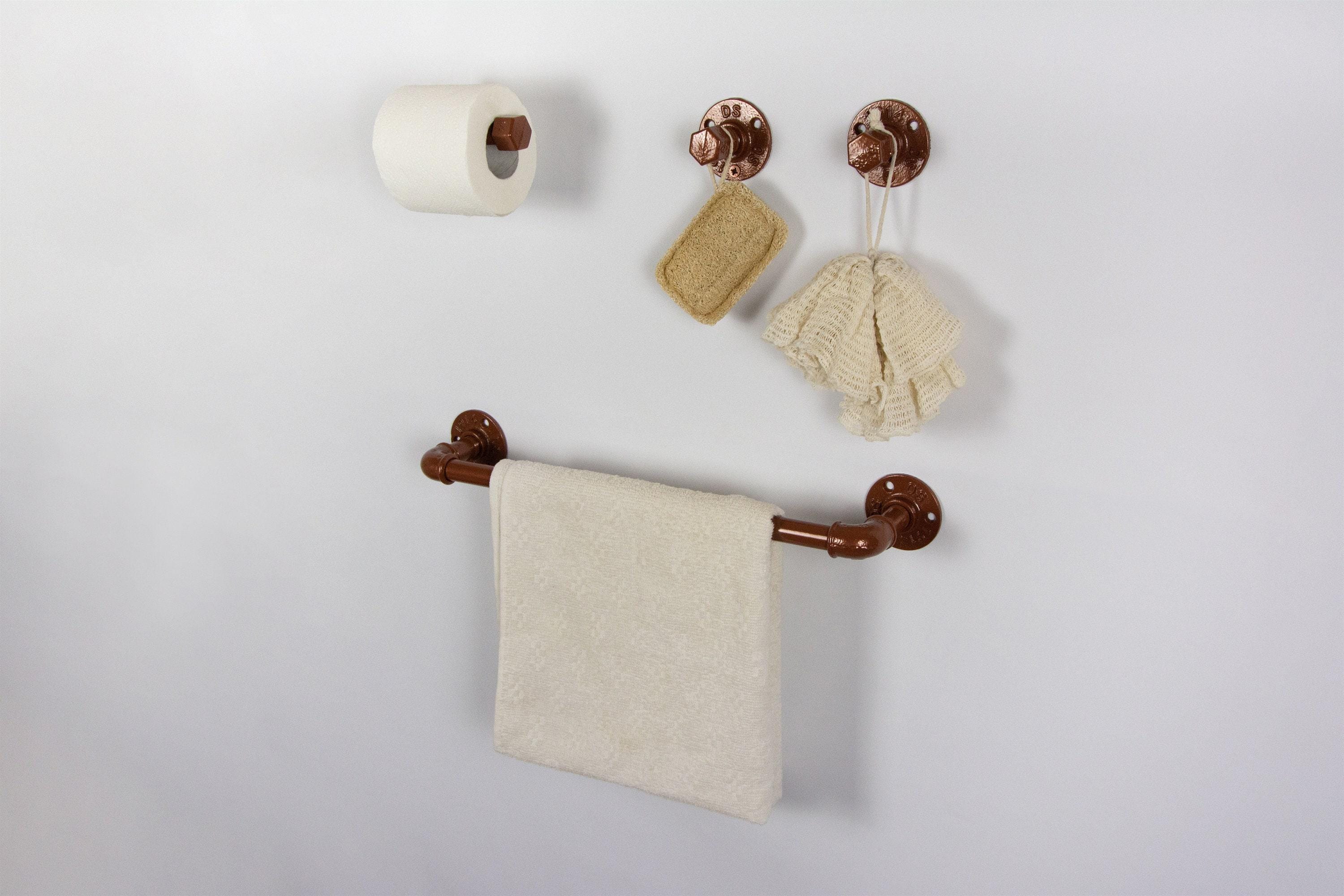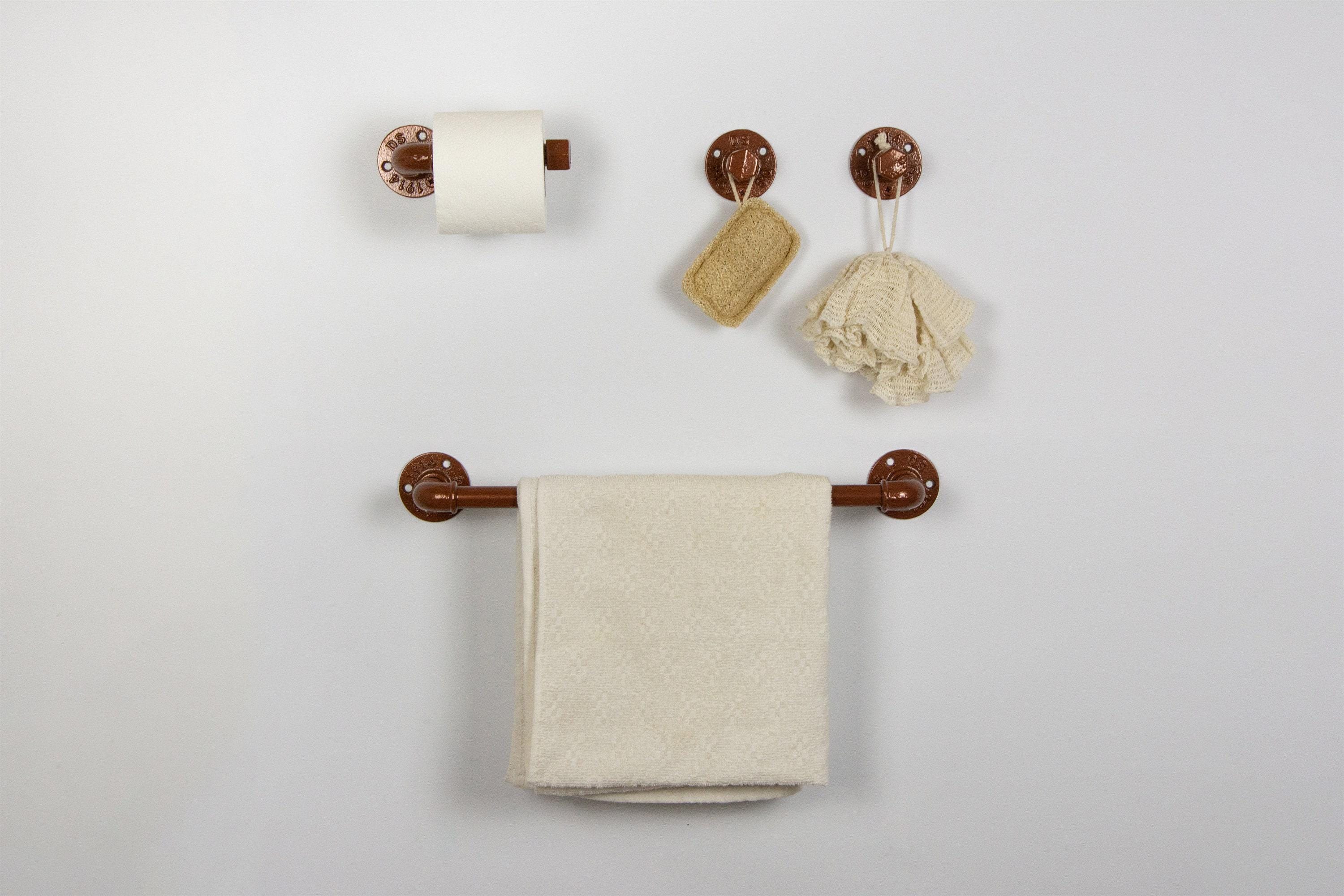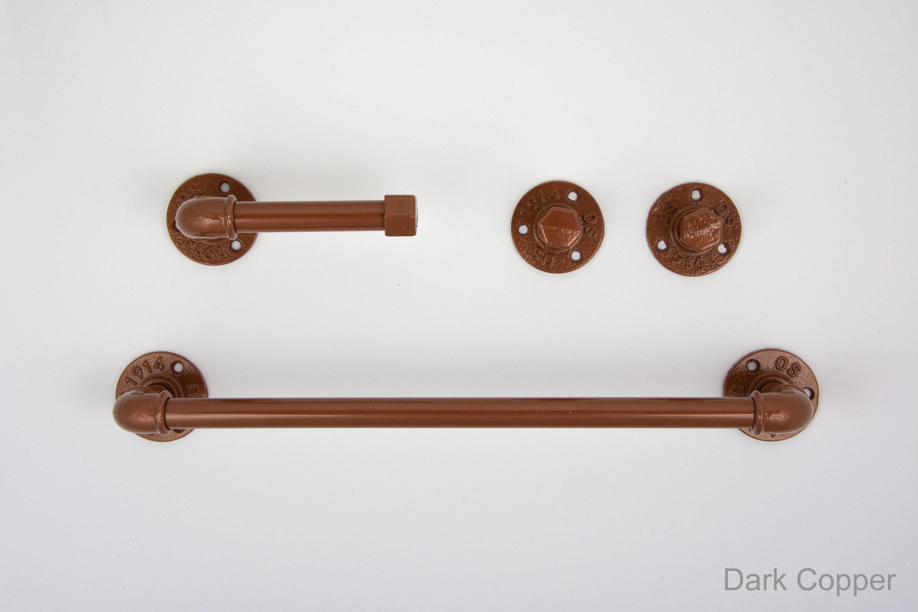 This practical industrial set will add charm and sturdiness to any bathroom! These modern bathroom accessories will be your new favorite functional pieces. The color of the set in the pictures is Dark Copper, however, it can be made in more than 65 colors!