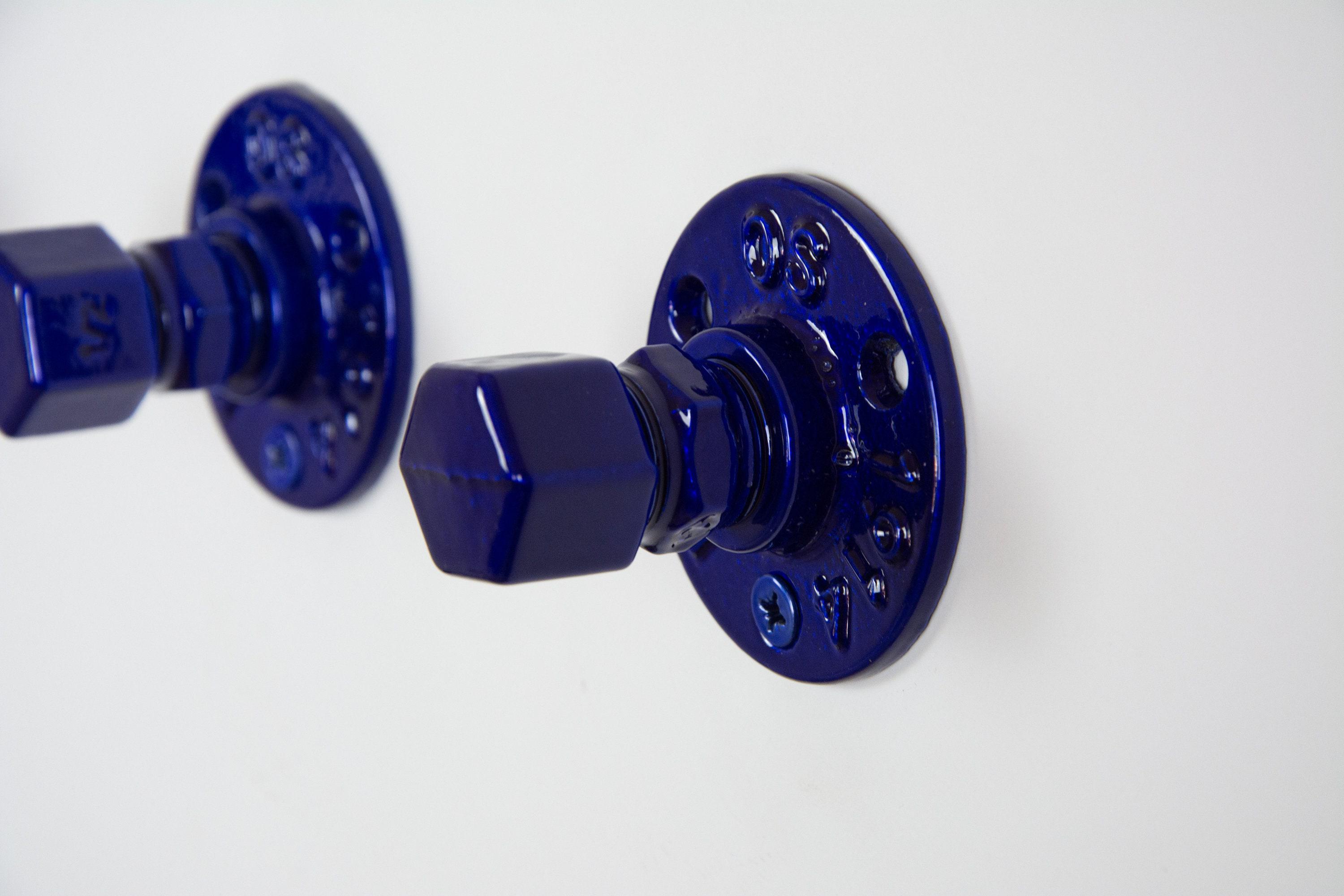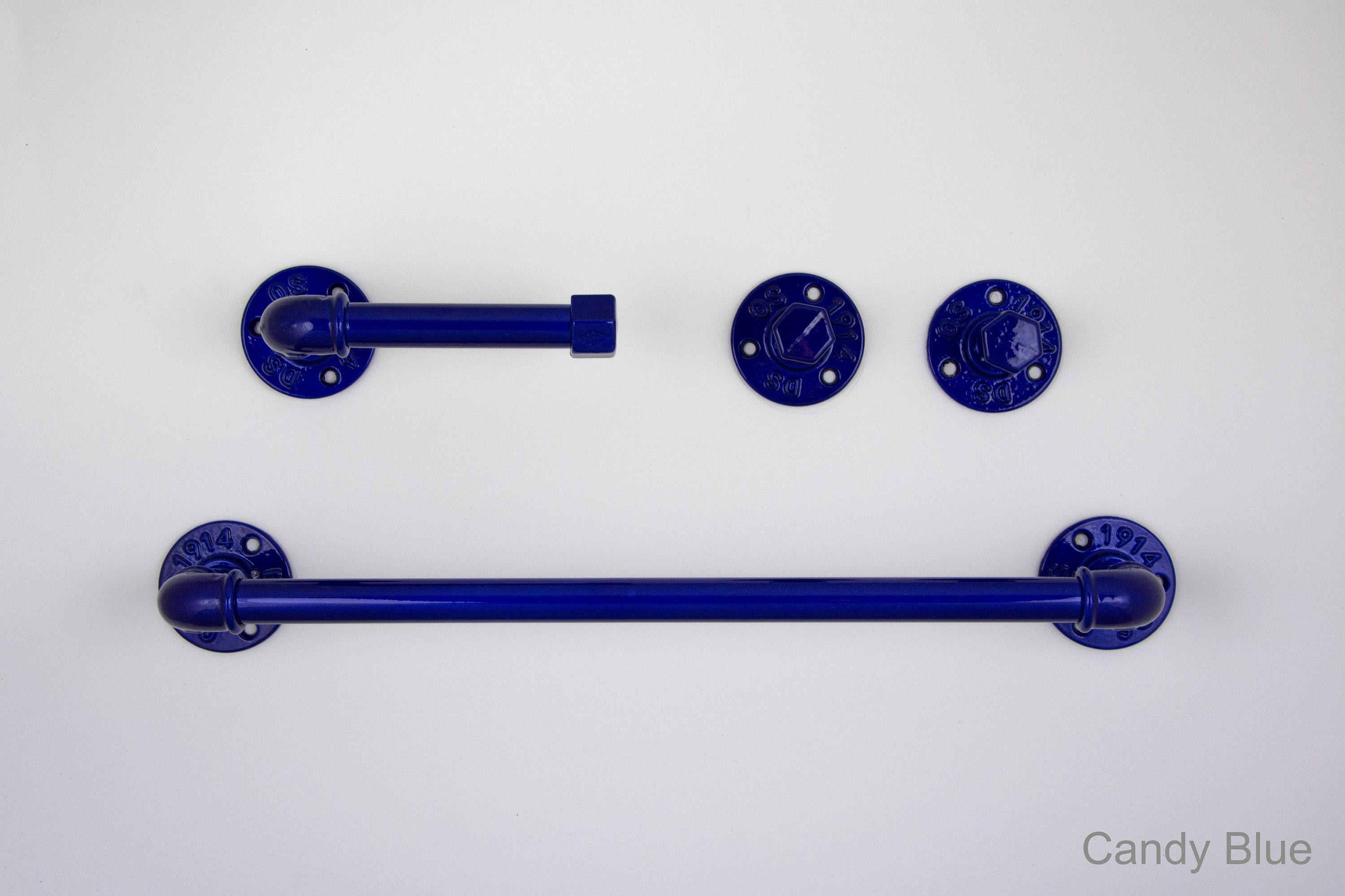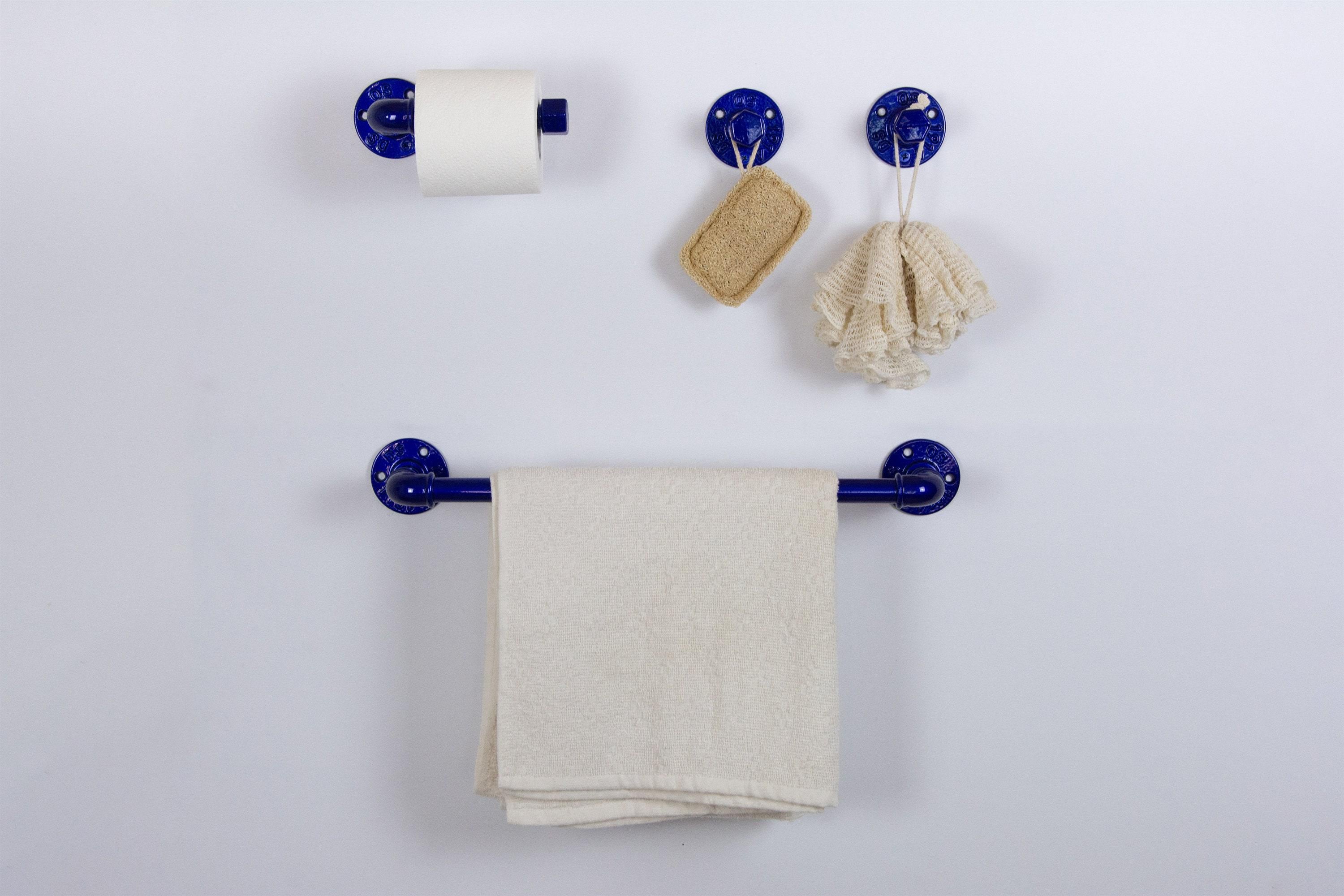 This practical pipe bathroom set will be a beautiful yet functional piece in your home! Use this pipe towel rack, toilet roll holder and wall hooks to keep your home organized. The color of the set in the pictures is Candy Blue, however, it can be made in more than 65 colors!