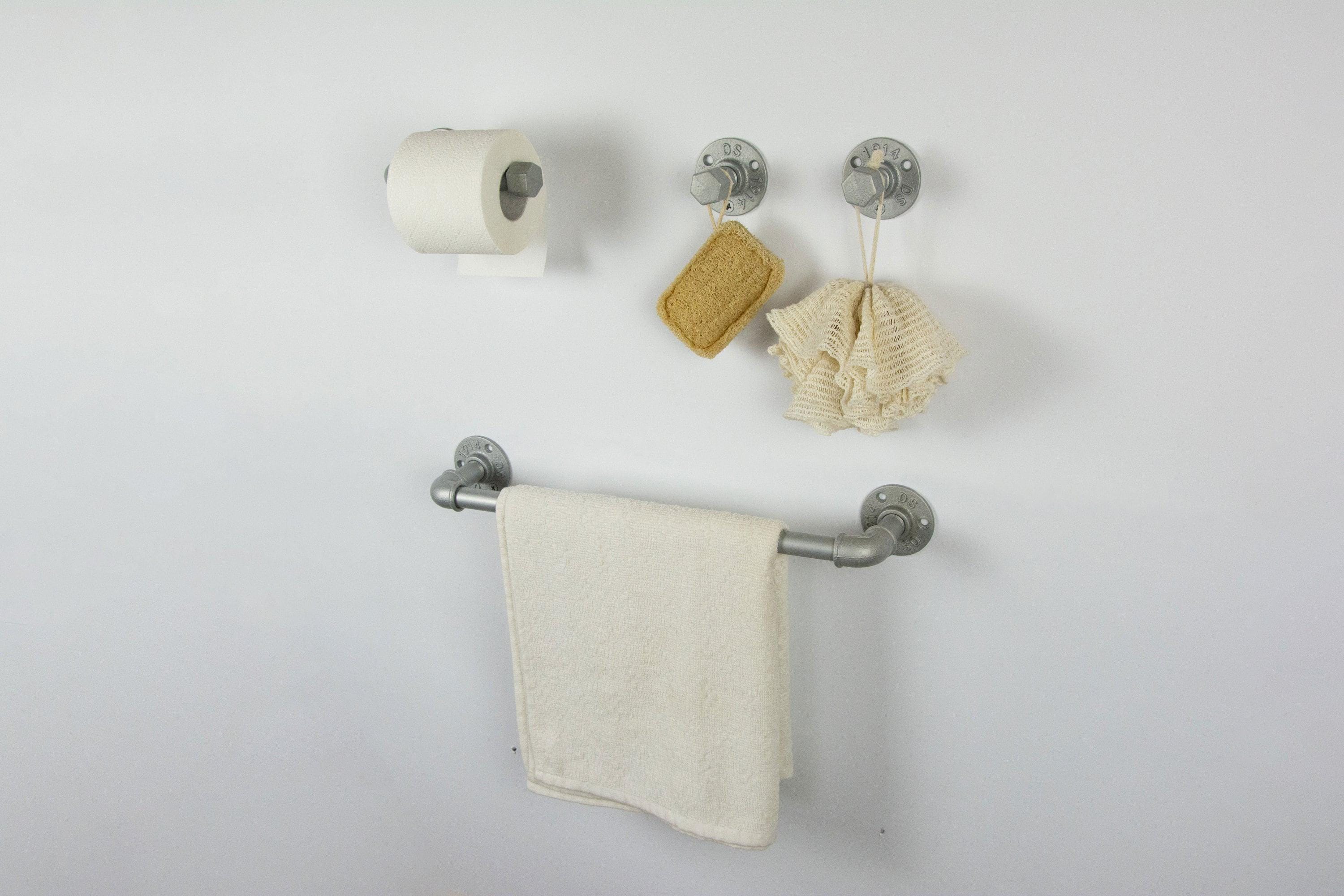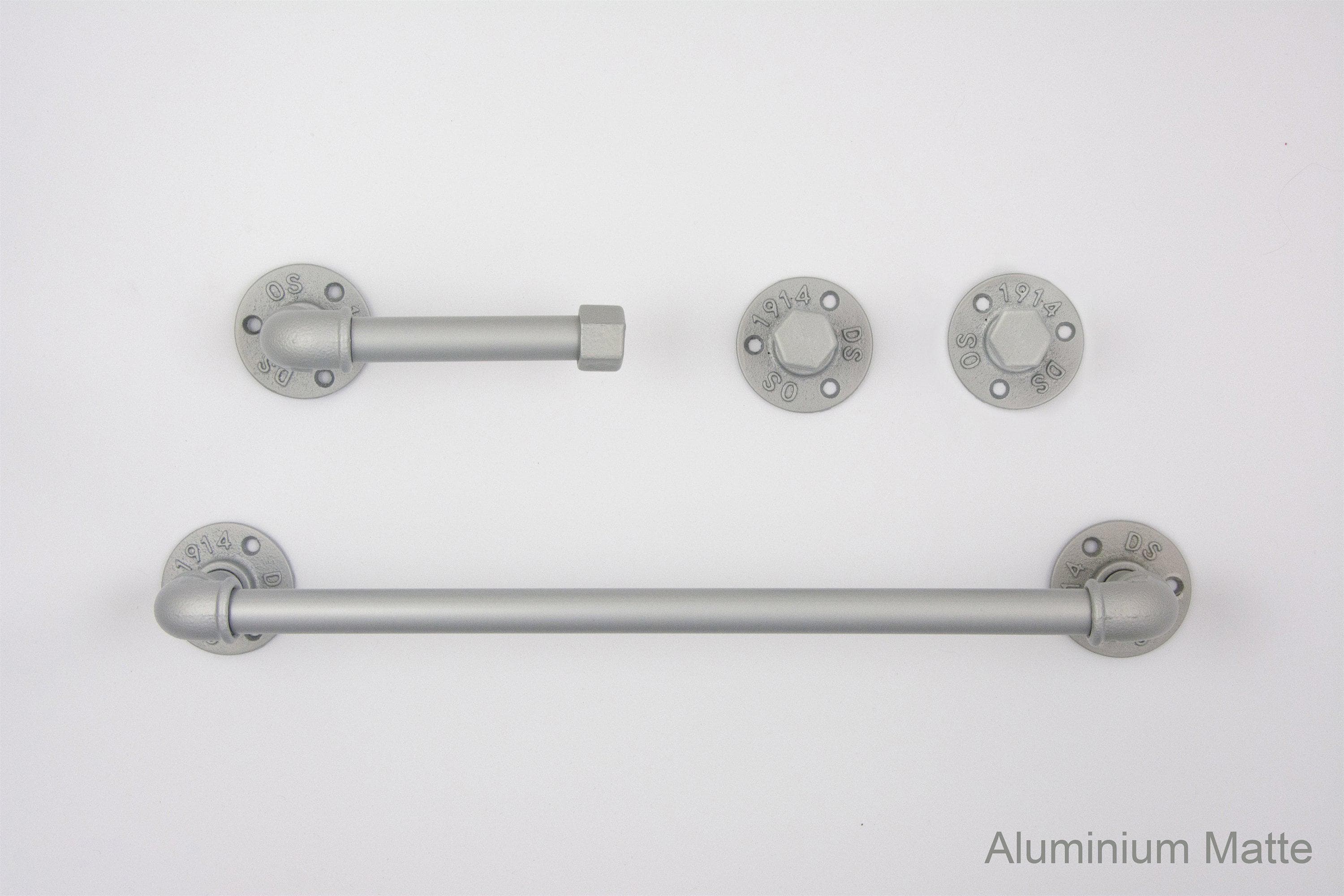 This practical industrial set will add charm and sturdiness to any bathroom! These modern bathroom accessories will be your new favorite functional pieces. The color of the set in the pictures is Aluminium Matte, however, it can be made in more than 65 colors!
