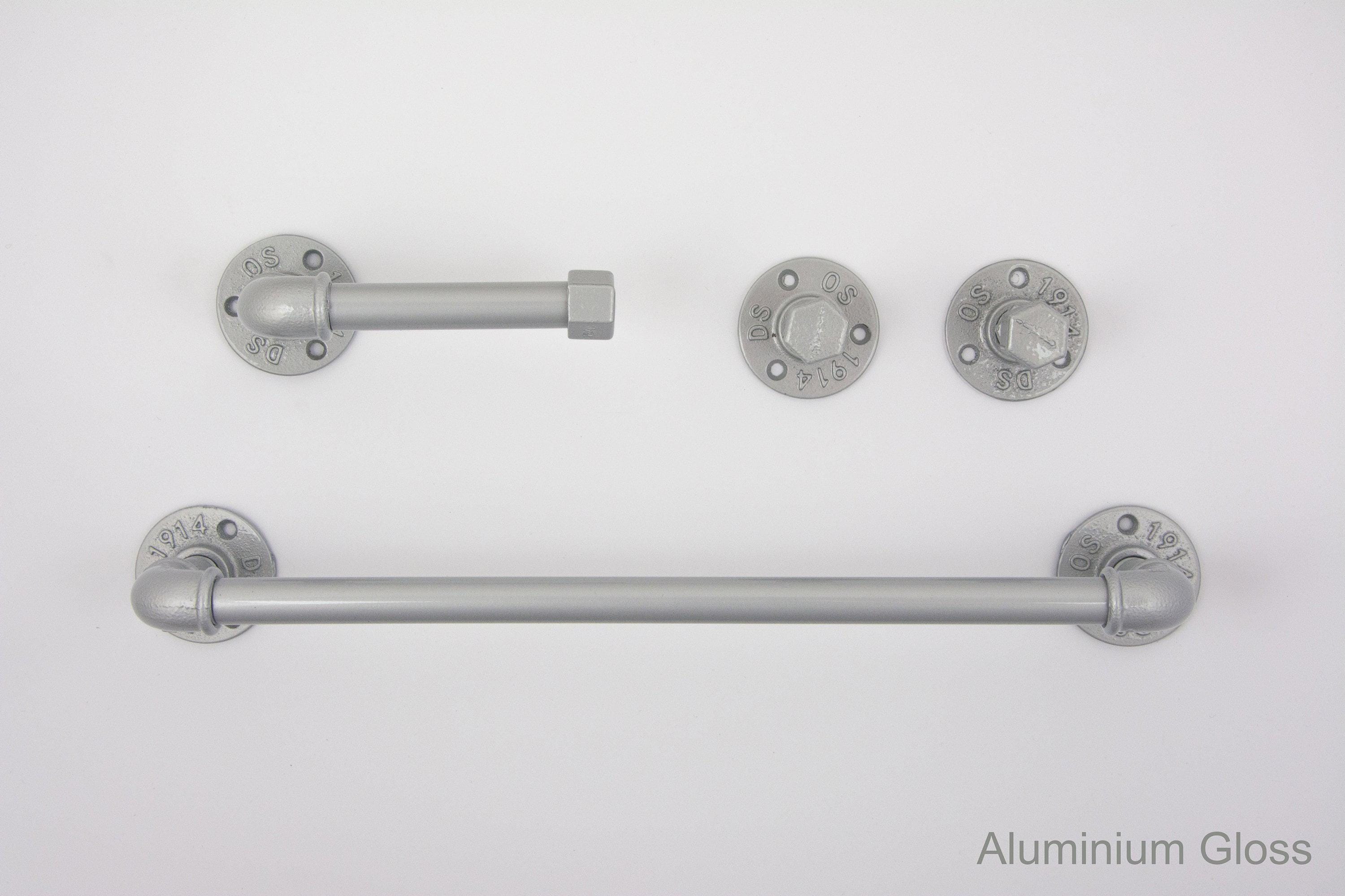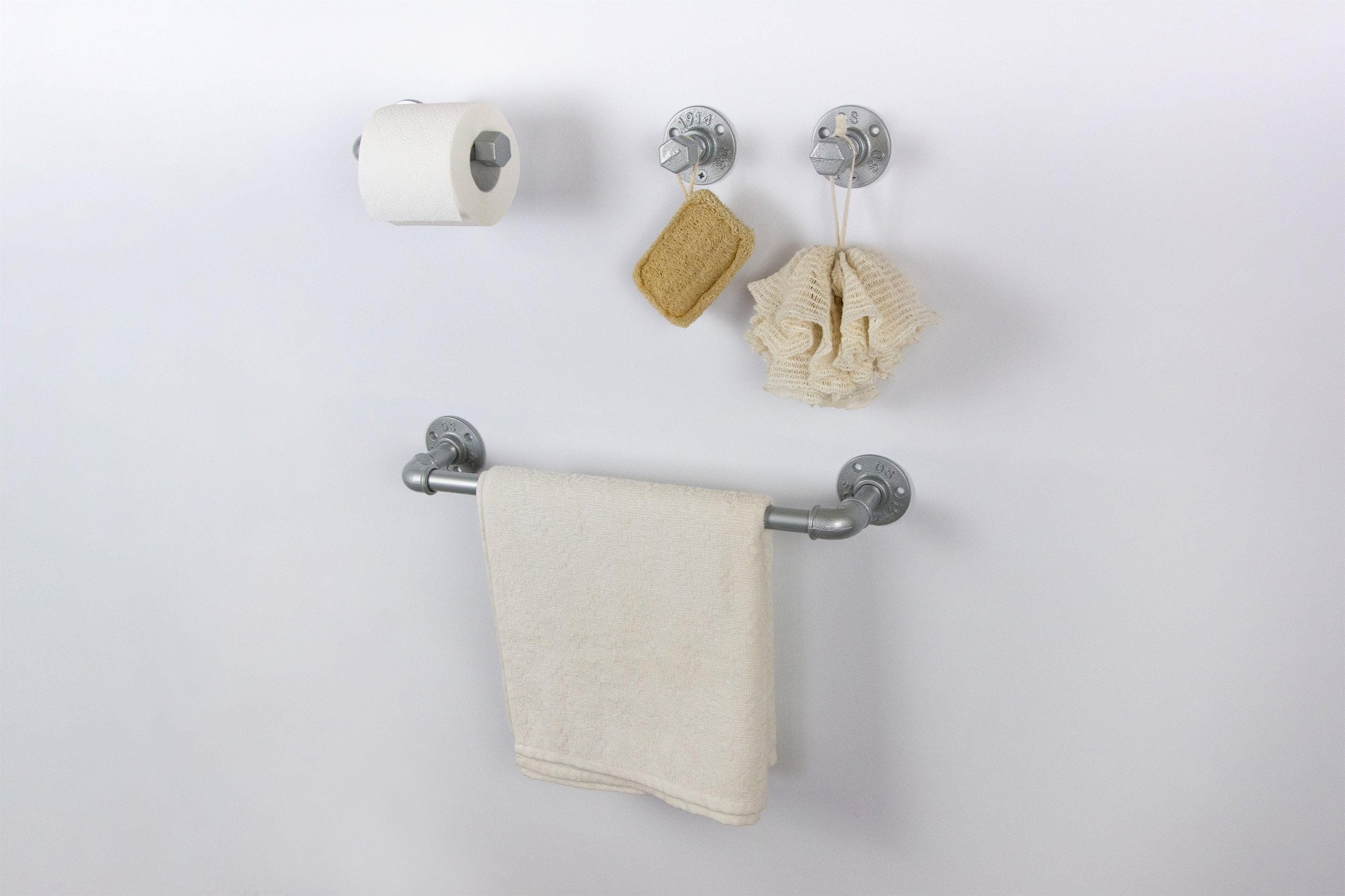 This practical pipe bathroom set will be a beautiful yet functional piece in your home! Use this pipe towel rack, toilet roll holder and wall hooks to keep your home organized. The color of the set in the pictures is Aluminium Gloss, however, it can be made in more than 65 colors!