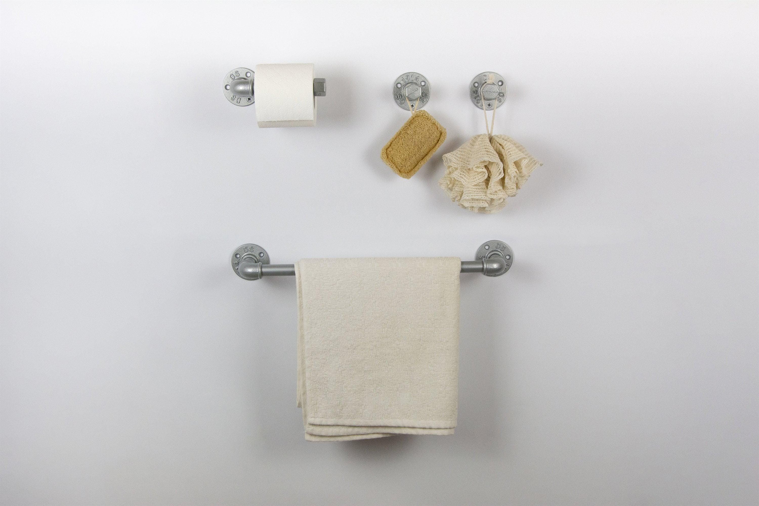 Pipe Bathroom Set 4pcs , Pipe Towel Rack, Toilet Roll Holder, Towel Hook, Wall Hook, Industrial Bathroom, Home Organization