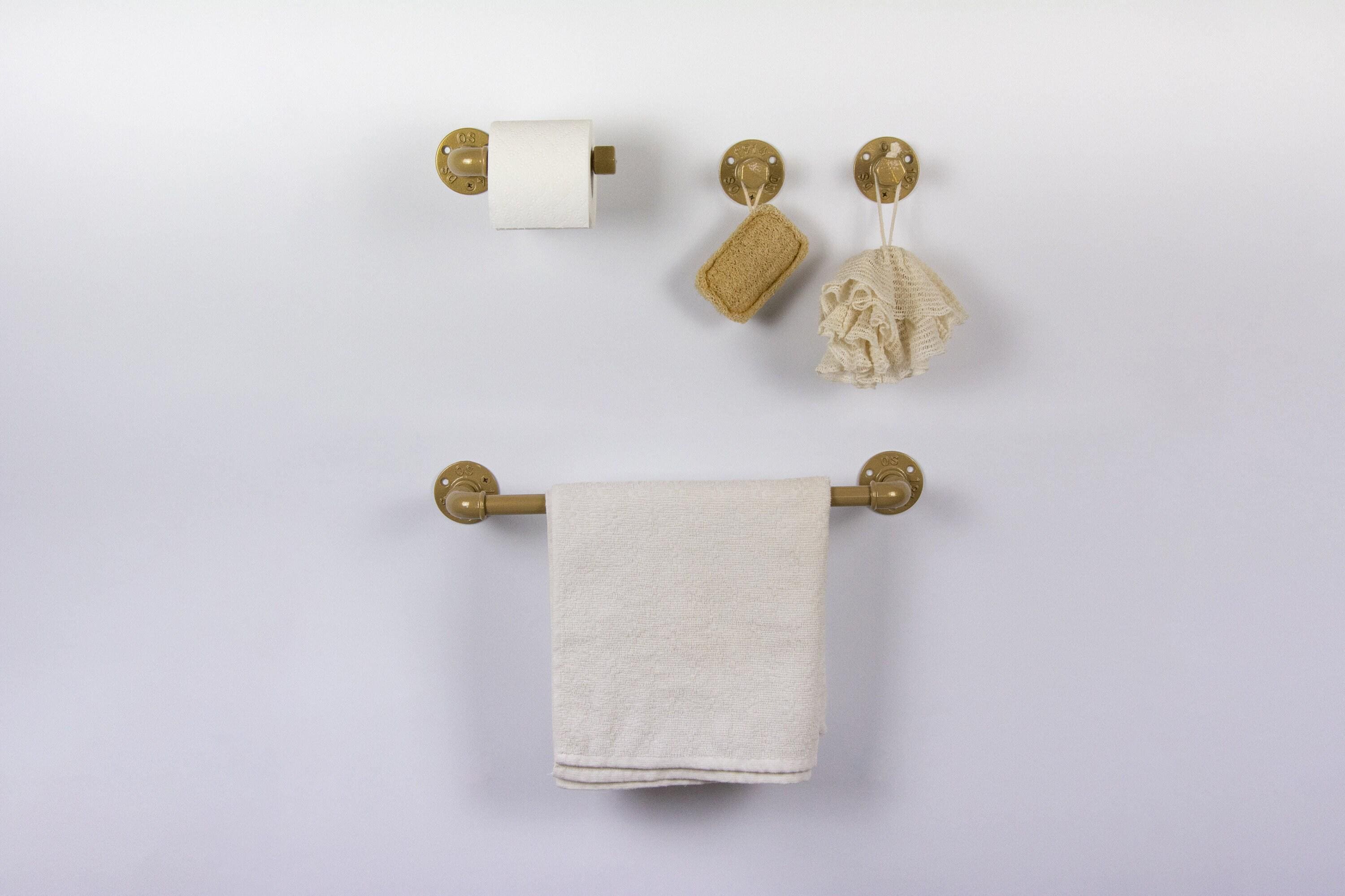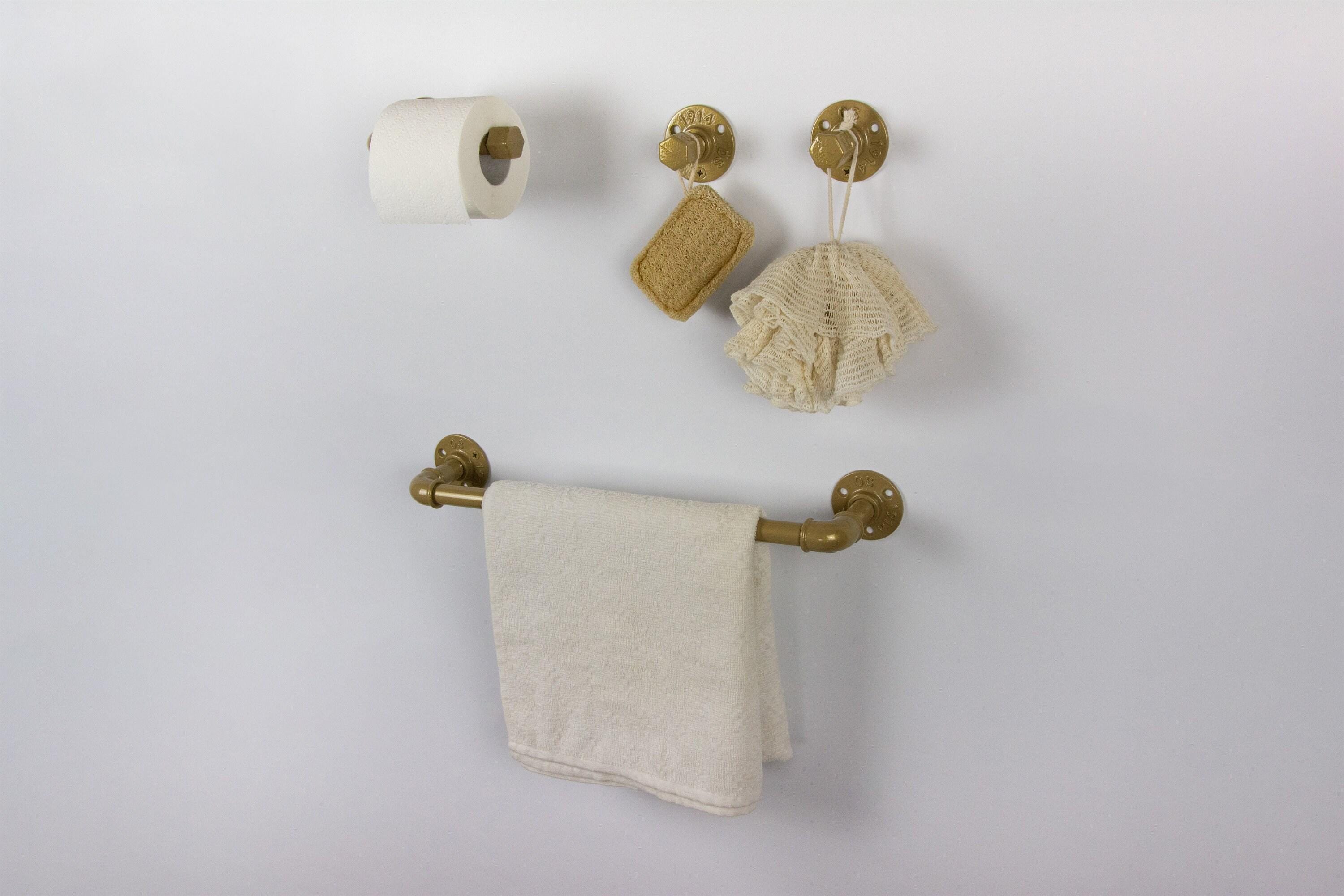 This practical industrial set will add charm and sturdiness to any bathroom! These modern bathroom accessories will be your new favorite functional pieces. The color of the set in the pictures is Champagne Gold Gloss, however, it can be made in more than 65 colors!