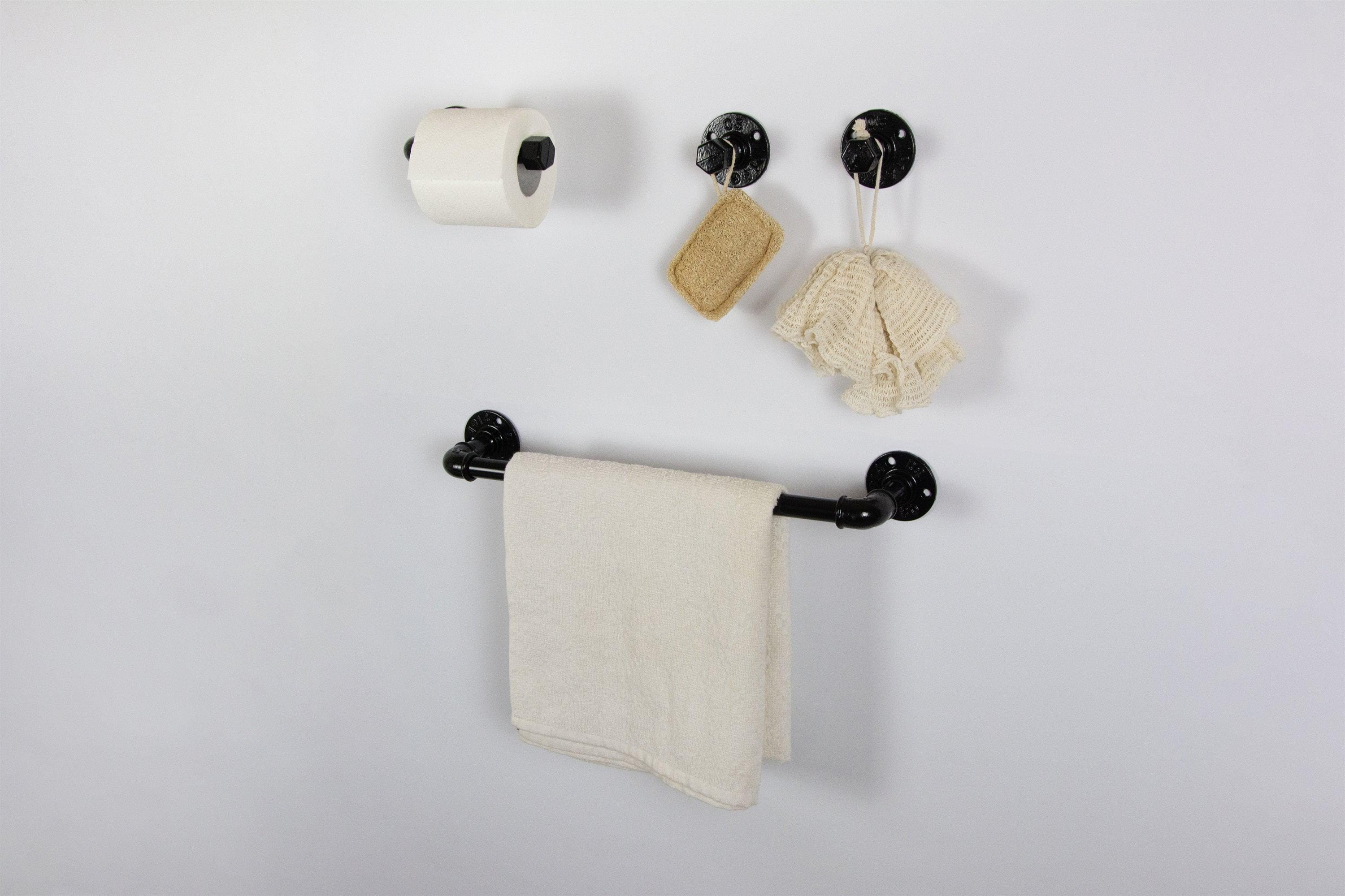 Steampunk Bathroom Accessories 4pcs Set, Includes Towel Rack, Two Towel Hooks, Toilet Paper Holder. Pipe Bathroom Set
