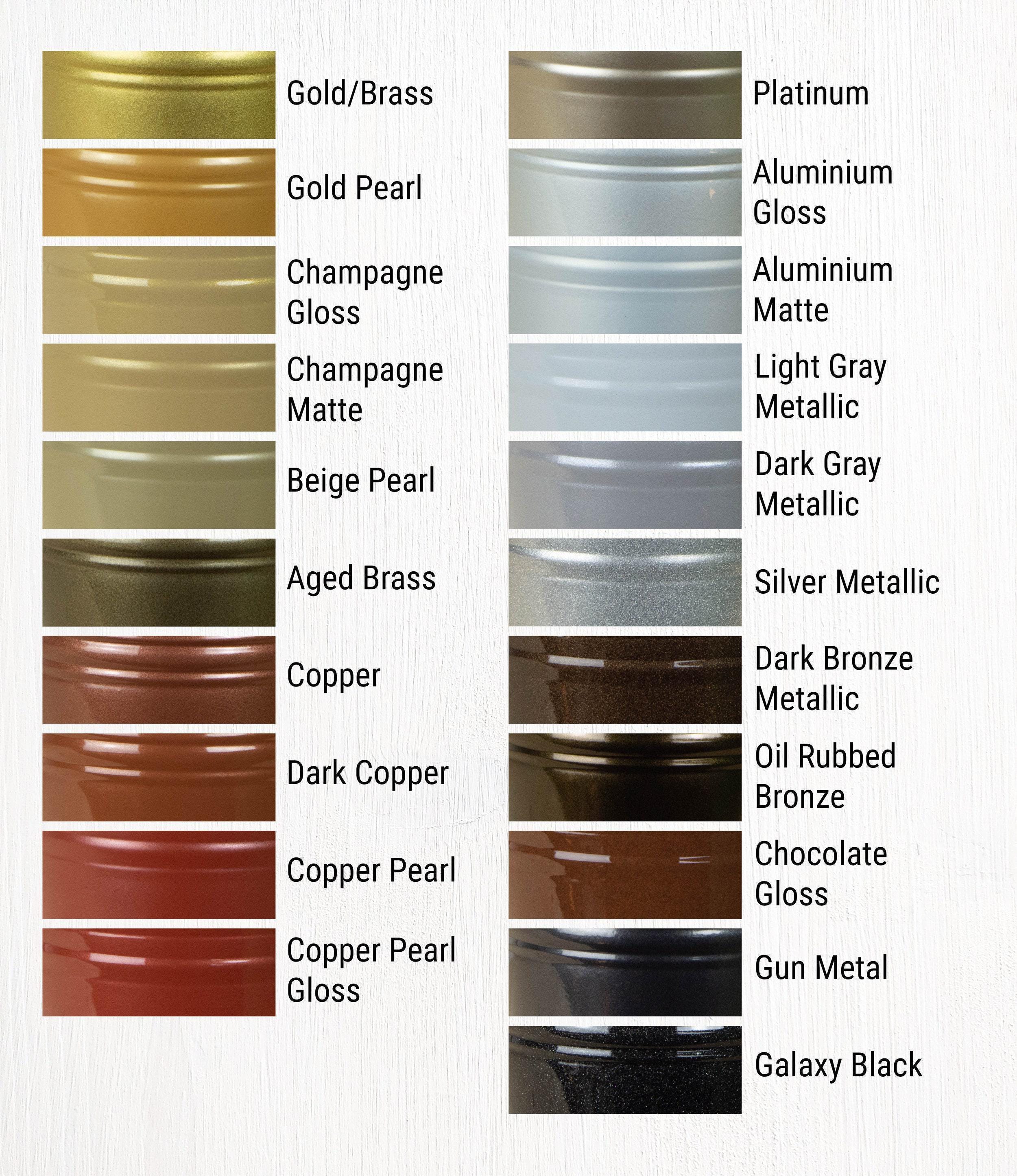 We offer more than 60 powder coat options and 15 wood shelf finish options. You can see all of the powder coat finishes we offer here: https://www.etsy.com/shop/UniqueWoodArtwork?section_id=29436268