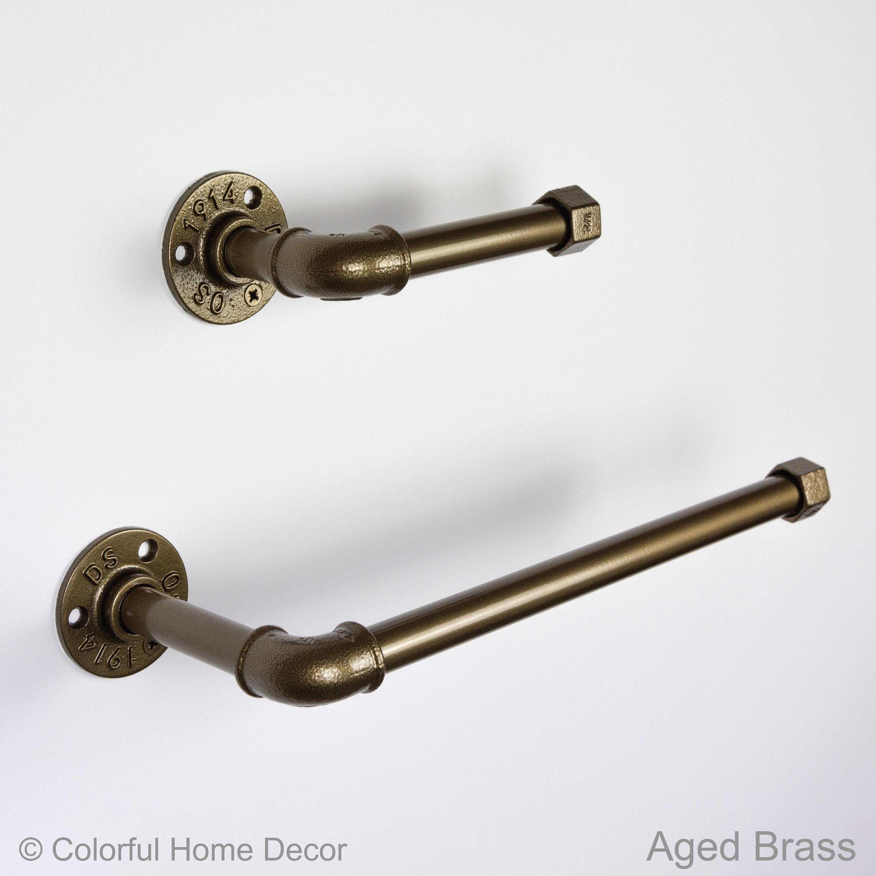Toilet Paper Holder, Paper Towel Holder, Towel Rack, Rustic Home Decor, Aged Brass Bathroom Decor