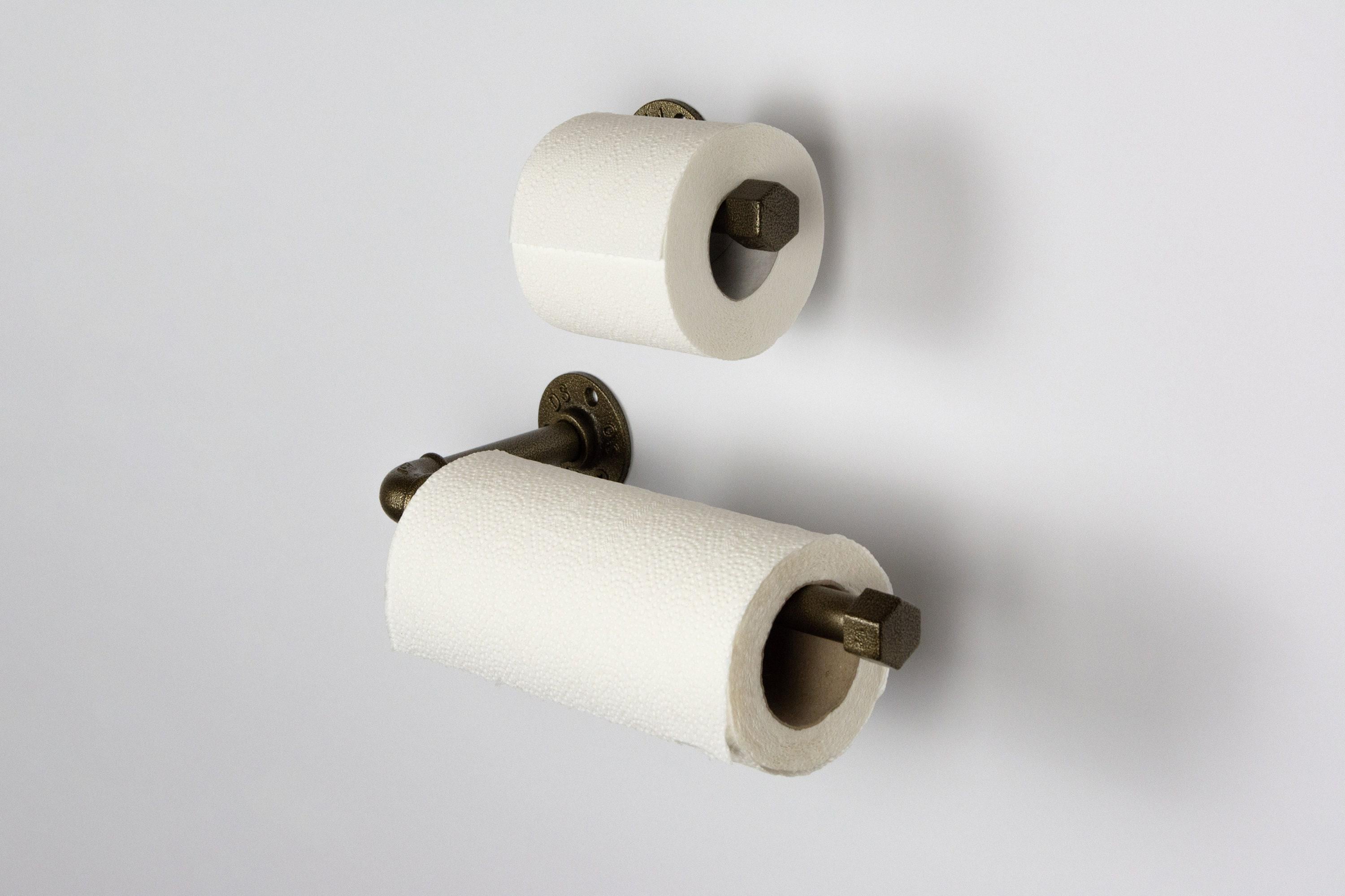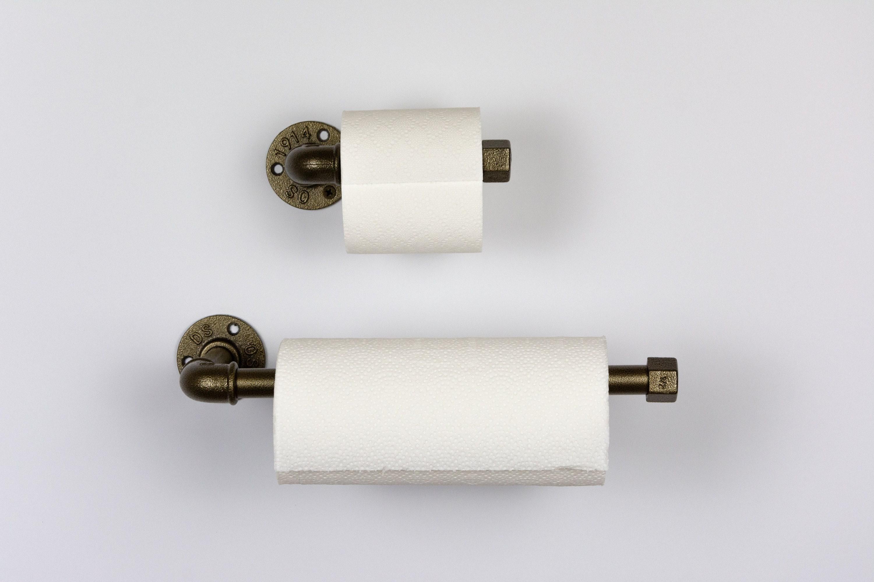 Toilet Paper Holder, Paper Towel Holder, Towel Rack, Industrial Bathroom, Rustic Home Decor, Color Pictured Antique Brass