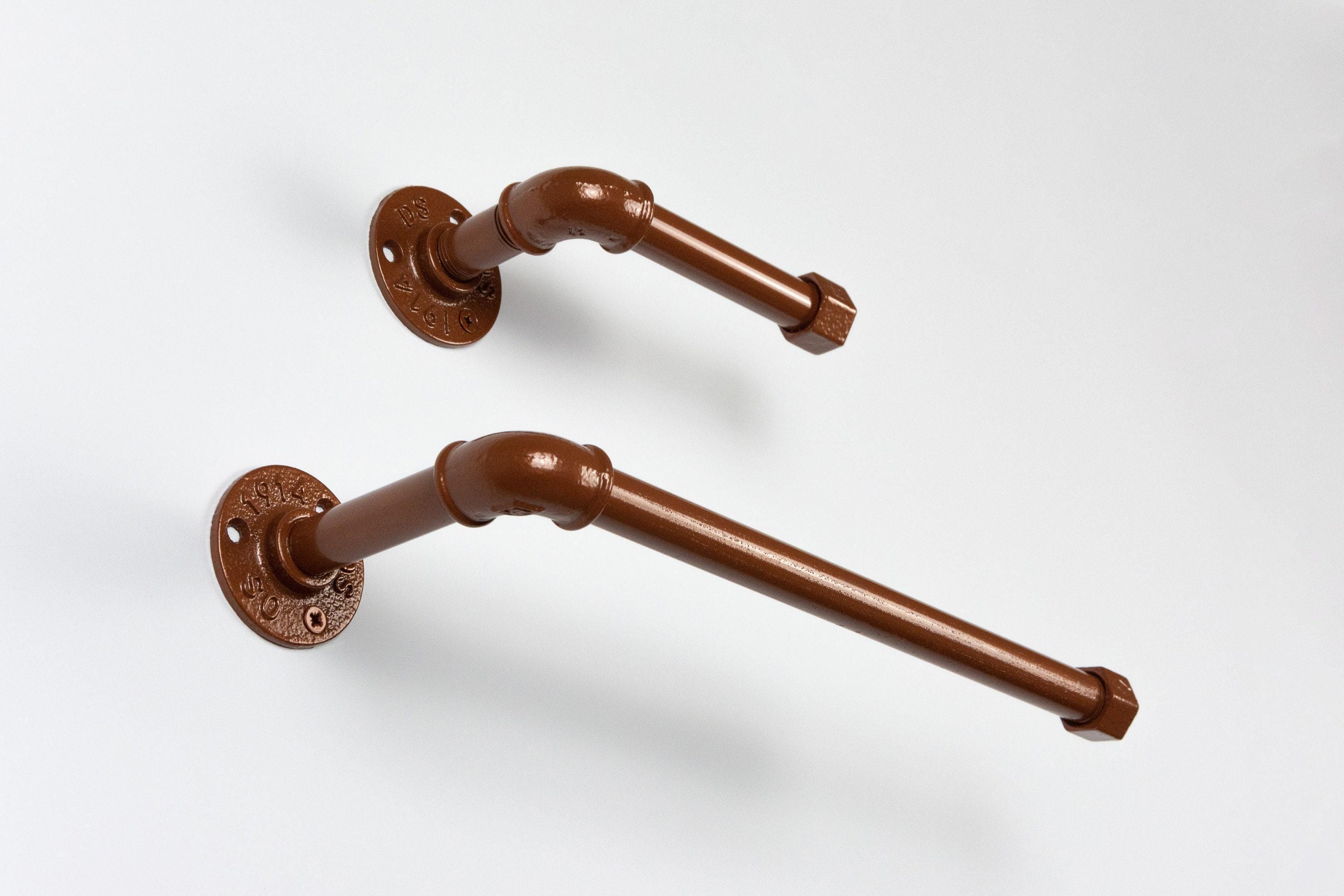 When in need of space saver piece choose from our new industrial bathroom pieces - toilet paper holder and paper towel holder made from pipe! We offer a variety of 60+ color finishes and the color pictured is dark copper.