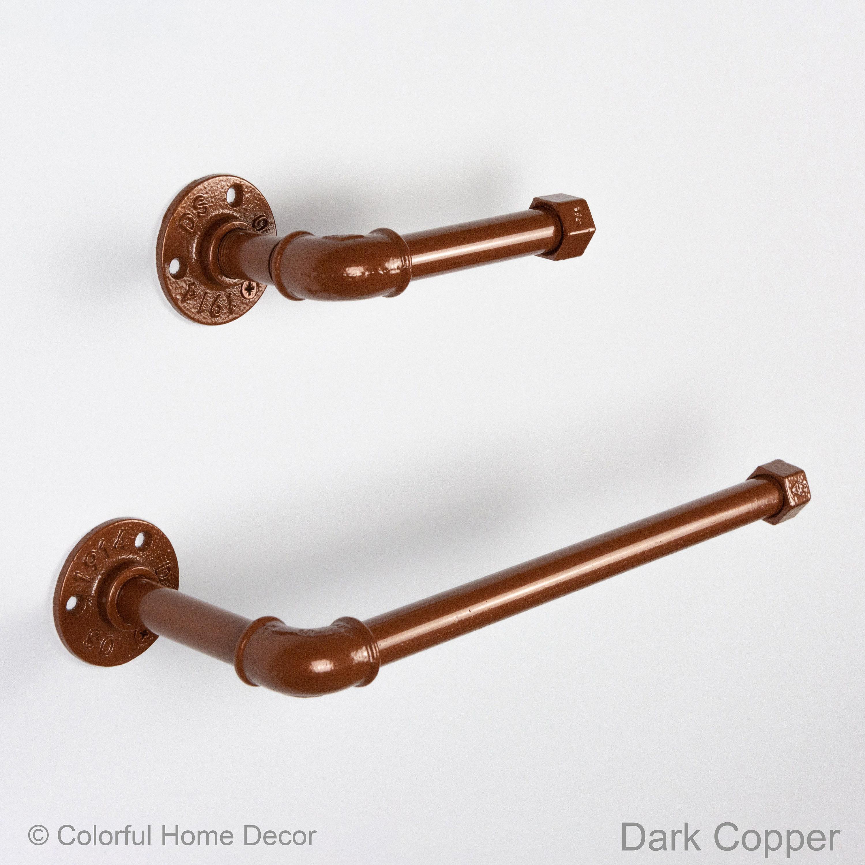 Toilet Paper Holder, Paper Towel Holder, Towel Rack, Industrial Bathroom, Space Saver, Color Pictured Dark Copper