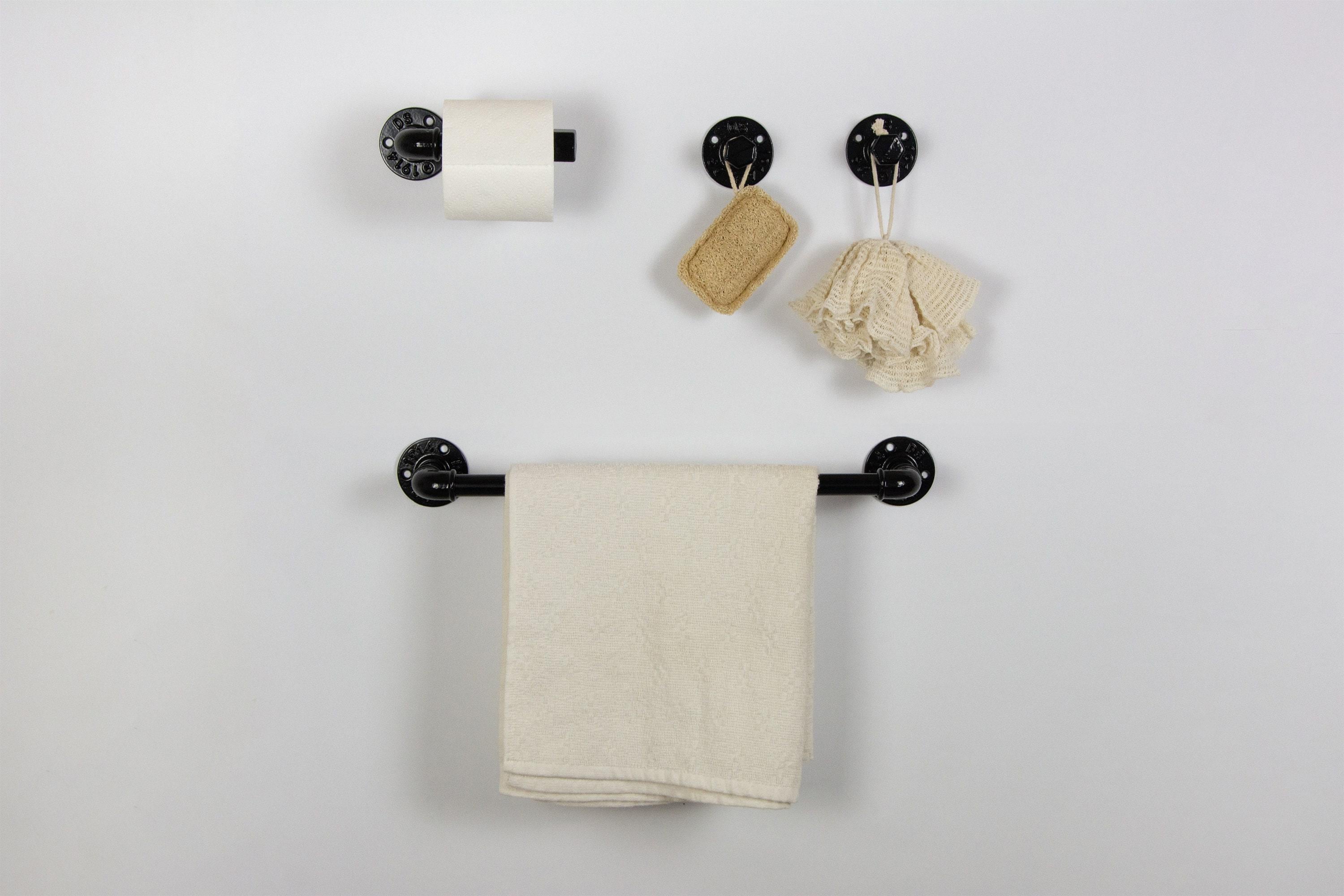 Steampunk Bathroom Accessories 4pcs Set, Includes Towel Rack, Two Towel Hooks, Toilet Paper Holder. Pipe Bathroom Set, FREE SHIPPING