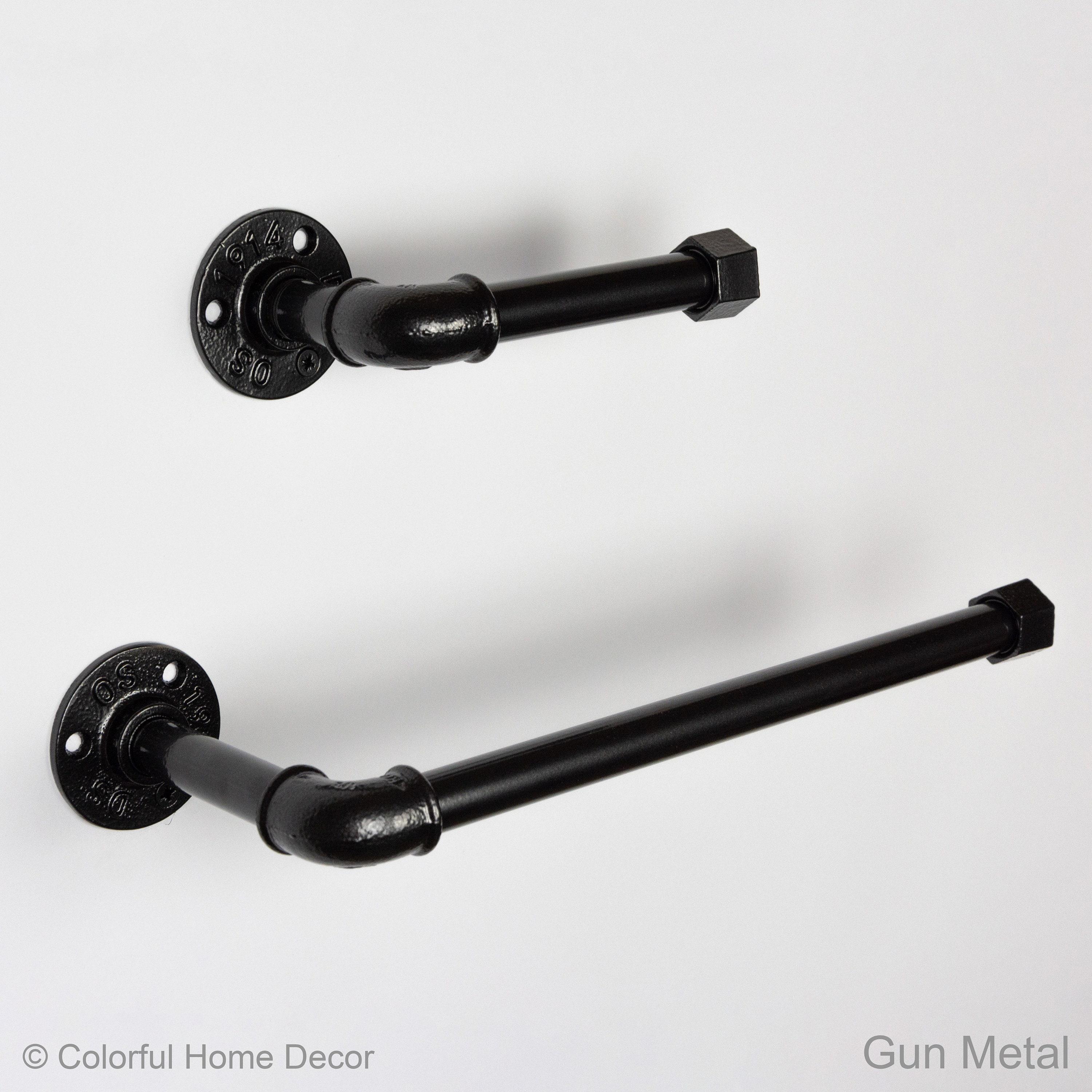 Towel Holder, Toilet Roll Holder, Towel Rack, Bathroom Hardware, Industrial Bathroom, Color Pictured Gun Metal