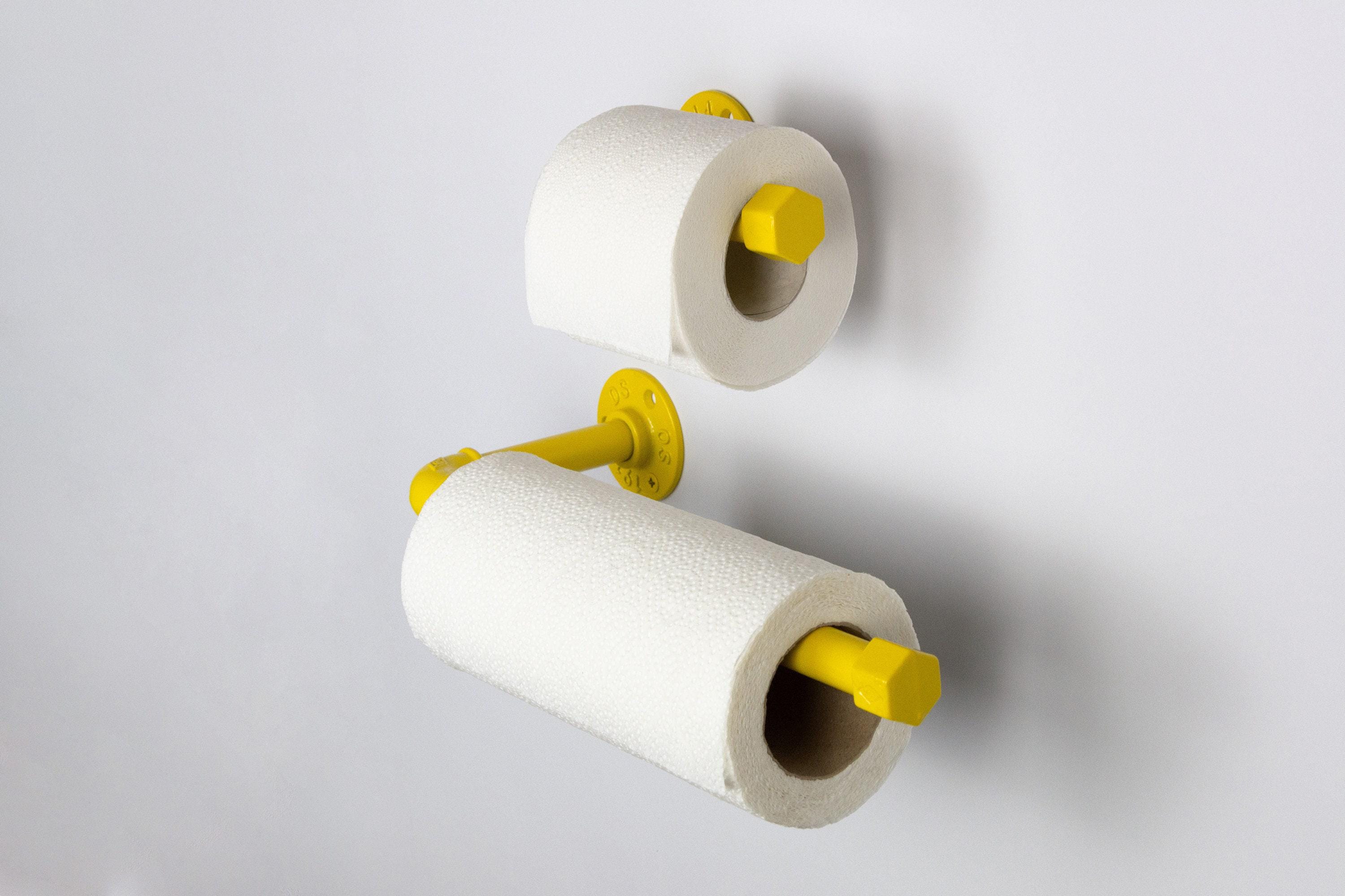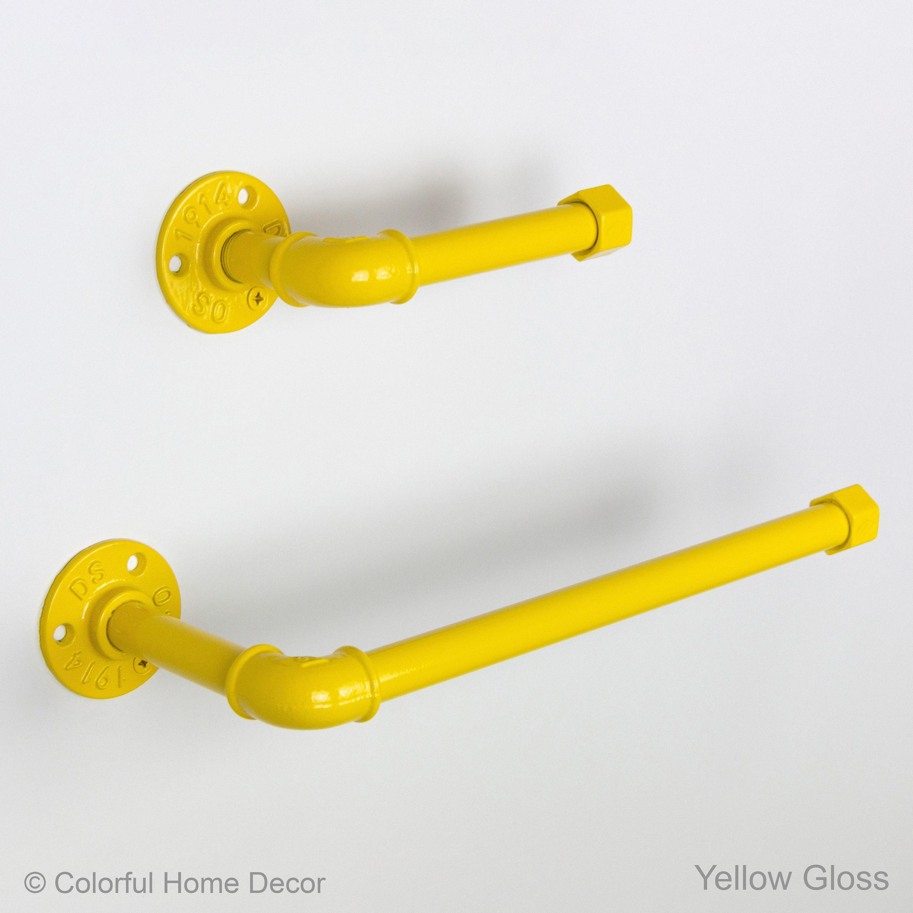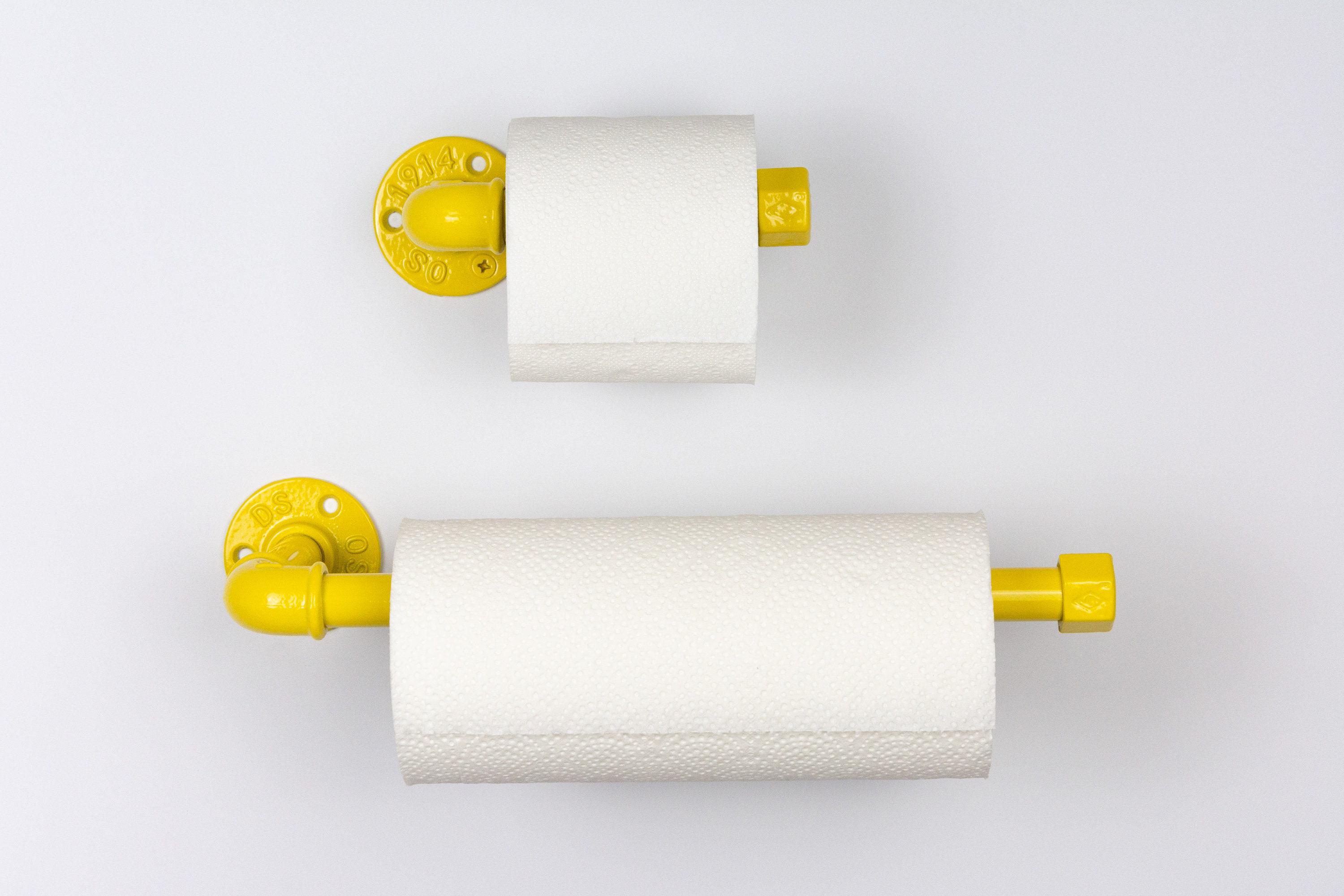 Toilet Paper Holder, Paper Towel Holder, Towel Rack, Industrial Bathroom, Space Saver, Color Pictured Yellow Gloss