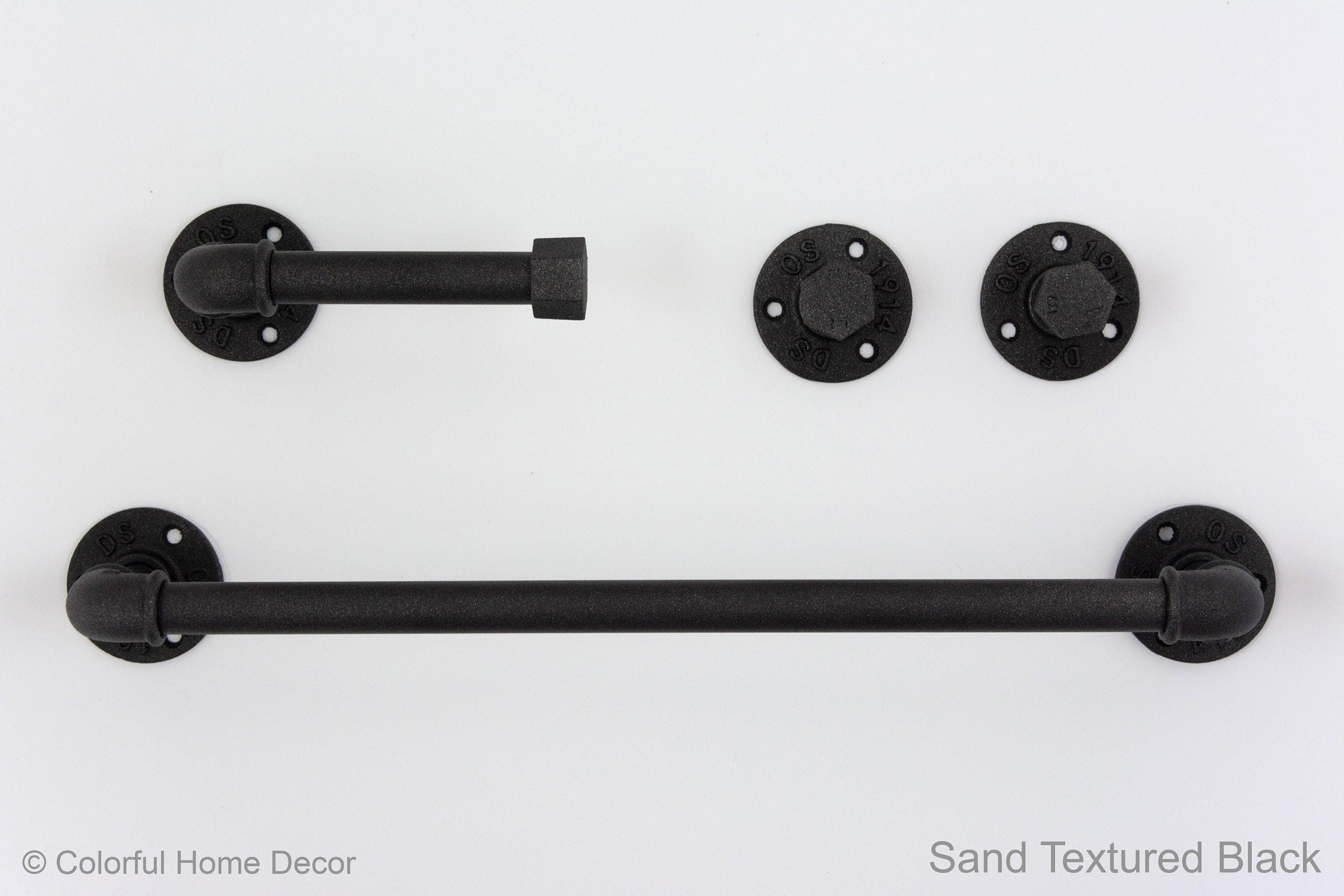 Create your own unique farmhouse bathroom with these pipe bathroom accessories set! This pipe towel rack together with rustic towel hooks will hold your robes and towels while creating an amazing look in your bathroom. The color of the set in the pictures is Sand Textured Black, however, it can be made in more than 65 colors!