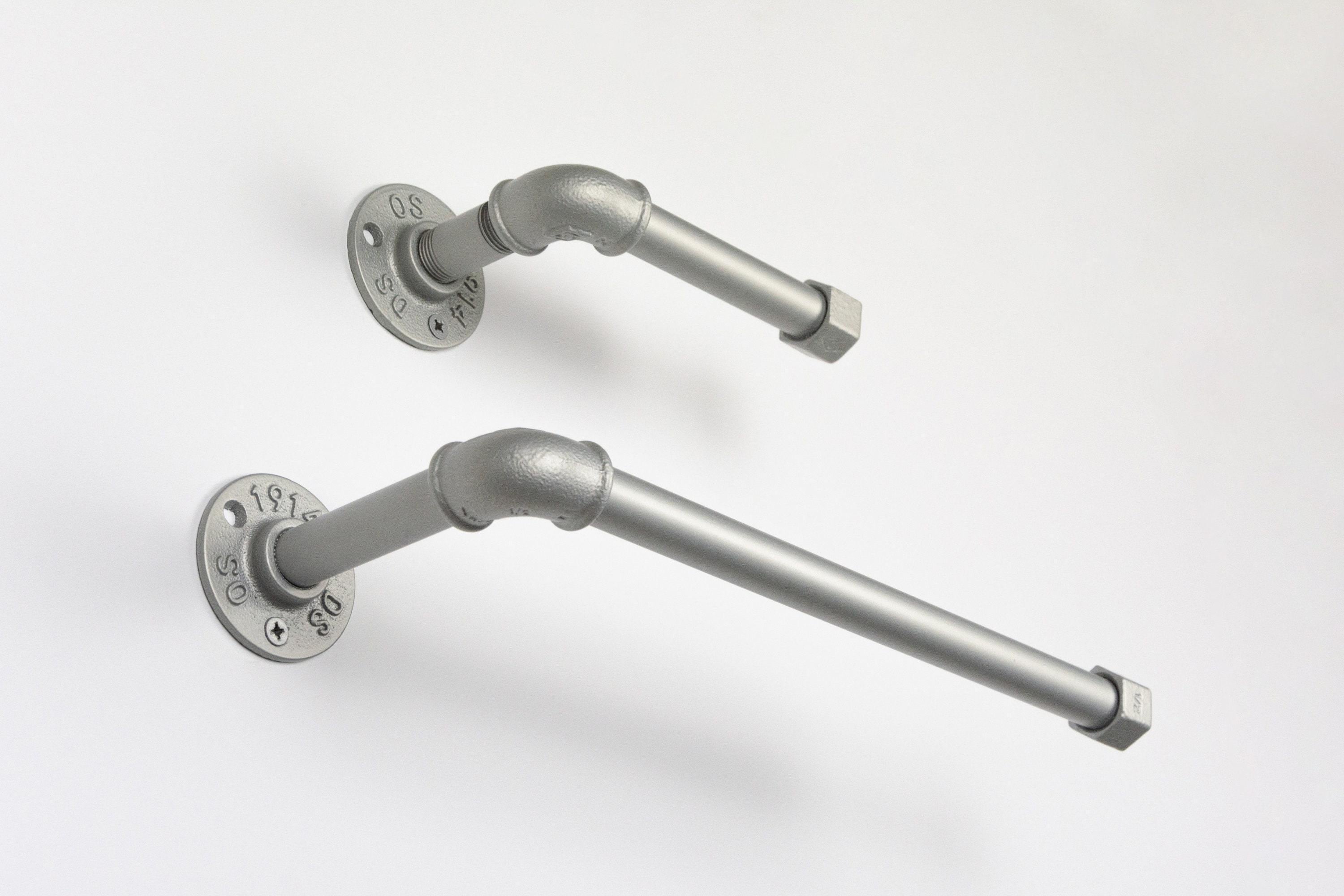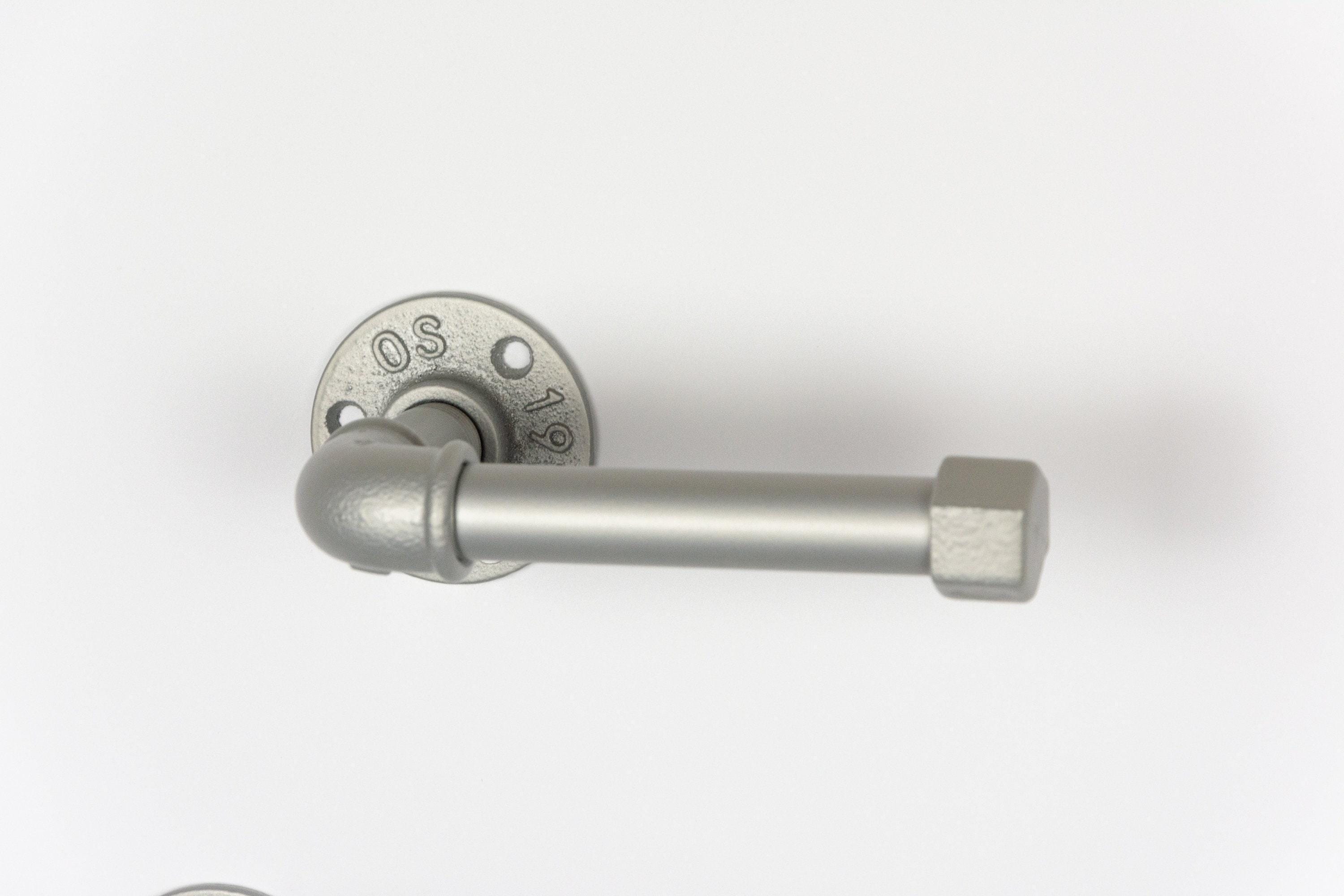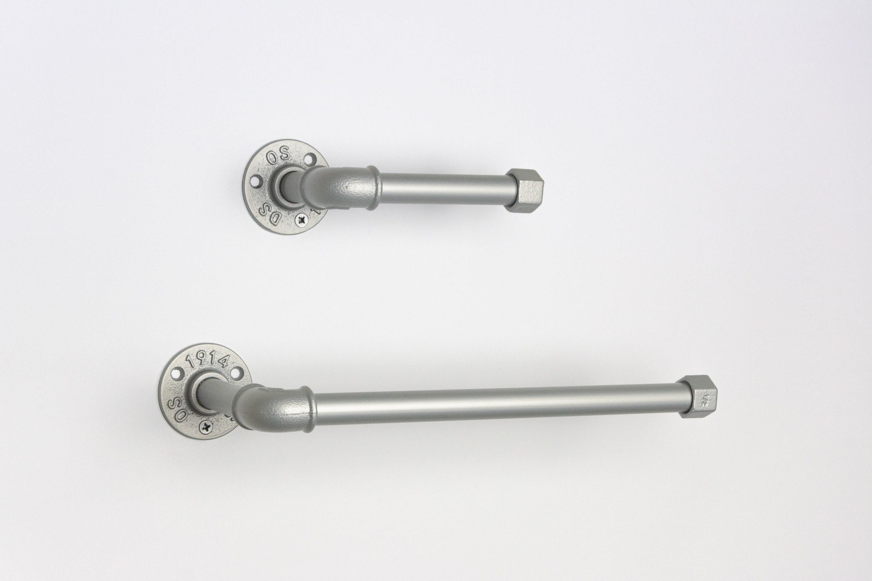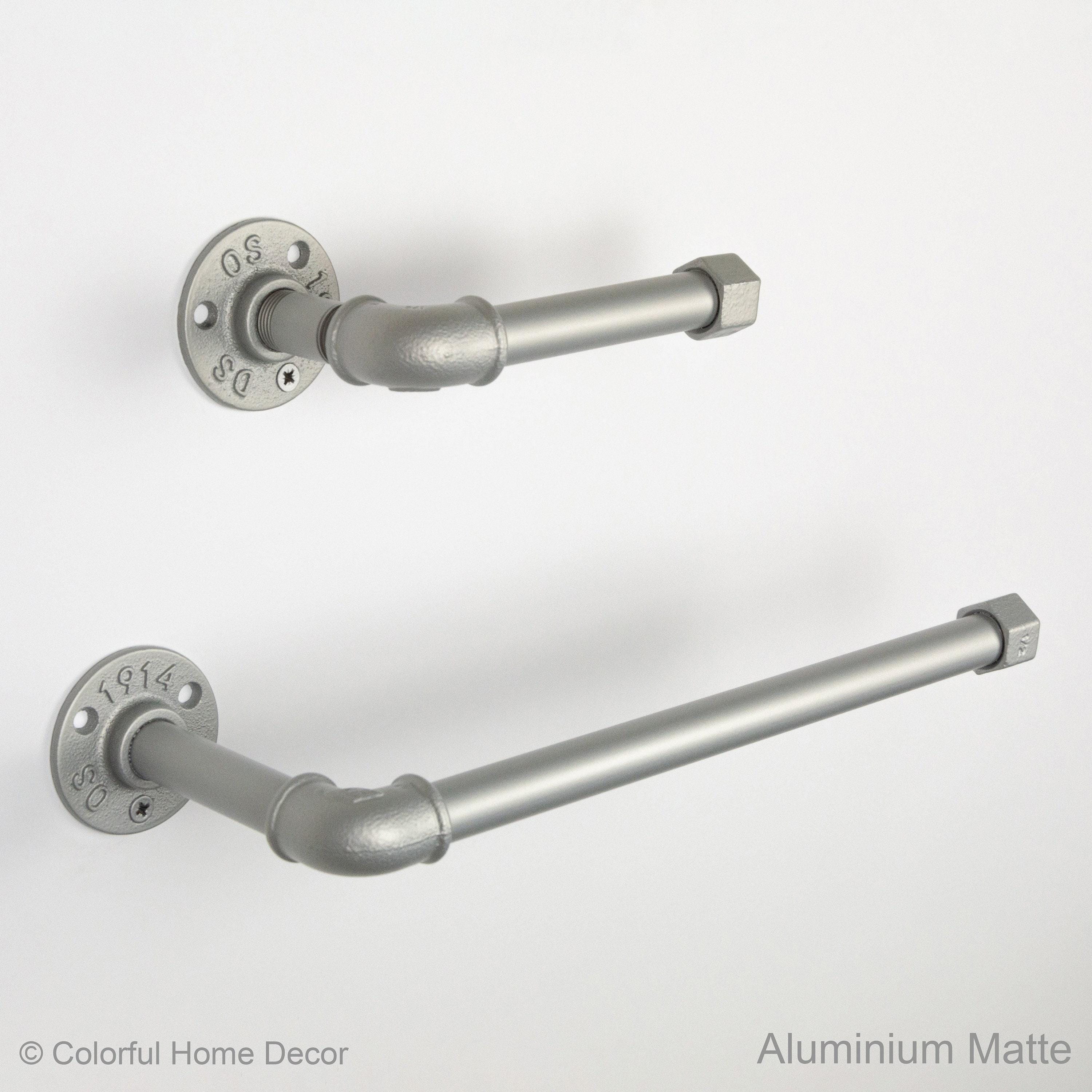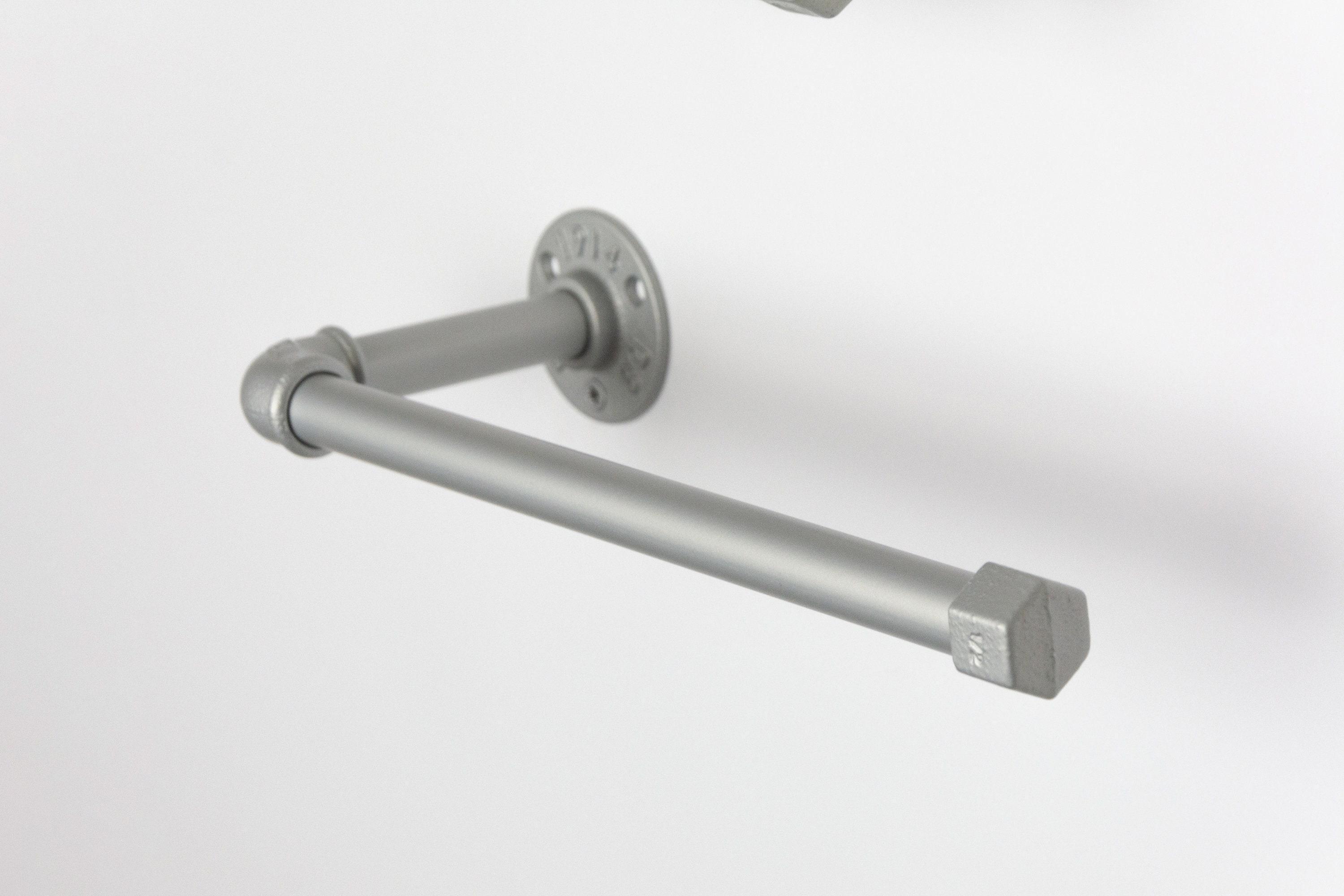 When in need of space saver piece choose from our new industrial bathroom pieces - toilet paper holder and paper towel holder made from pipe! We offer a variety of 60+ color finishes and the color pictured is Aluminium Matte.