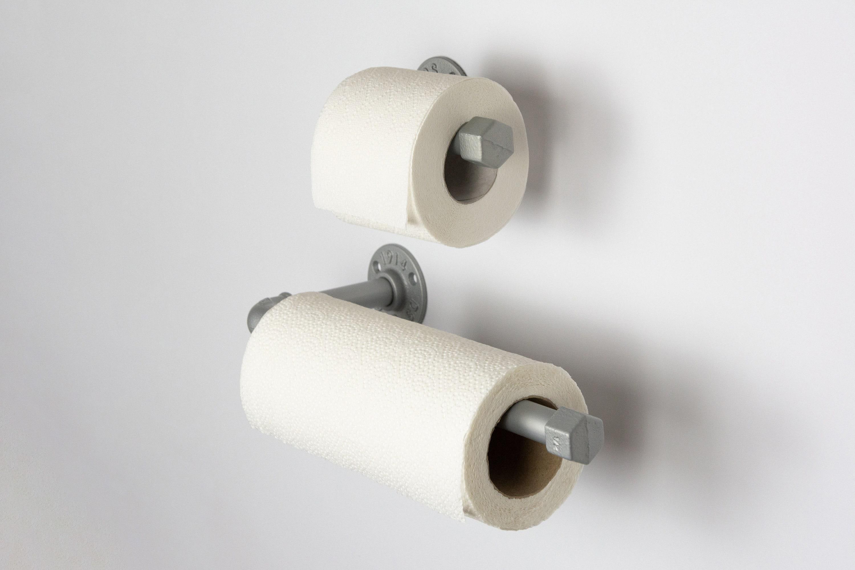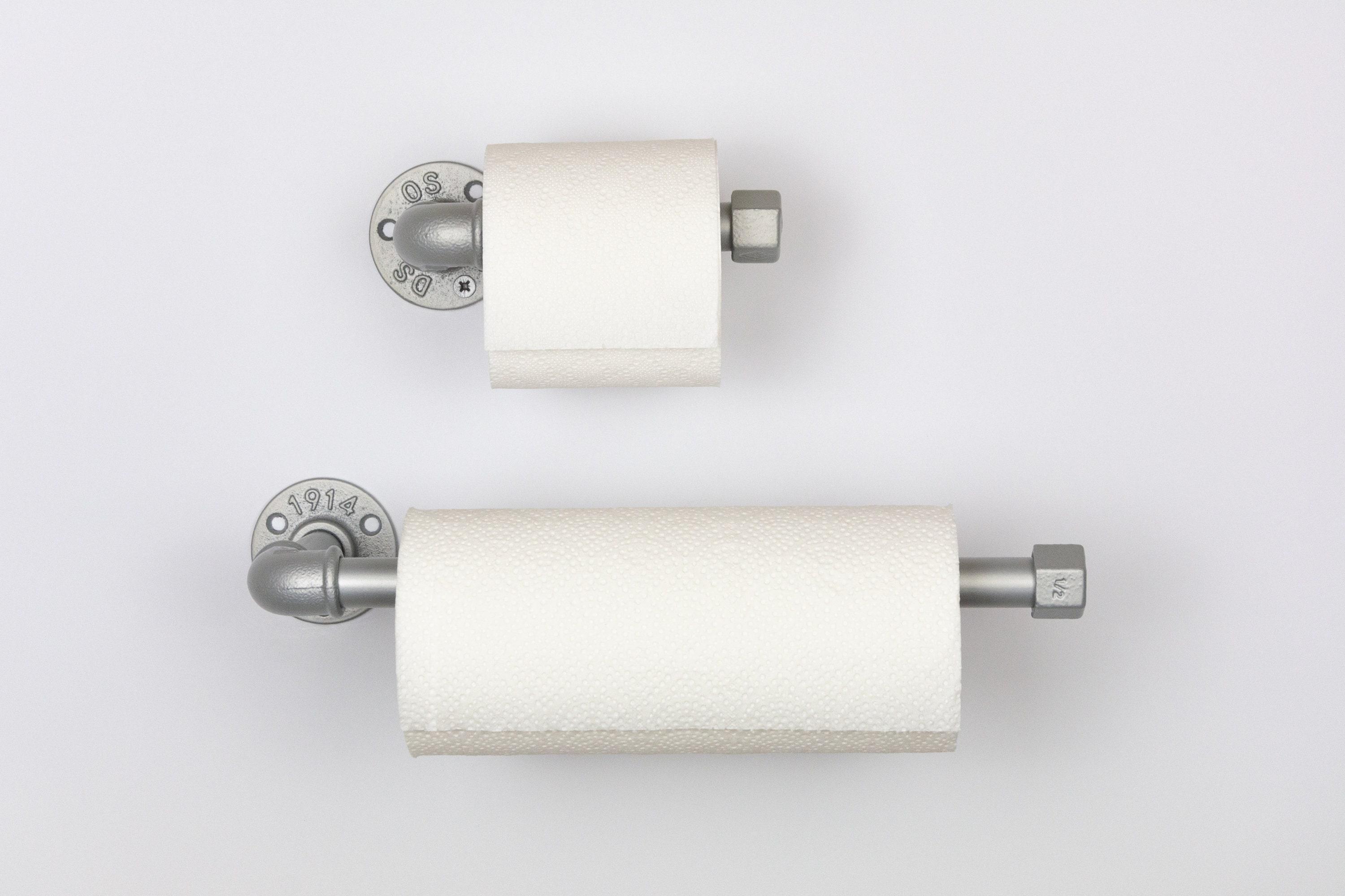 Toilet Paper Holder, Paper Towel Holder, Towel Rack, Industrial Bathroom, Space Saver, Color Pictured Aluminium Matte