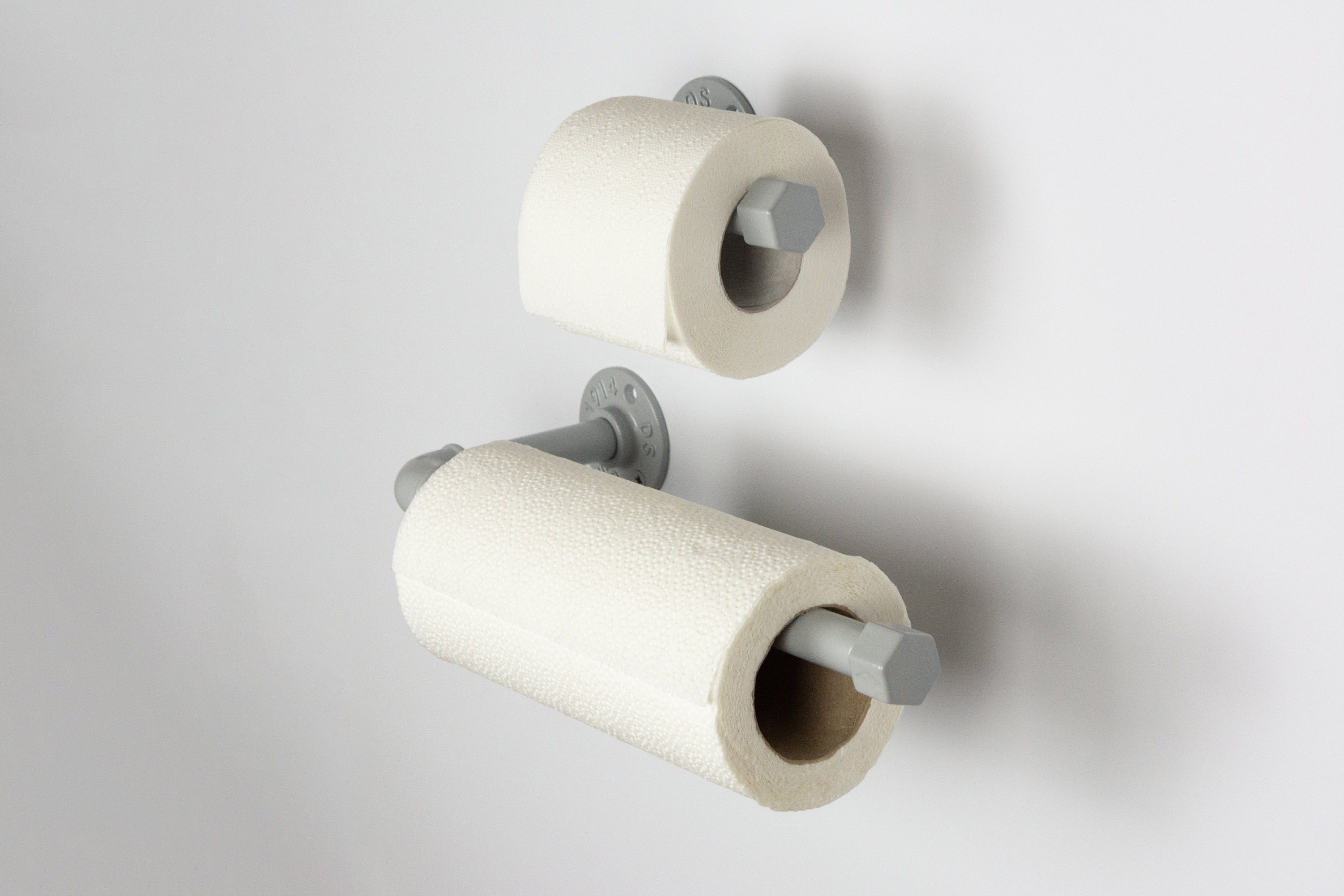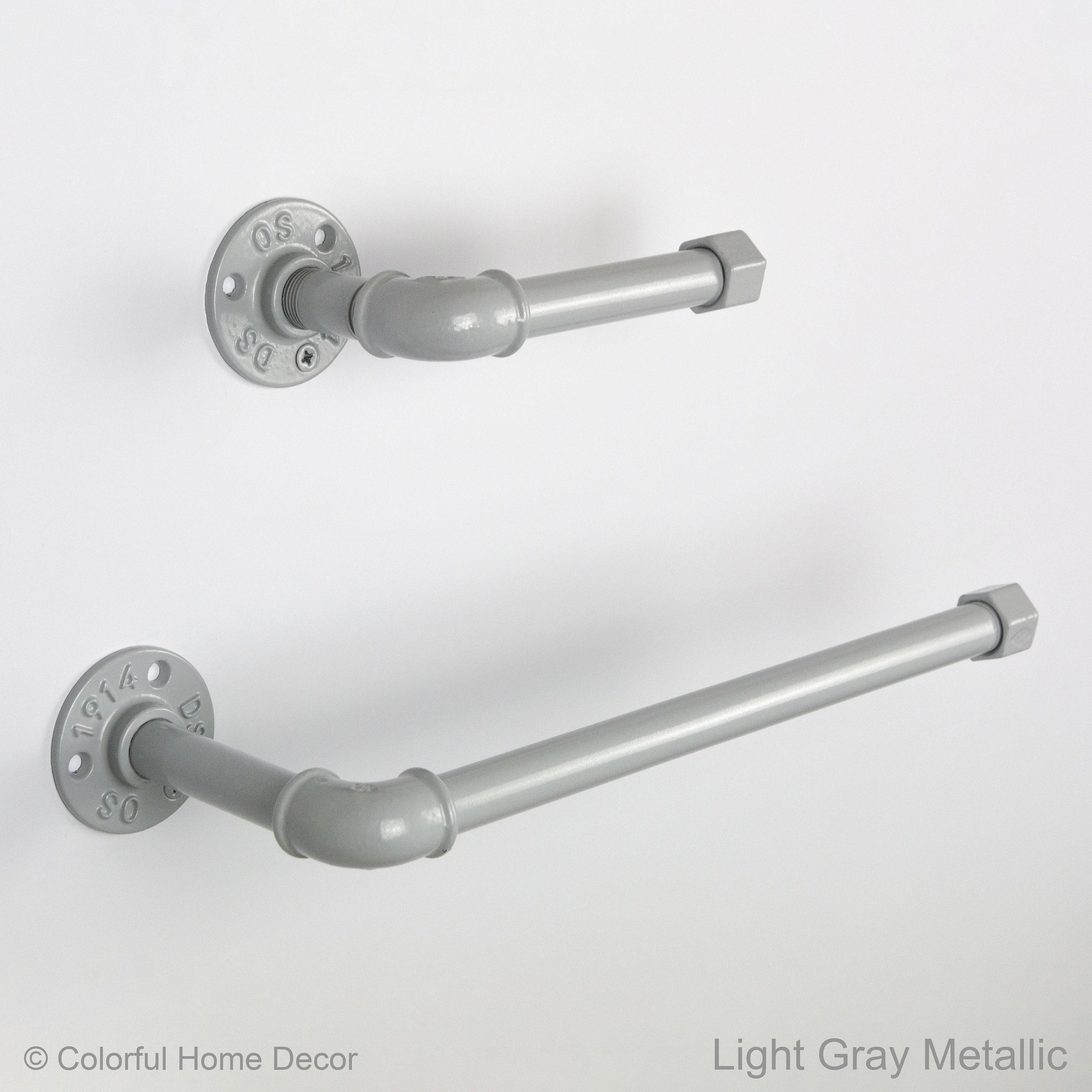Toilet Paper Holder, Paper Towel Holder, Towel Rack, TP Holder, Farmhouse Decor, Color Pictured Light Gray Metallic