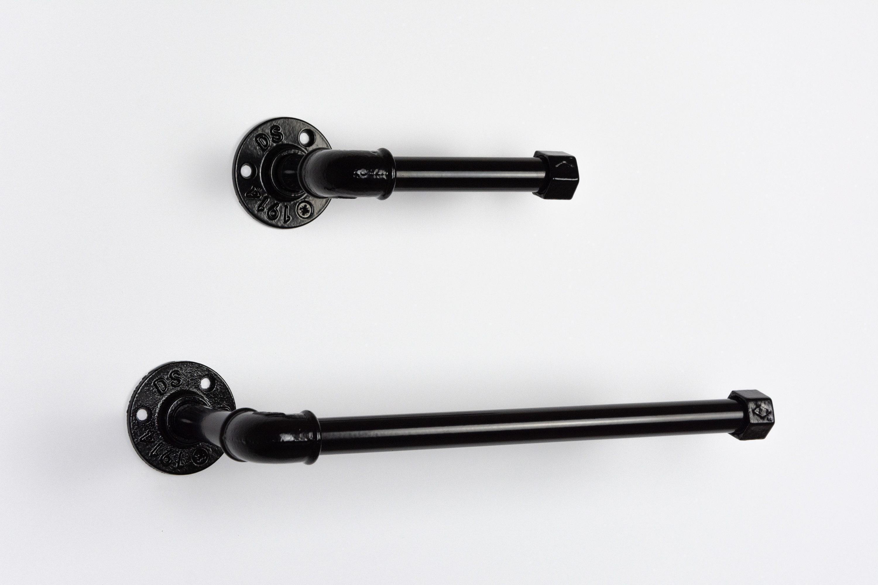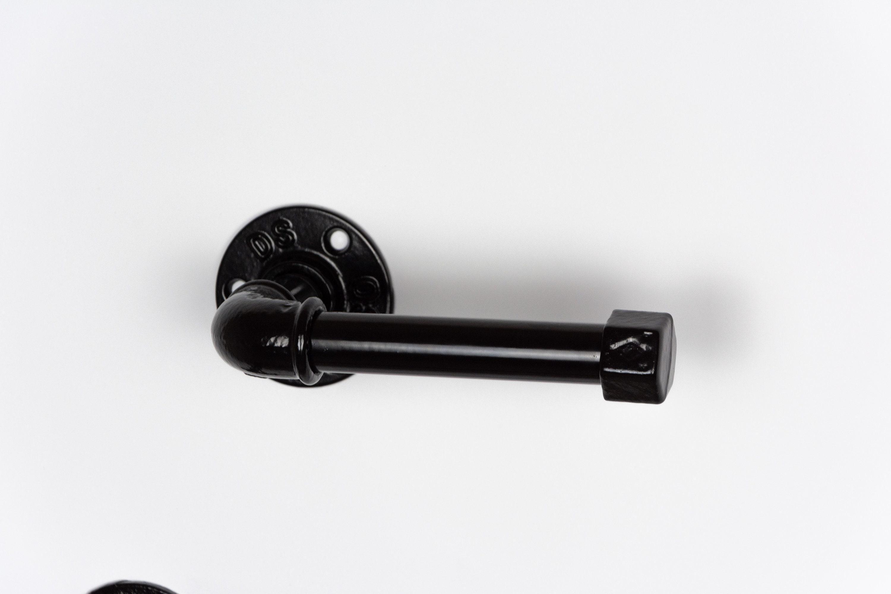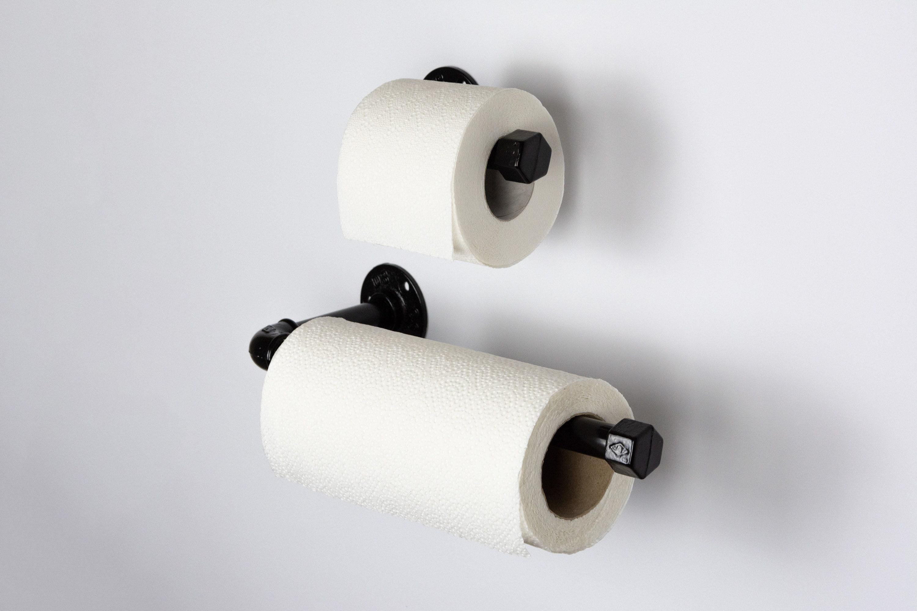 Does your toilet paper or paper towels have no hanging place in your home? Solve this problem with ease by using rustic home decor pieces like toilet paper holder or paper towel holder made from pipe! They can come in more than 60+ color finishes and the color pictured here is Black Gloss .