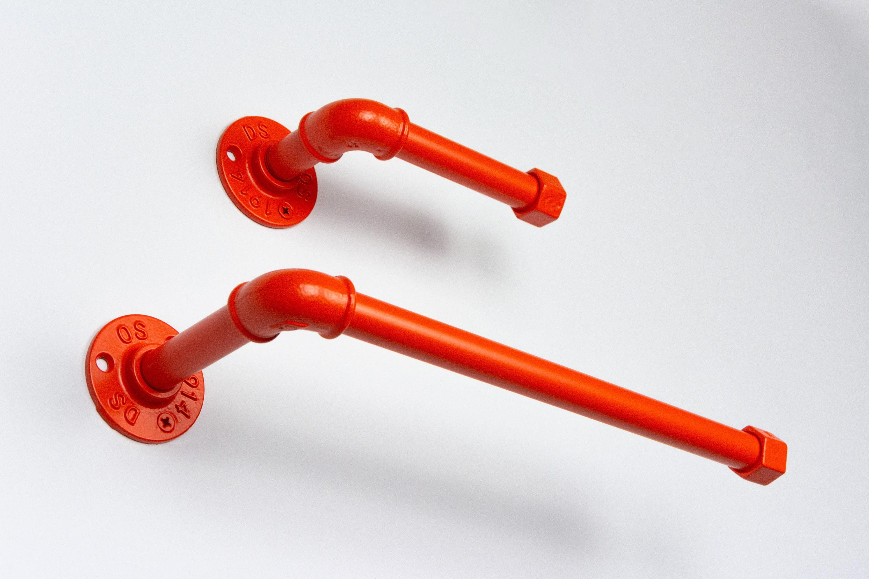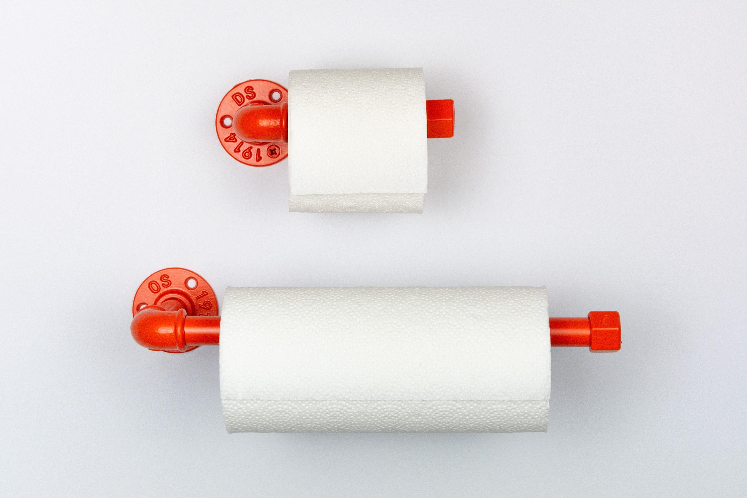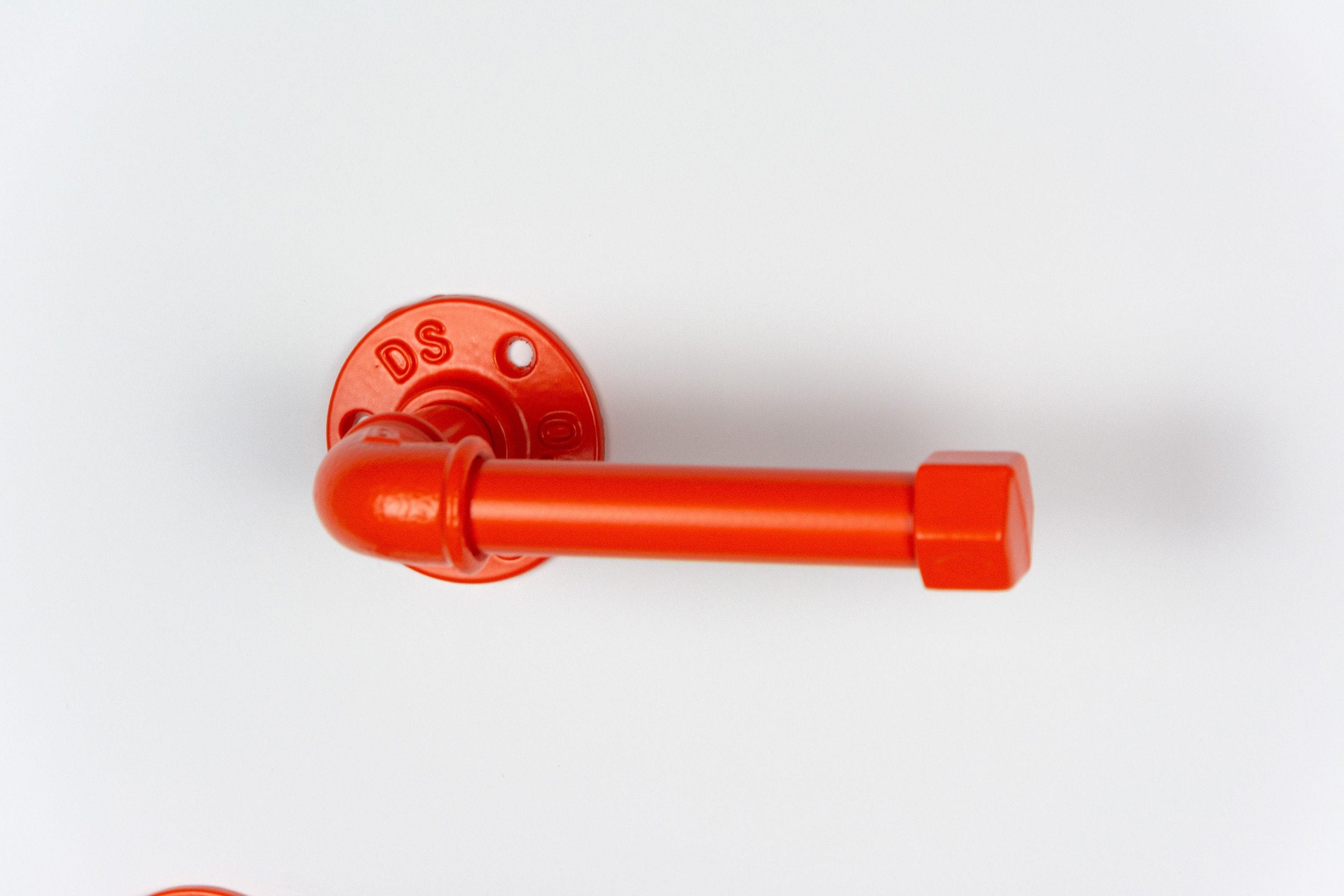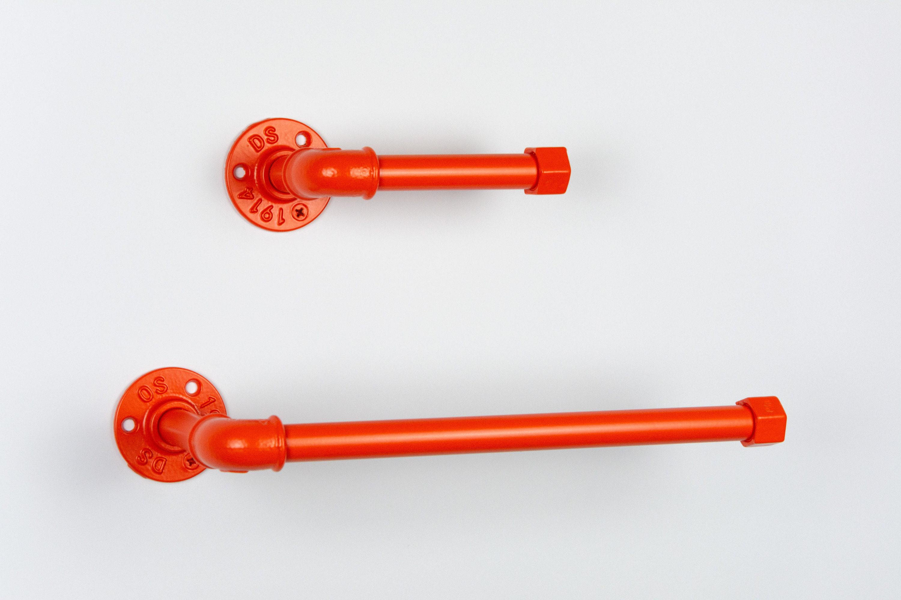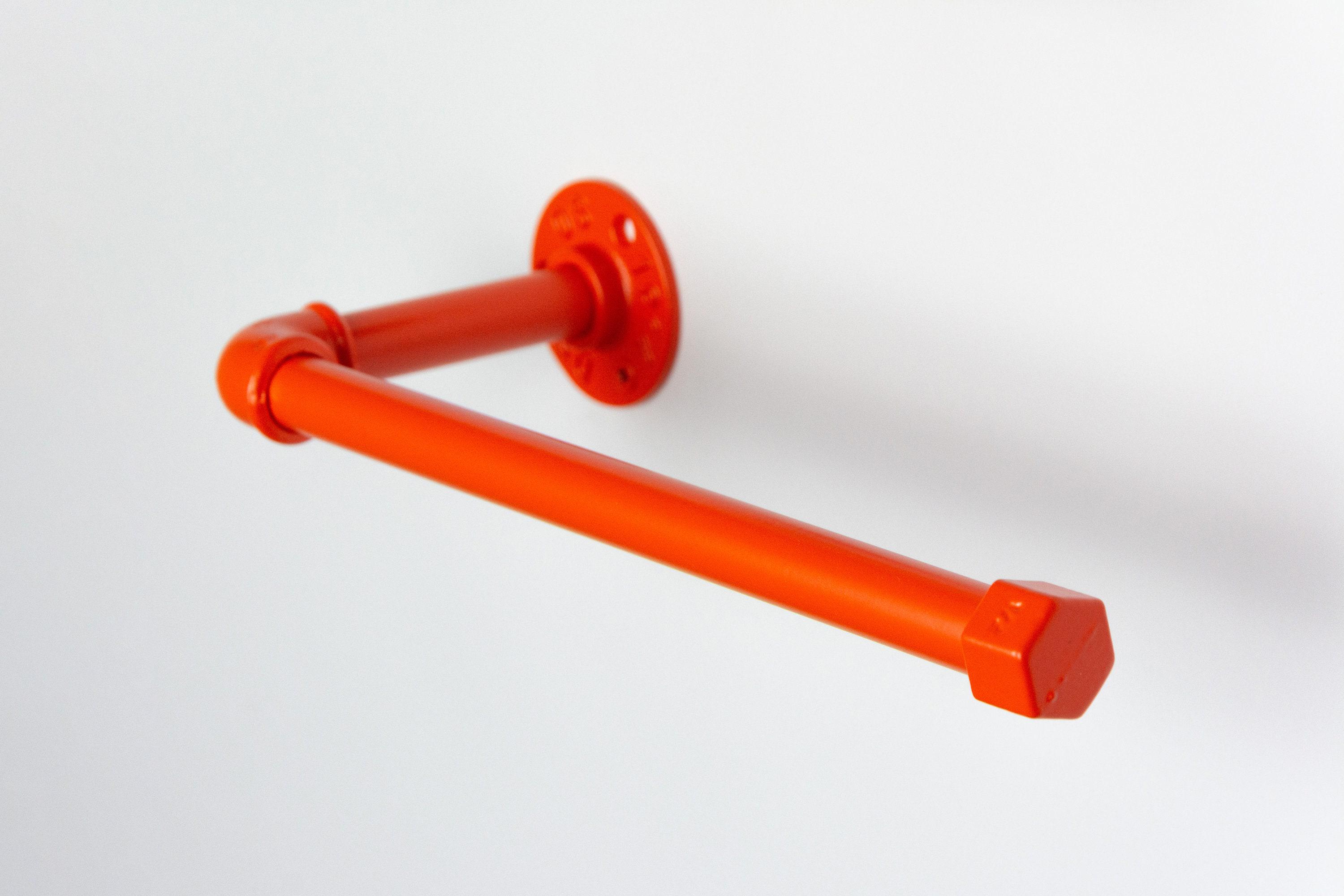 Does your urban decor restroom needs a hanging space for a toilet paper roll or a towel? Solve this problem easily with our toilet roll holder or paper towel holder made from pipe! Color in the pictures is Orange Matte.