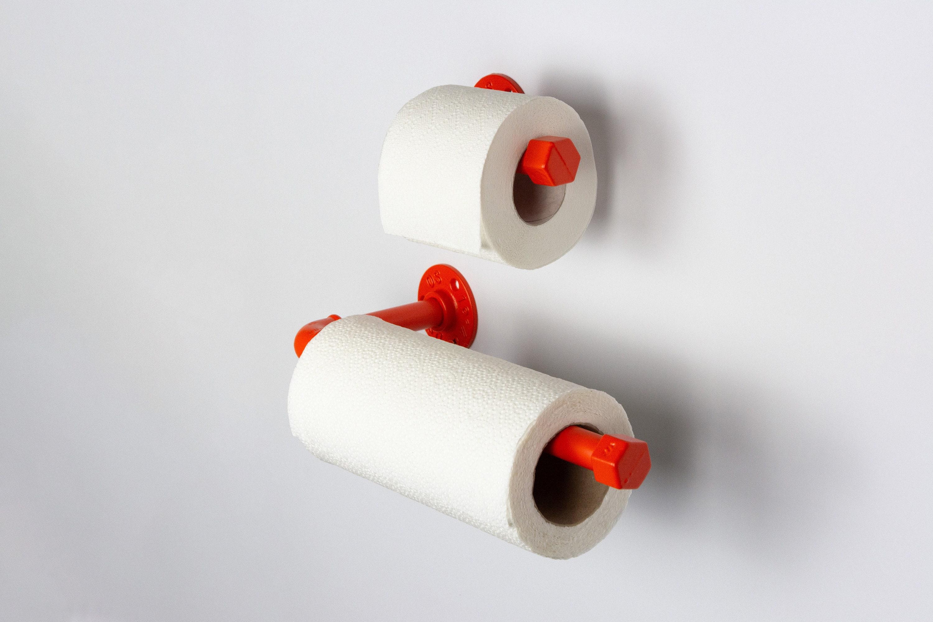 Toilet Roll Holder, Paper Towel Holder, Towel Rack, Urban Decor, Space Saver, Color Pictured Orange Matte
