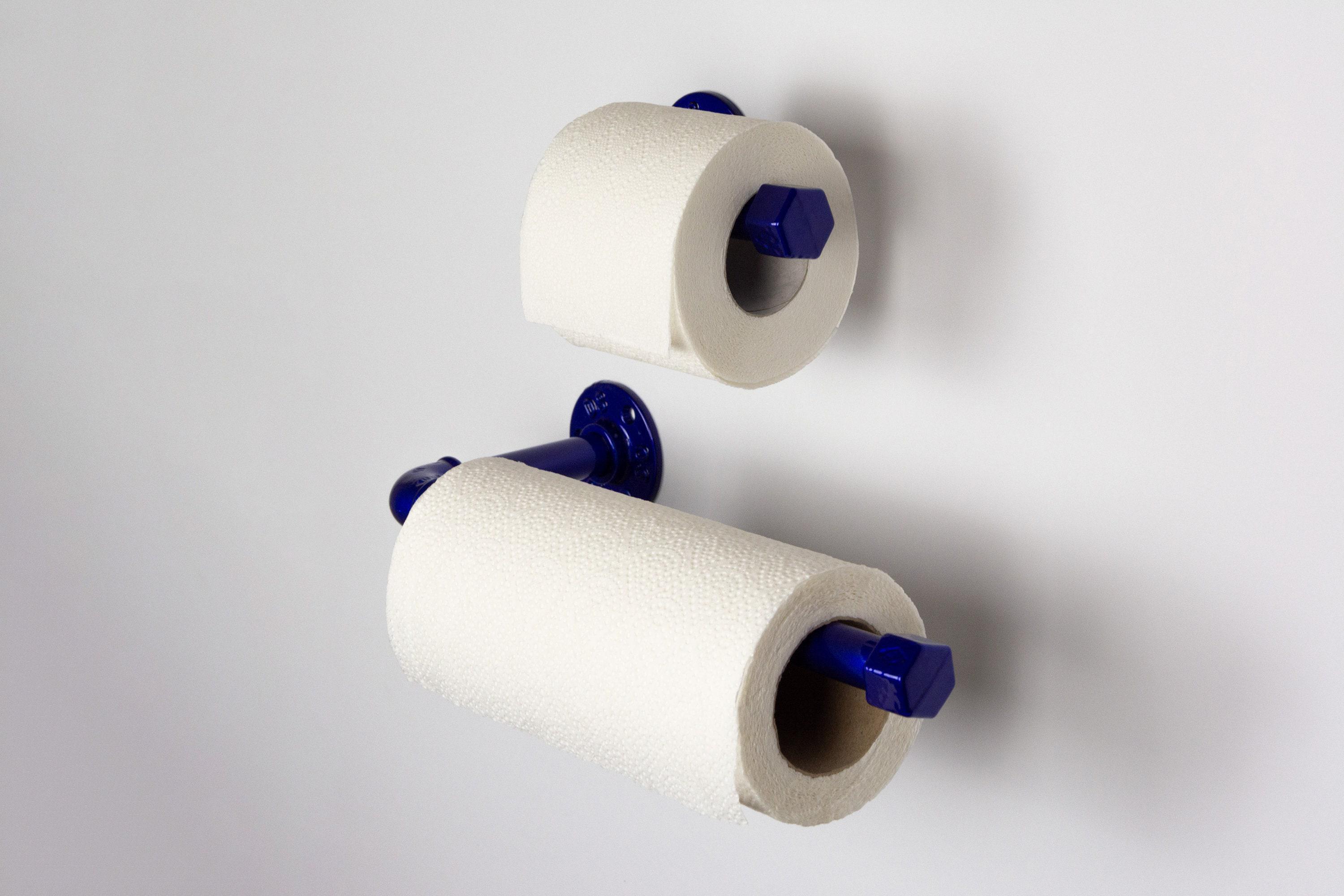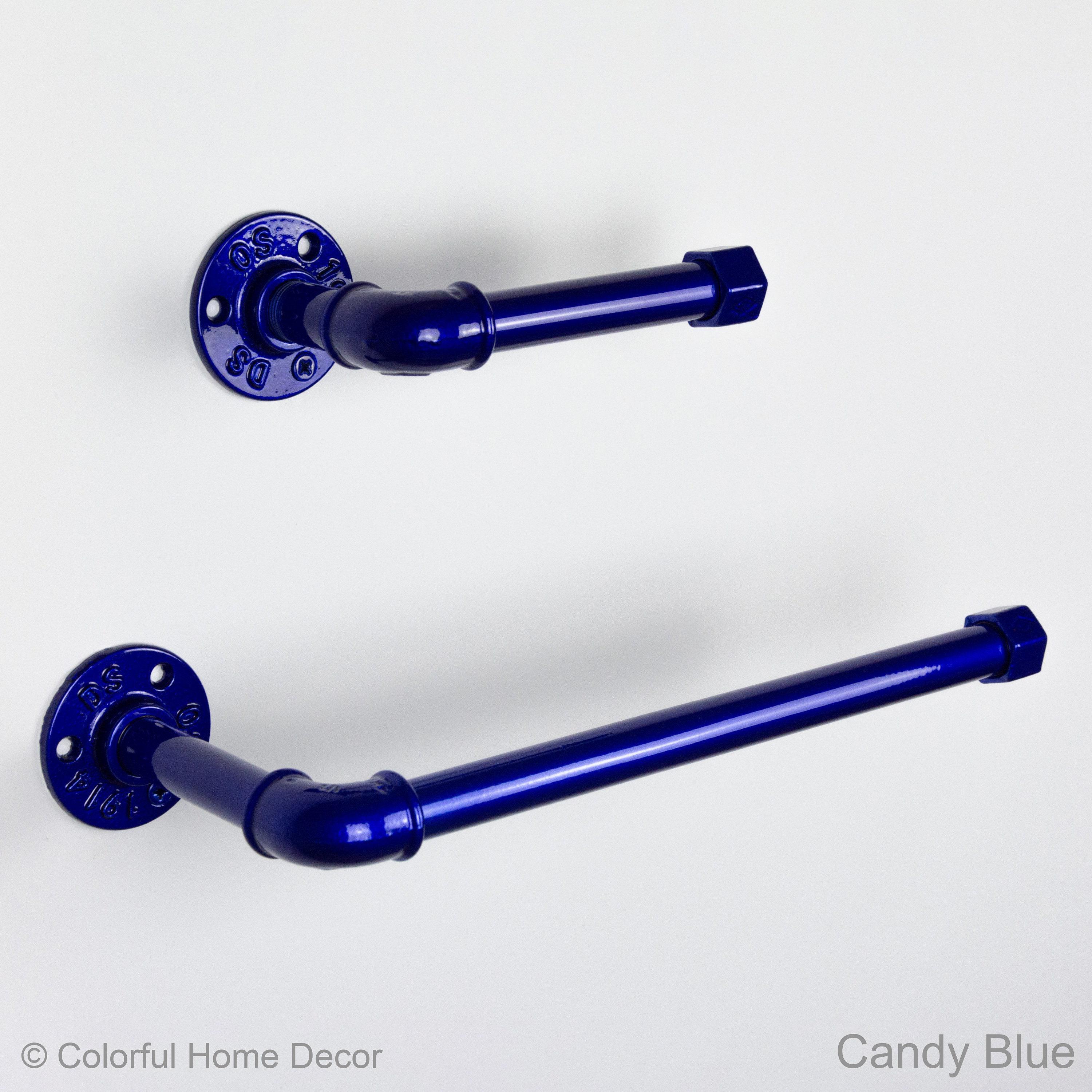 Toilet Tissue Holder, Paper Towel Holder, Towel Rack, Steampunk Bathroom, Bathroom Decor, Color Pictured Candy Blue