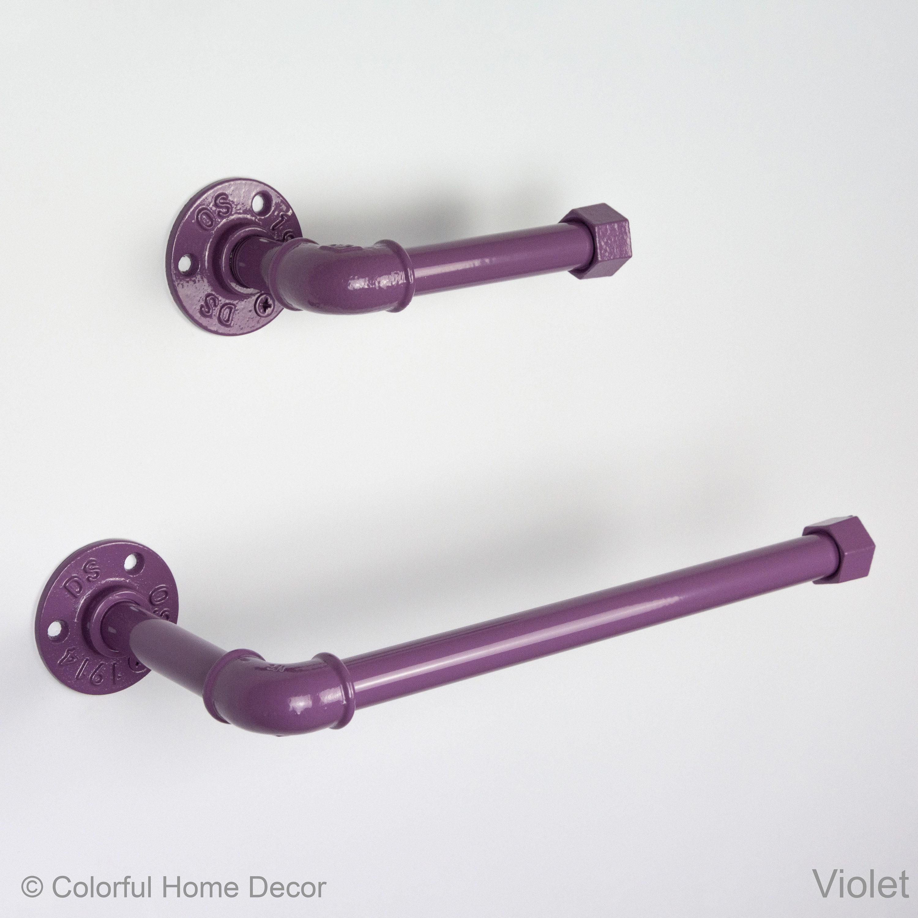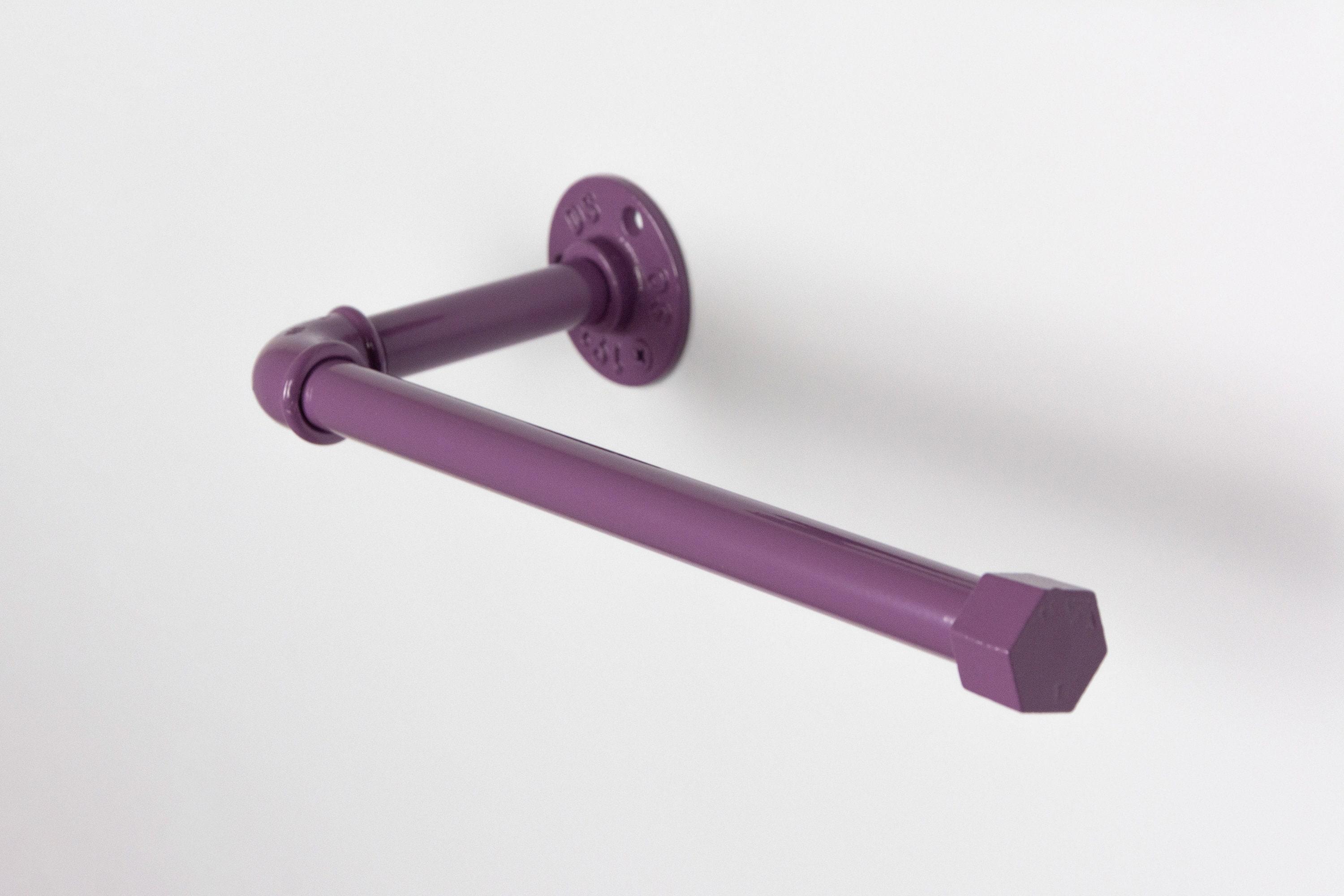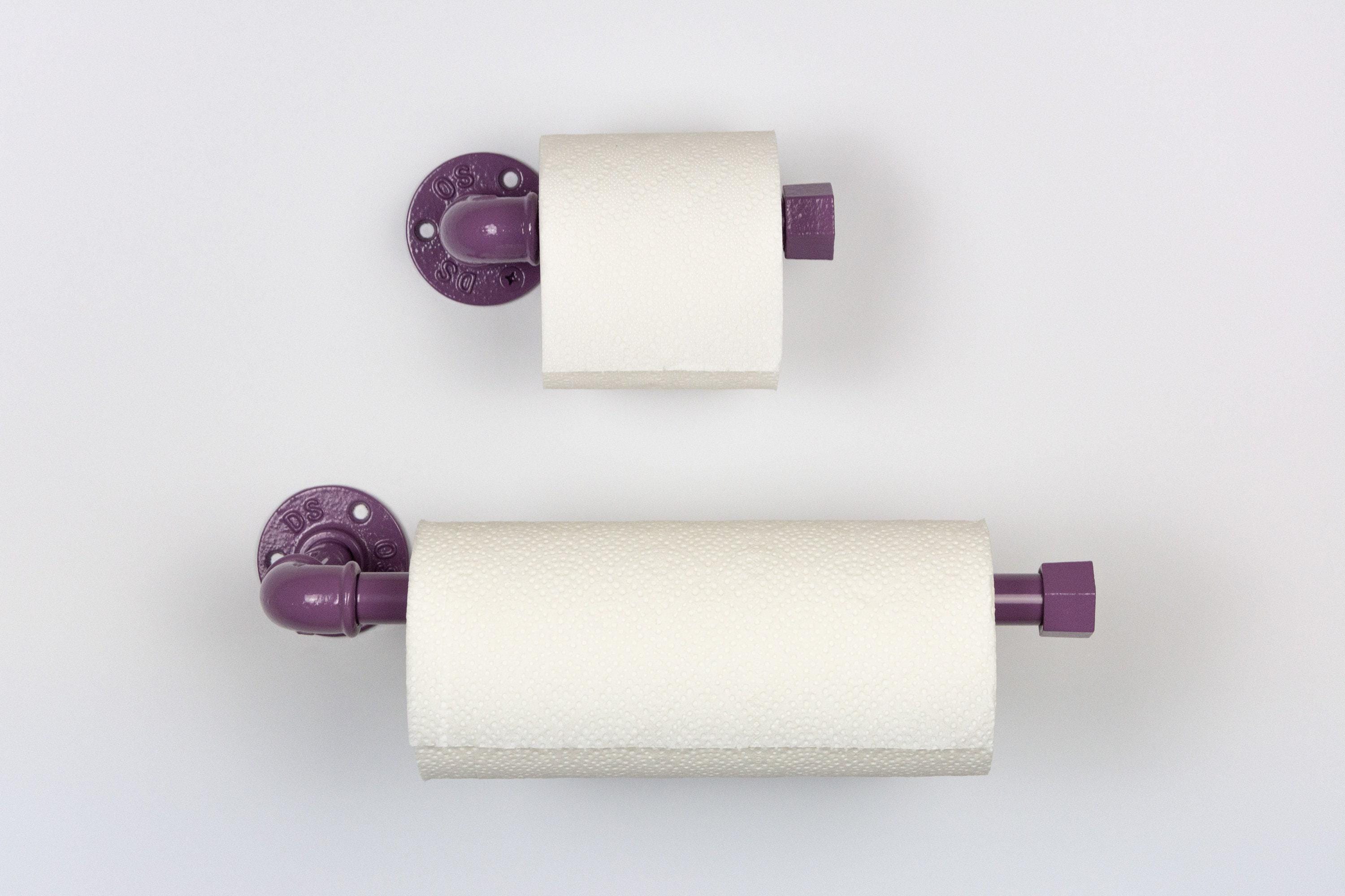 Does your toilet paper or paper towels have no hanging place in your home? Solve this problem with ease by using rustic home decor pieces like toilet paper holder or paper towel holder made from pipe! They can come in more than 60+ color finishes and the color pictured here is Violet.