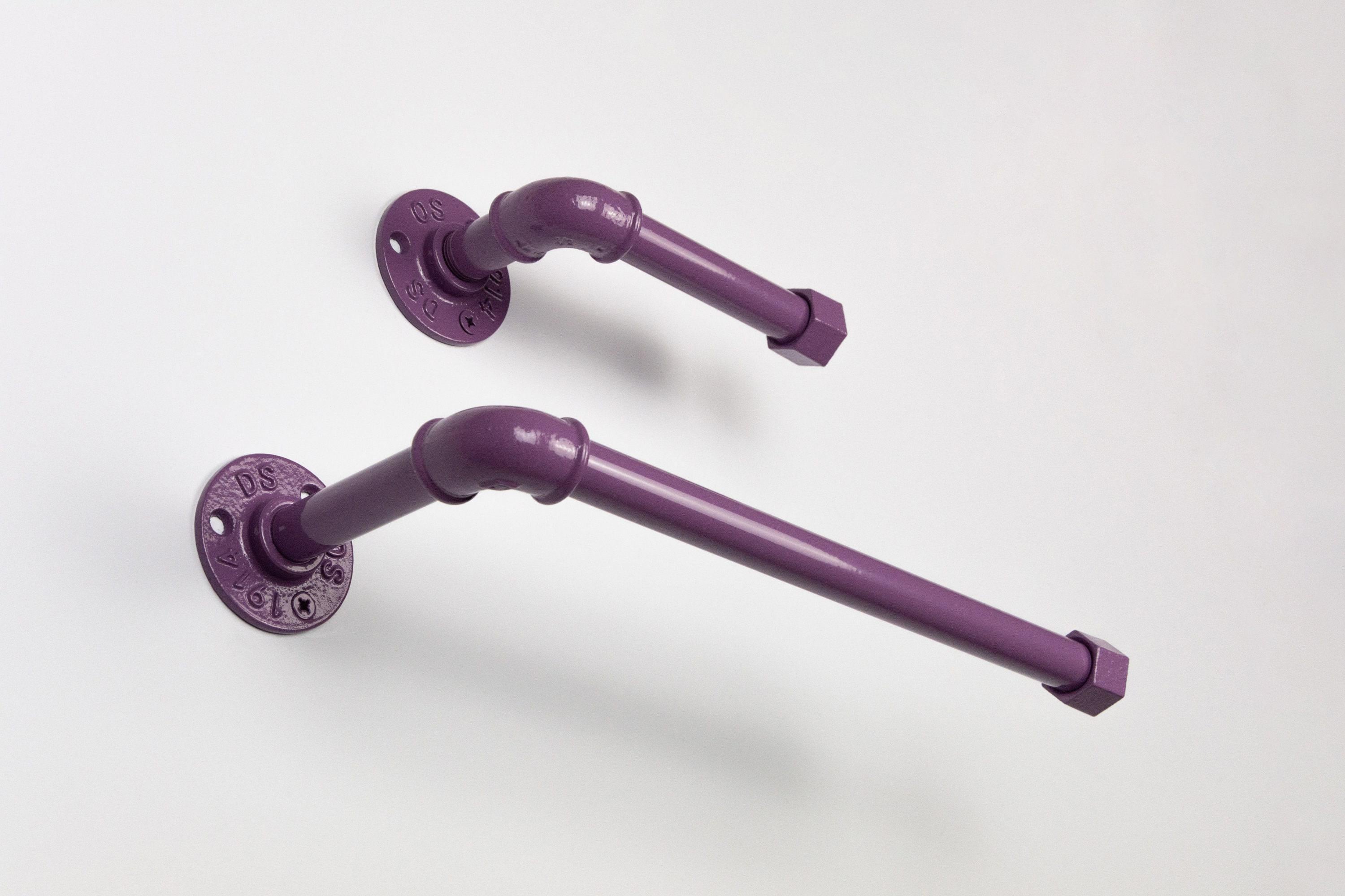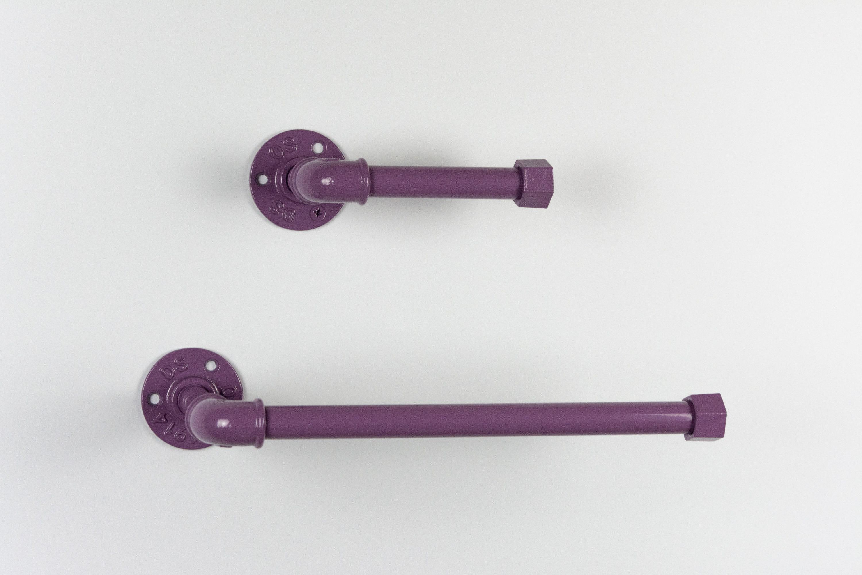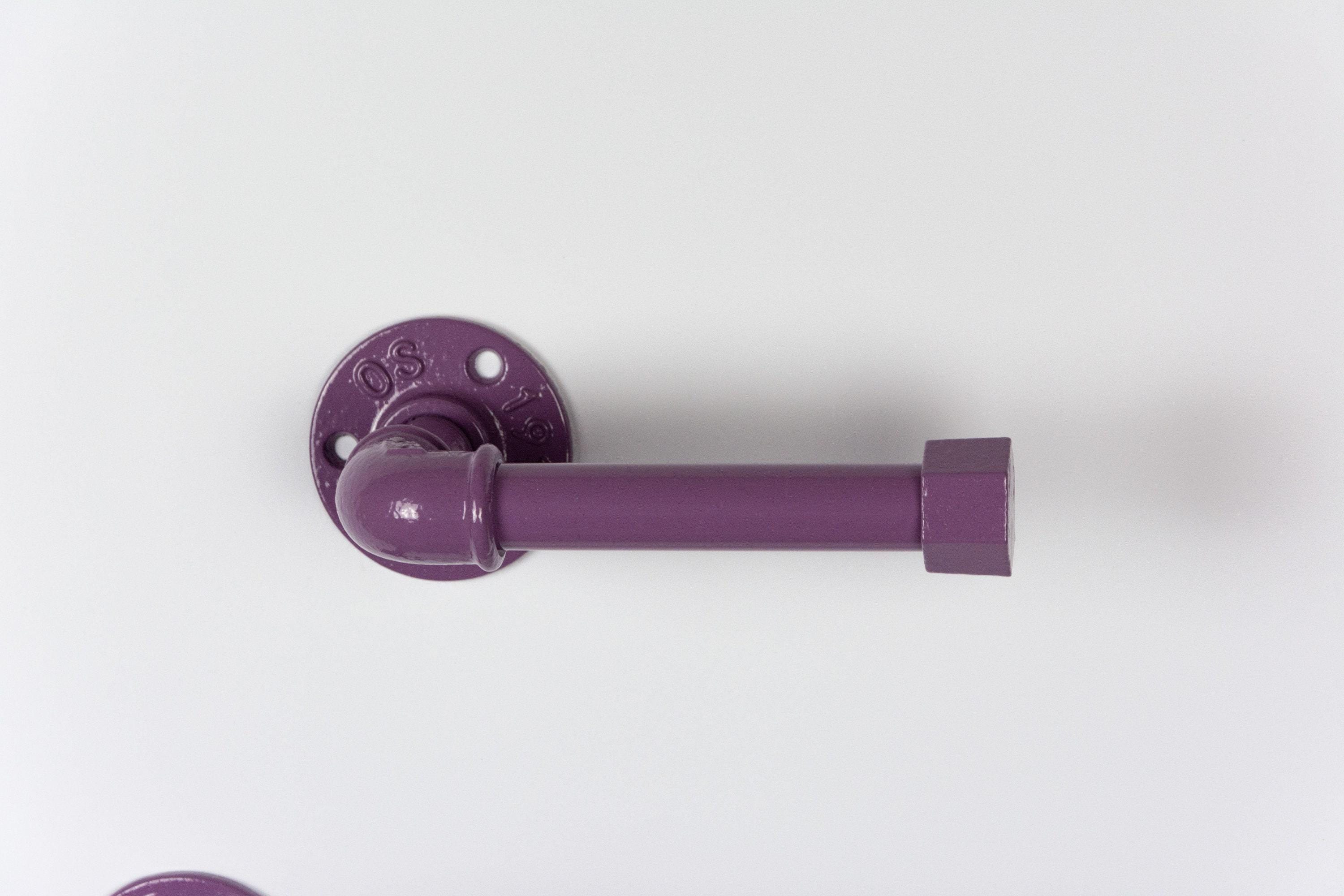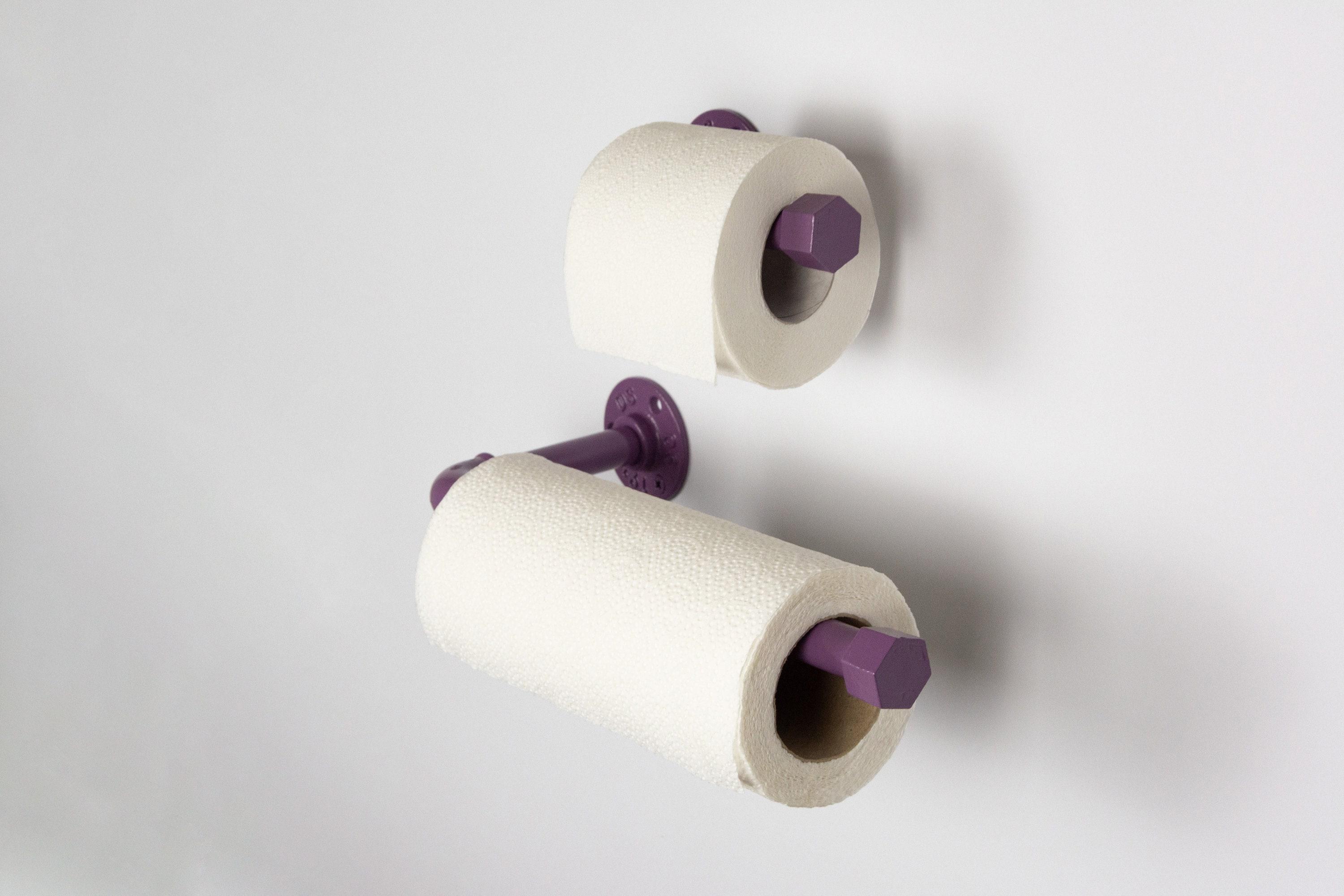 Does your toilet paper or paper towels have no hanging place in your home? Solve this problem with ease by using rustic home decor pieces like toilet paper holder or paper towel holder made from pipe! They can come in more than 60+ color finishes and the color pictured here is Violet.
