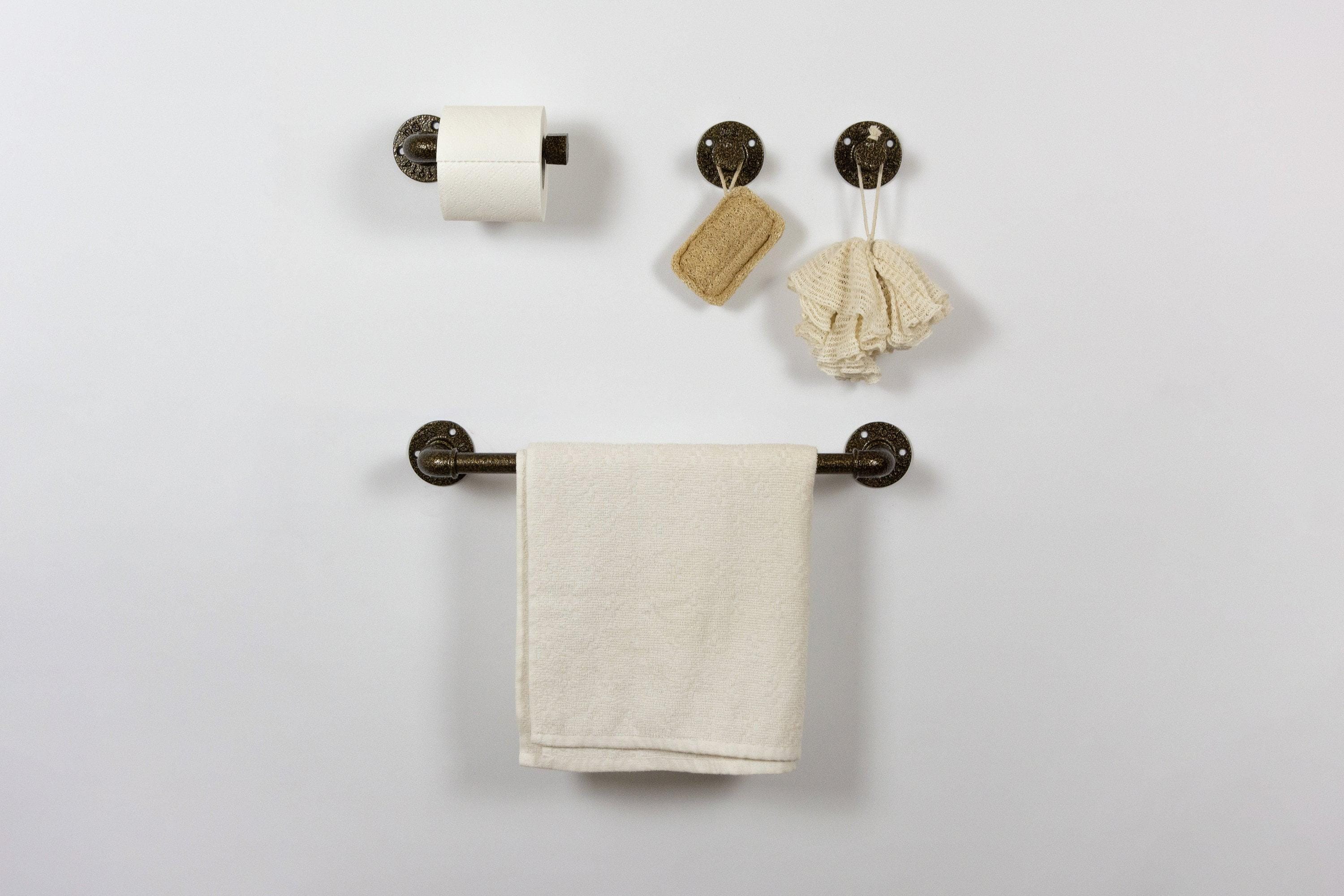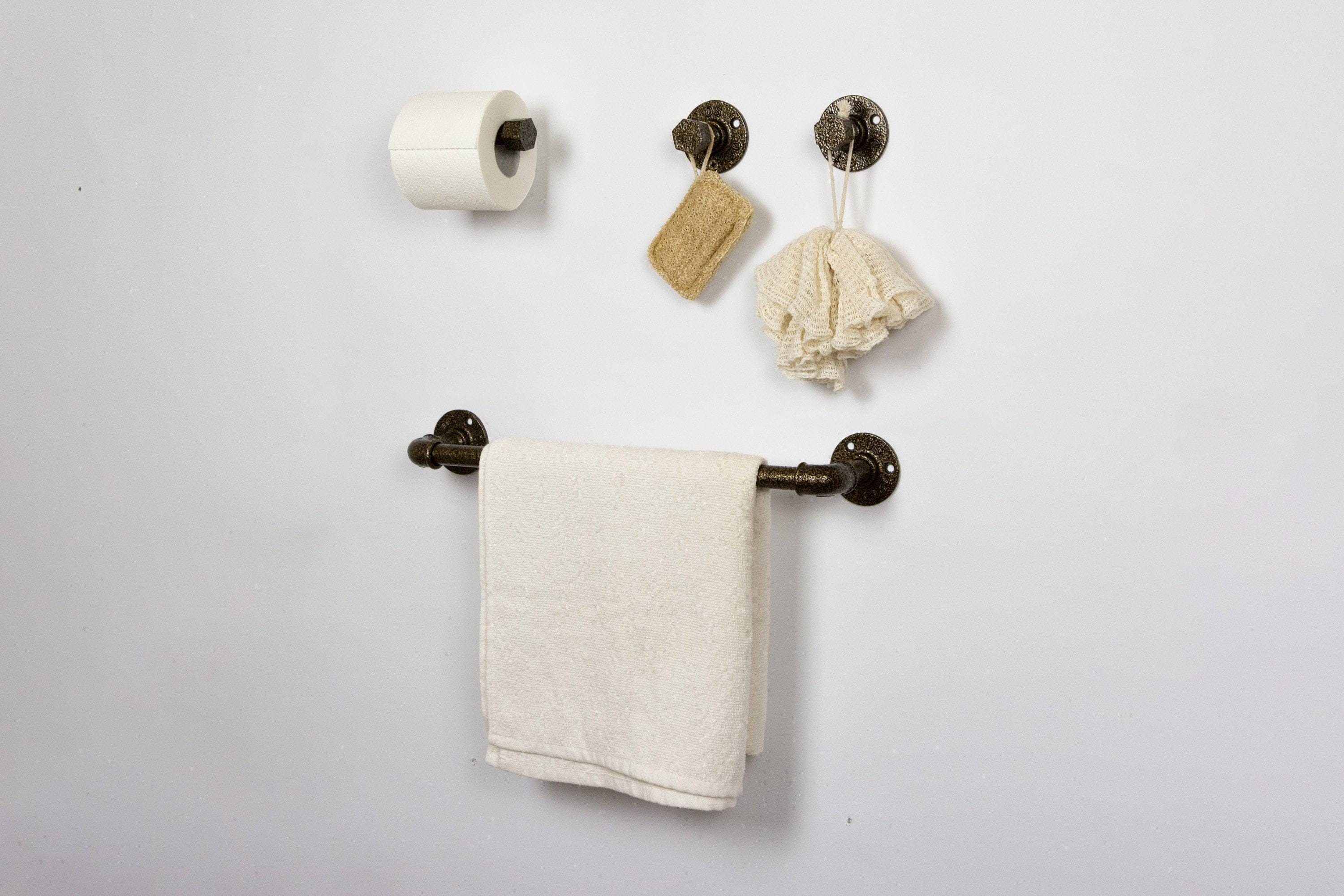 Pipe Bathroom Set 4pcs , Pipe Towel Rack, Toilet Roll Holder, Towel Hook, Wall Hook, Industrial Bathroom, Home Organization
