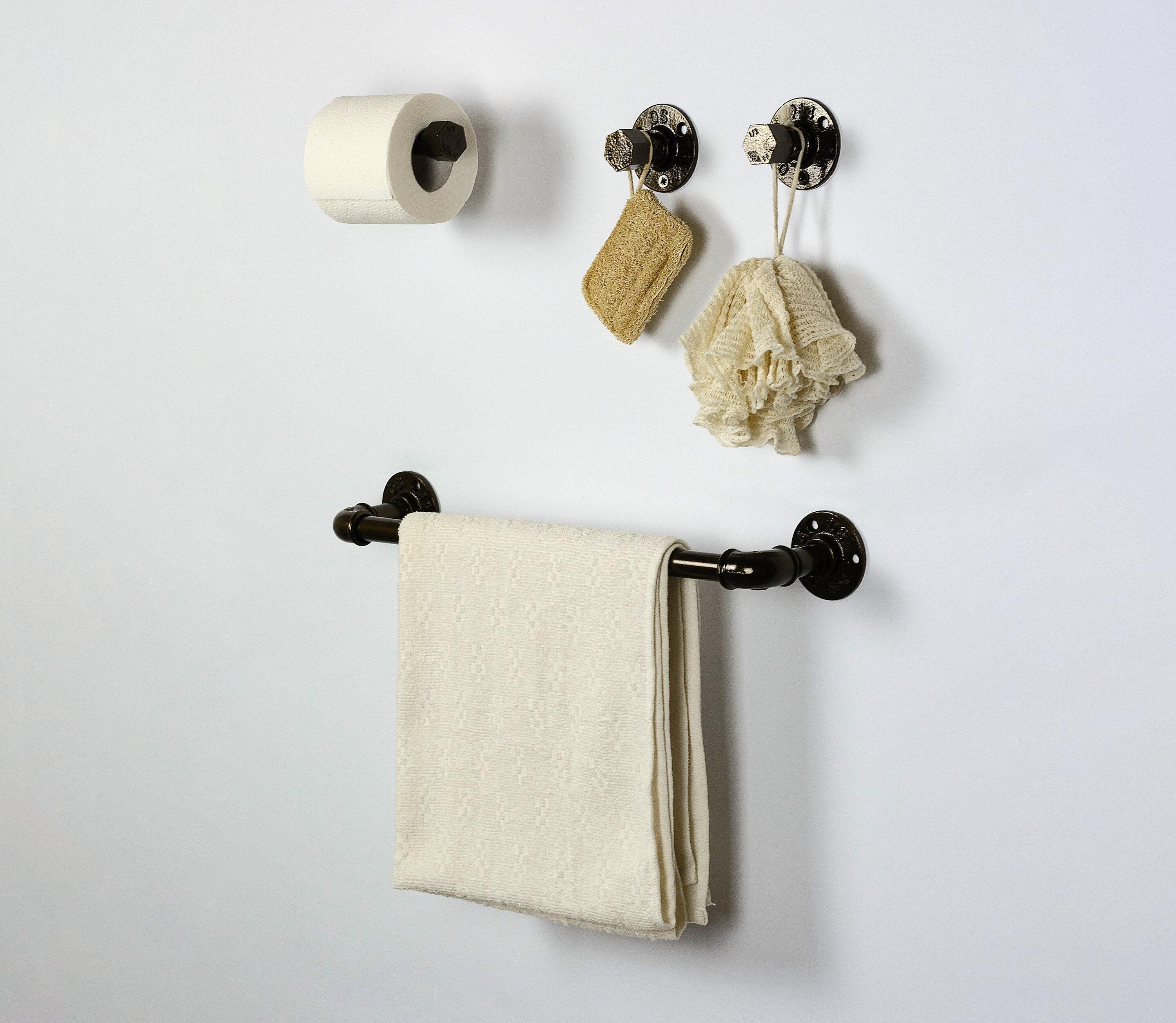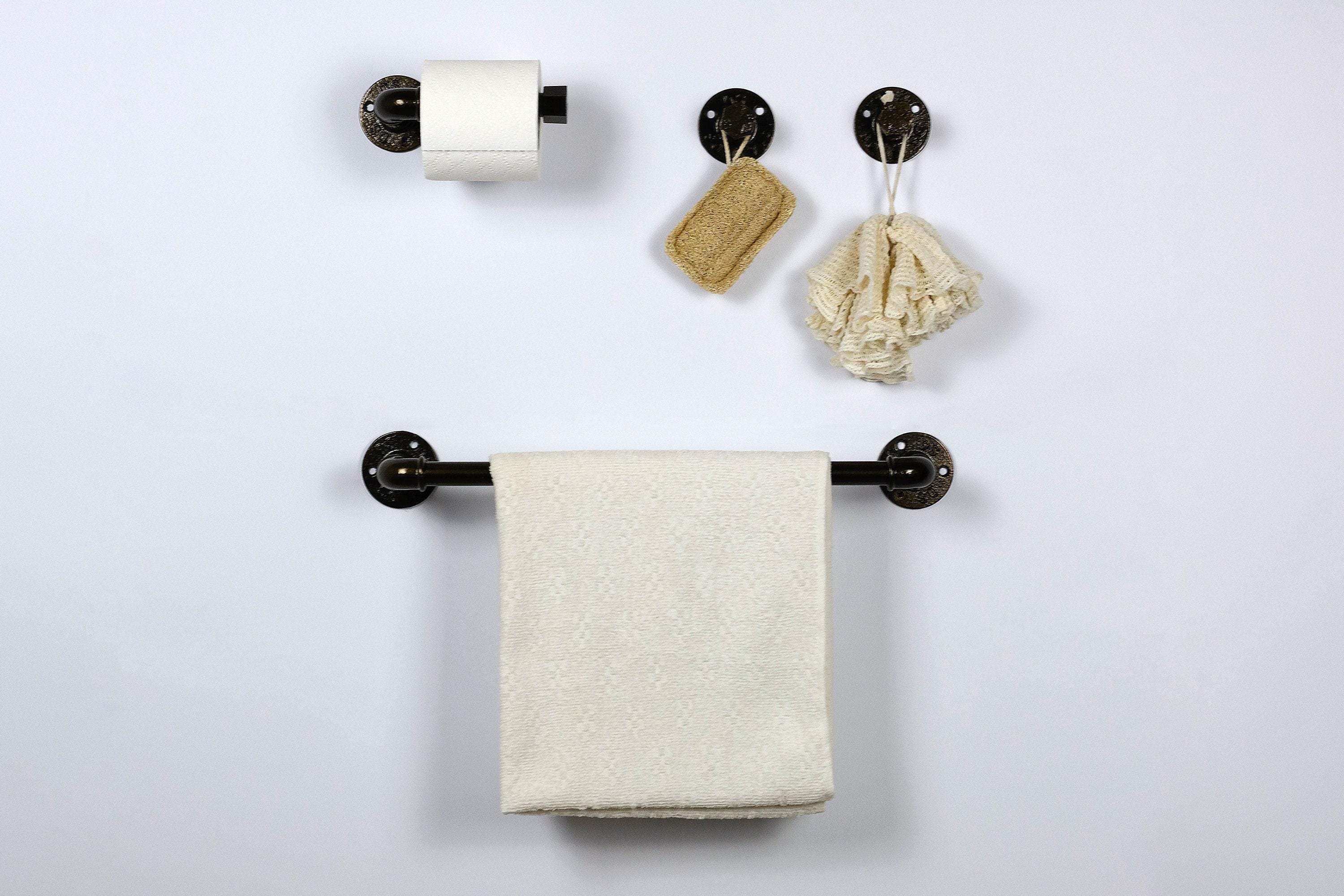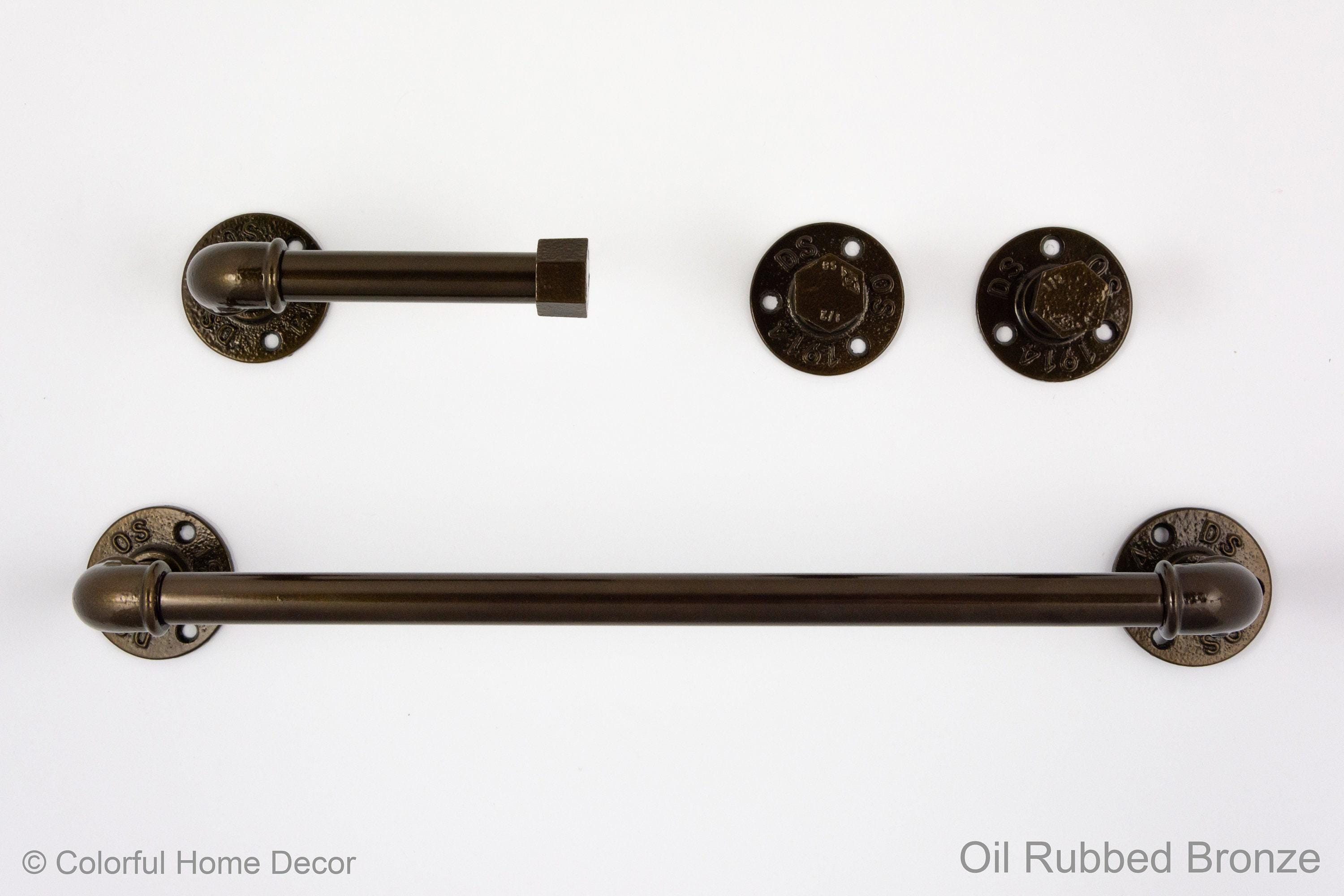 This practical industrial set will add charm and sturdiness to any bathroom! These modern bathroom accessories will be your new favorite functional pieces. The color of the set in the pictures is Oil Rubbed Bronze, however, it can be made in more than 65 colors!
