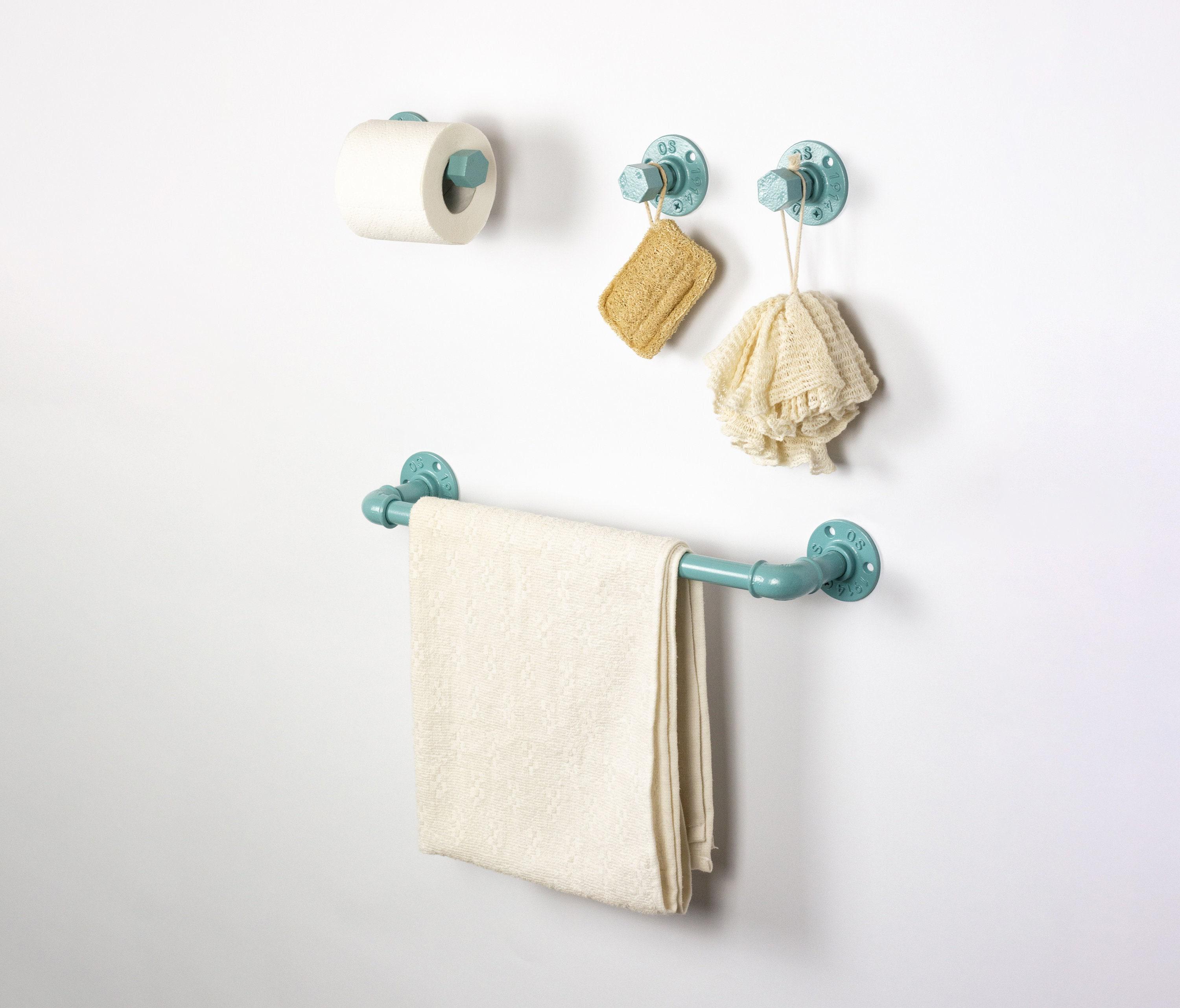 Steampunk Bathroom Accessories 4pcs Set, Includes Towel Rack, Two Towel Hooks, Toilet Paper Holder, Pipe Bathroom Set