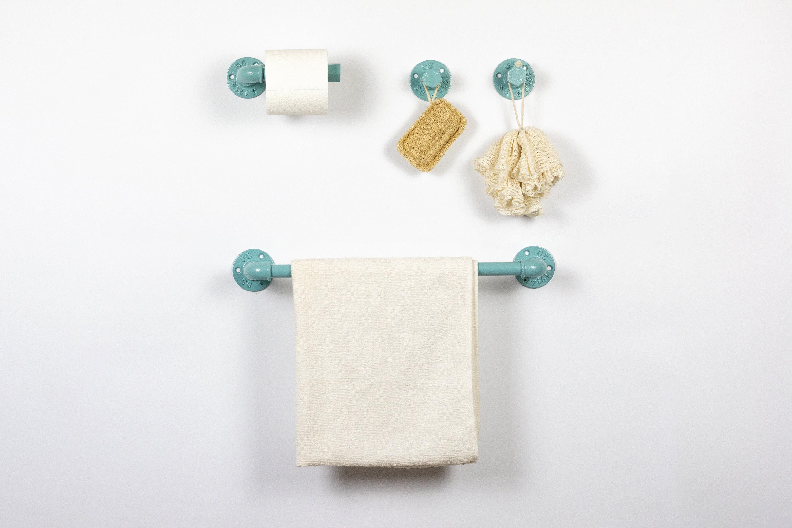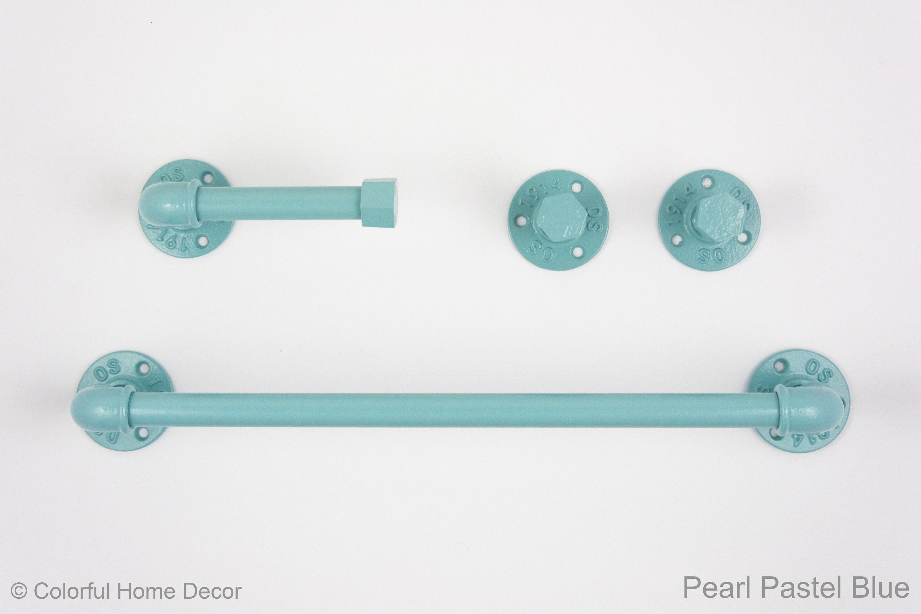This practical steampunk bathroom set will add charm and sturdiness to any bathroom! These modern bathroom accessories that include a towel rack, two towel hooks, toilet paper holder will be sure to add a unique touch to your washroom. The color of the set in the pictures is Pearl Pastel Blue, however, it can be made in more than 65 colors!