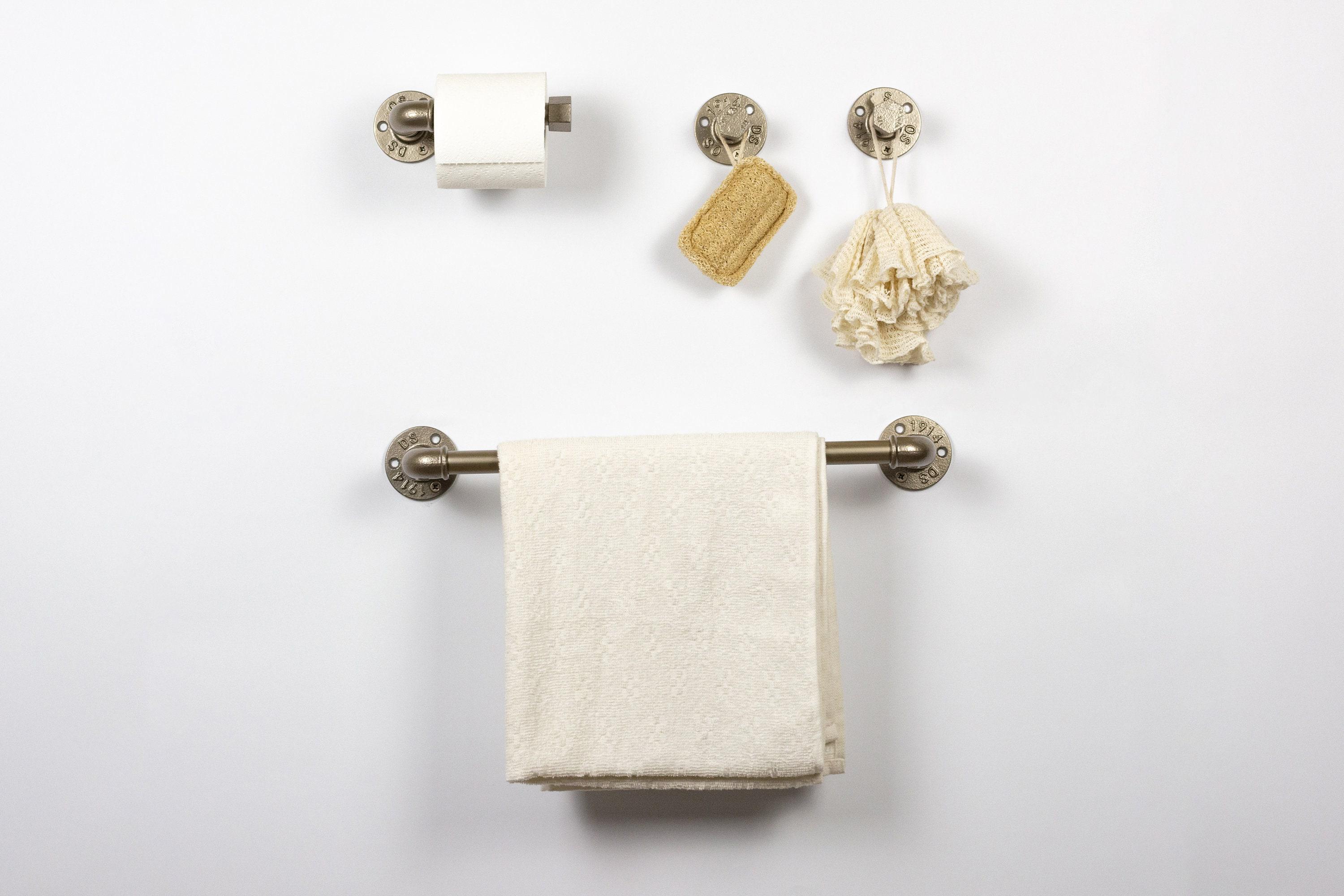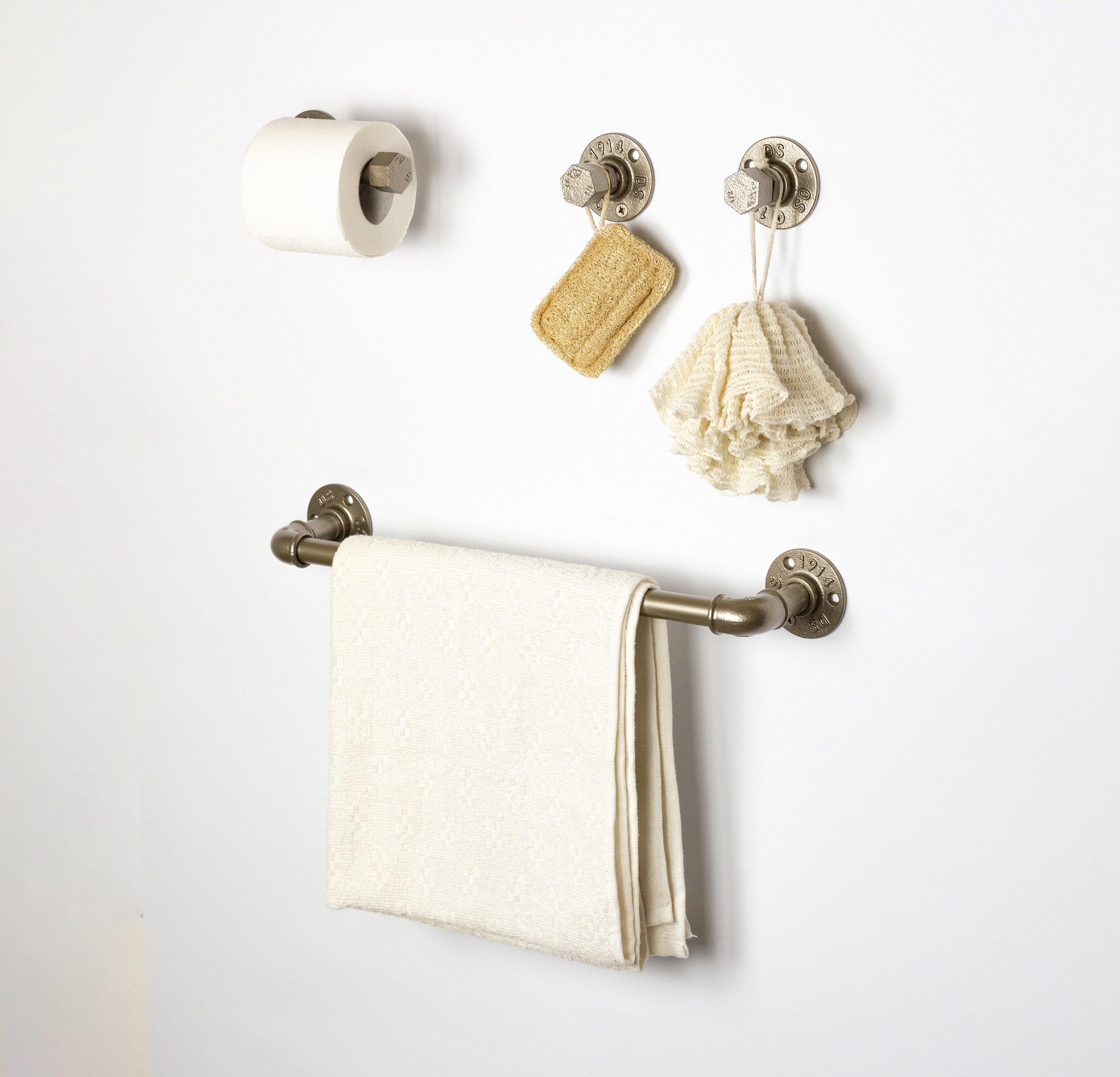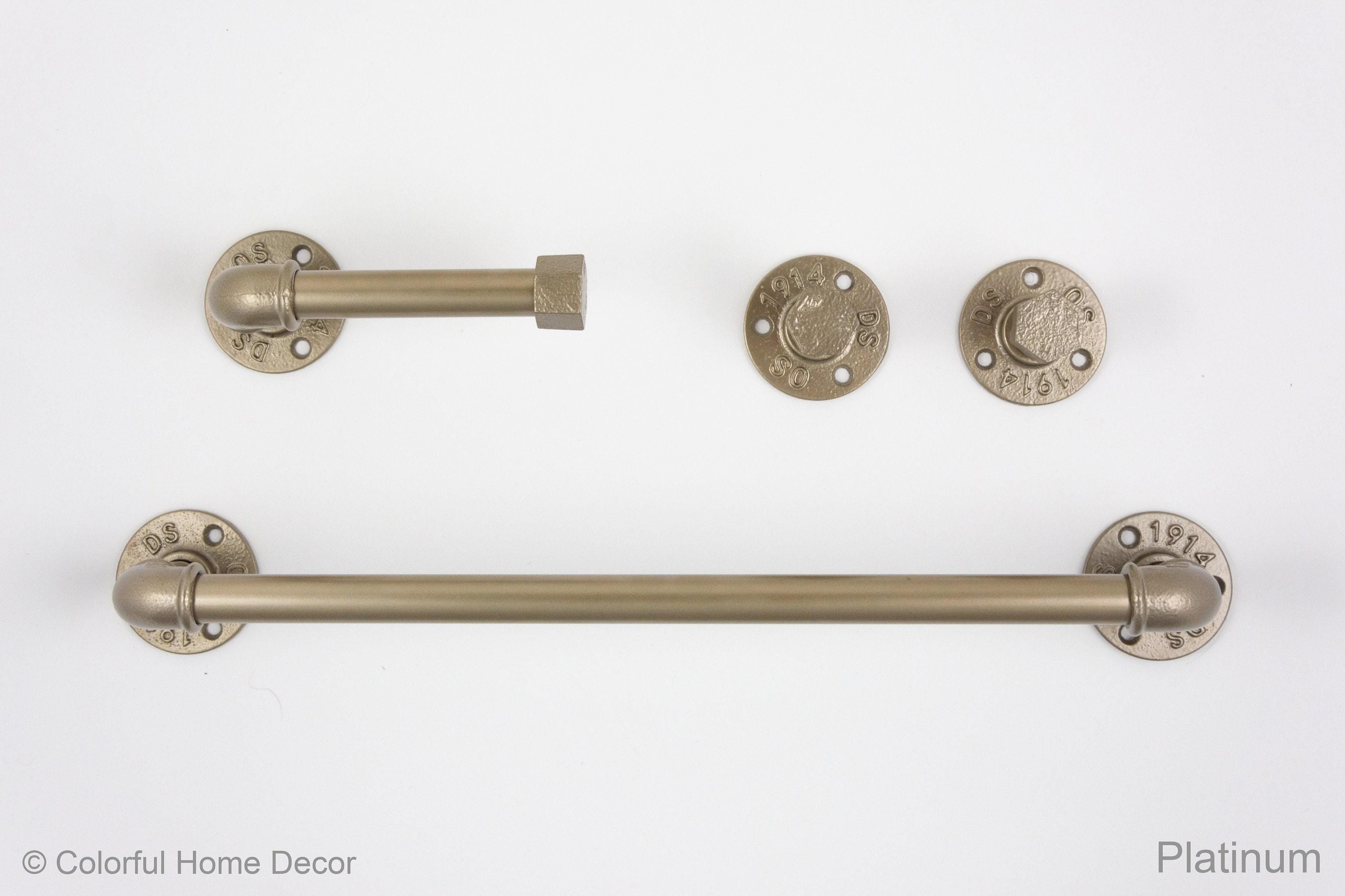 This practical pipe bathroom set will be a beautiful yet functional piece in your home! Use this pipe towel rack, toilet roll holder and wall hooks to keep your home organized. The color of the set in the pictures is Platinum, however, it can be made in more than 65 colors!
