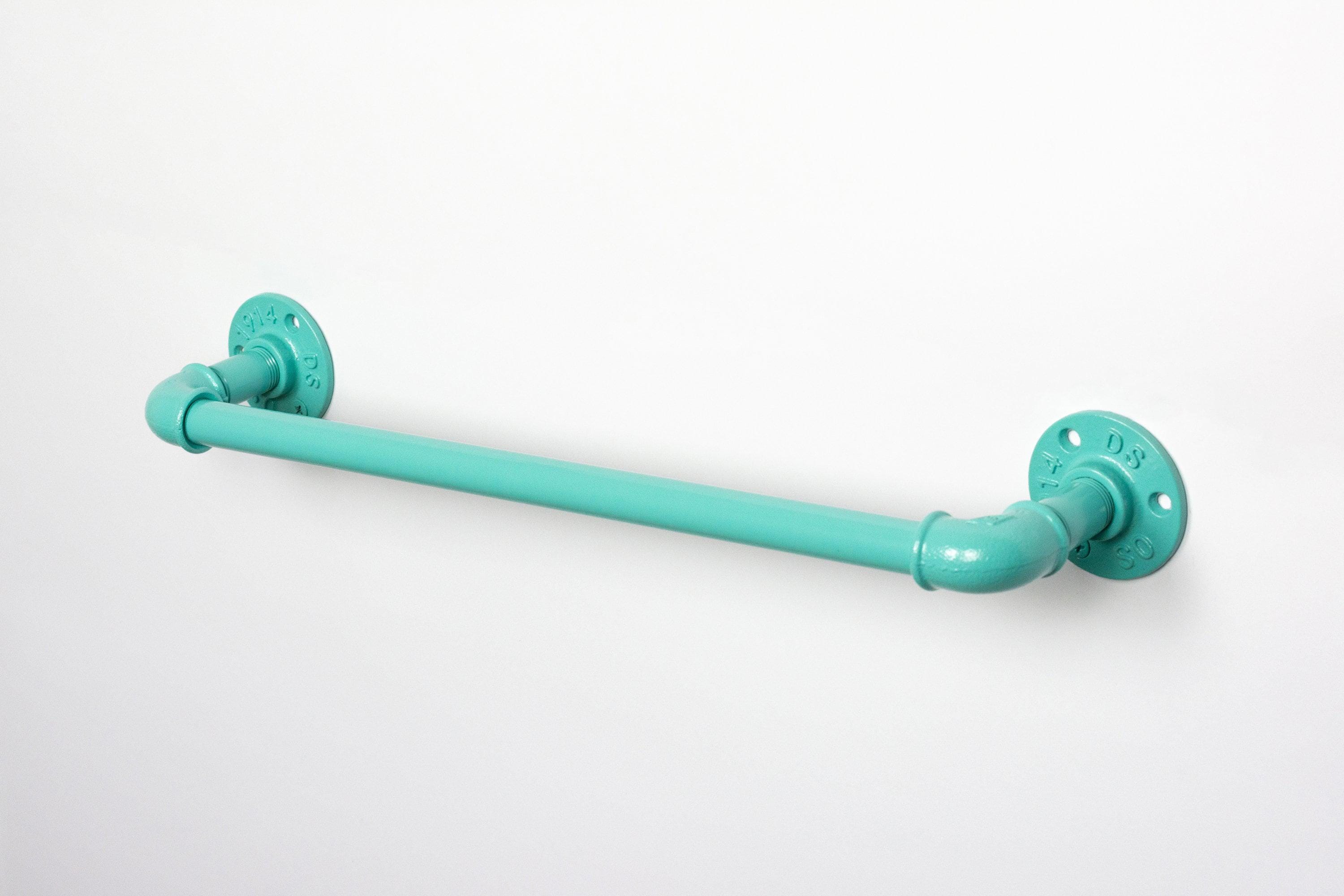Create your own unique farmhouse bathroom with these pipe bathroom accessories set! This pipe towel rack together with rustic towel hooks will hold your robes and towels while creating an amazing look in your bathroom. The color of the set in the pictures is Light Blue, however, it can be made in more than 65 colors!