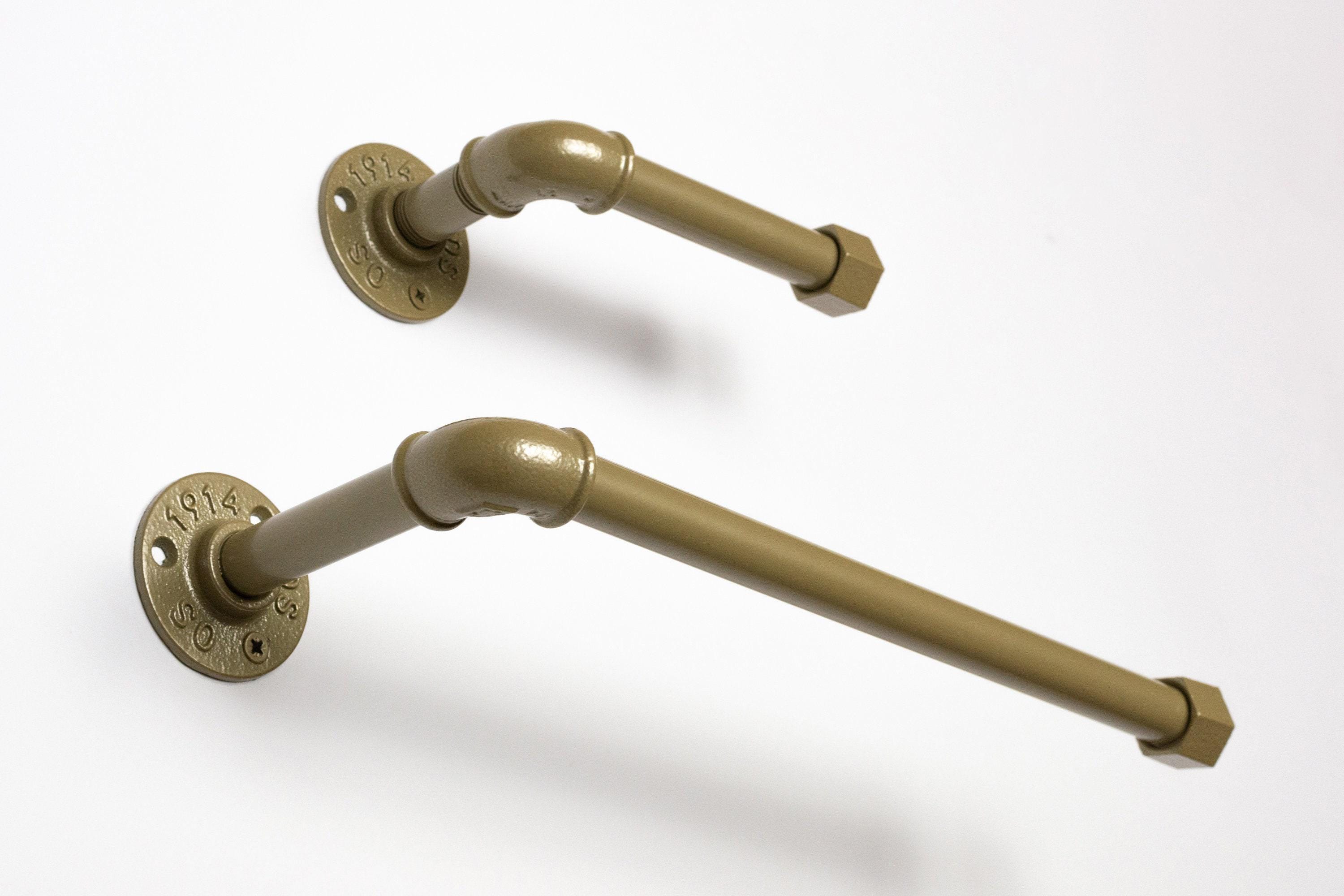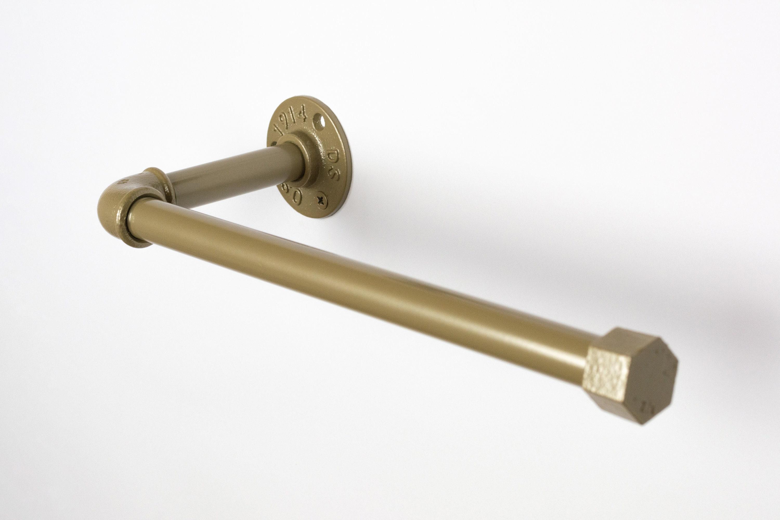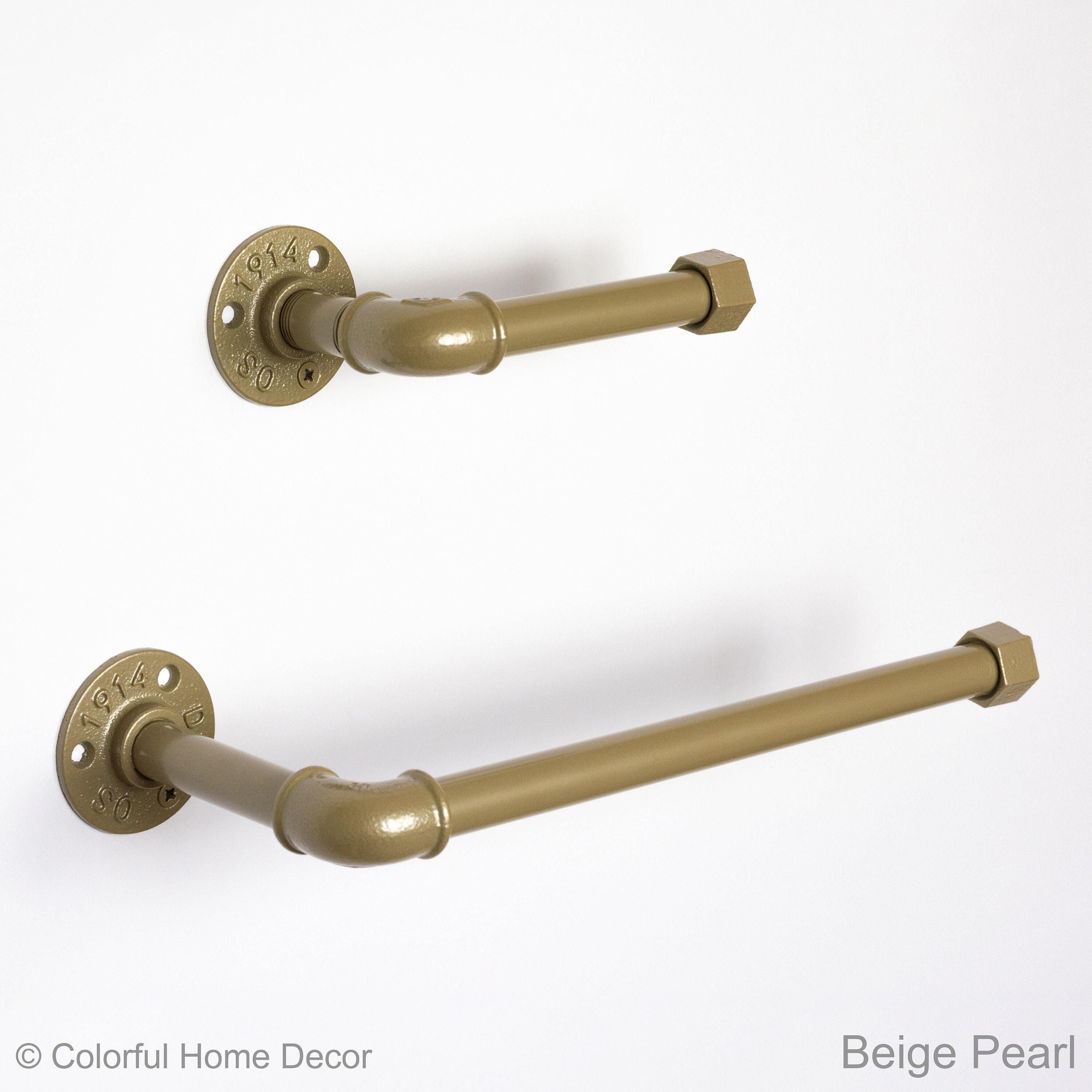 Your own industrial bathroom will look great with a sturdy toilet paper holder piece or towel rack for your restroom! Color in the pictures is Beige Pearl.