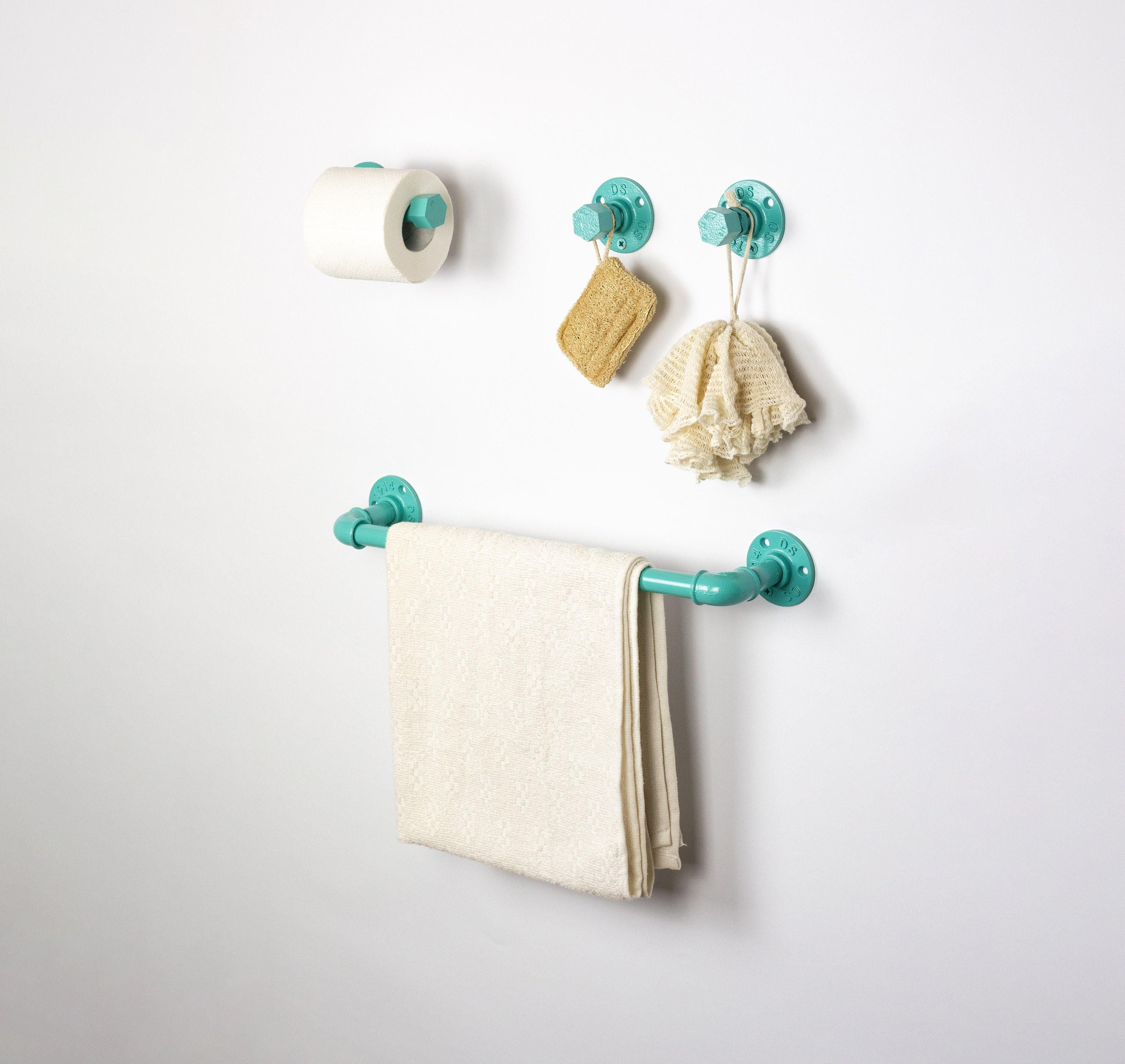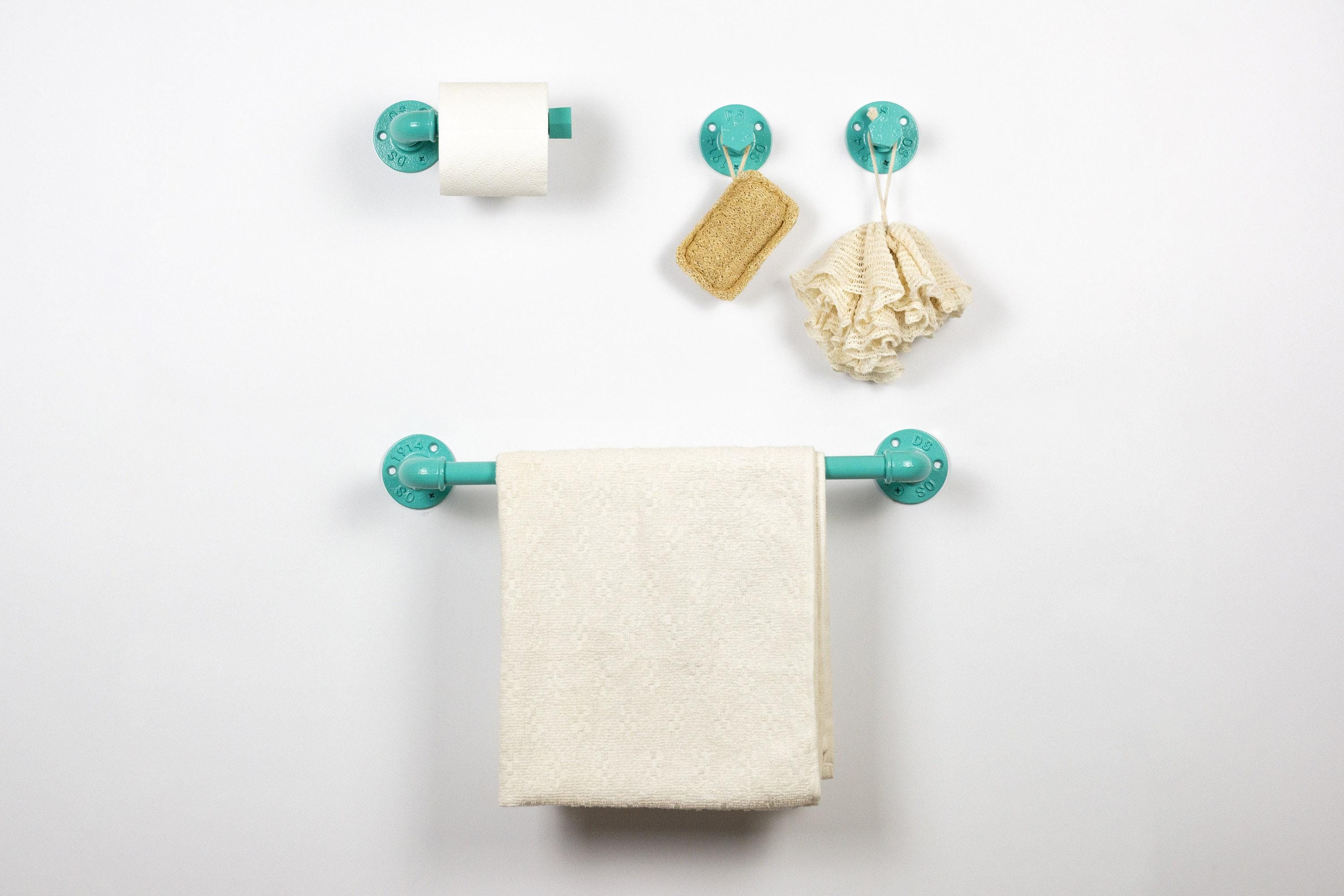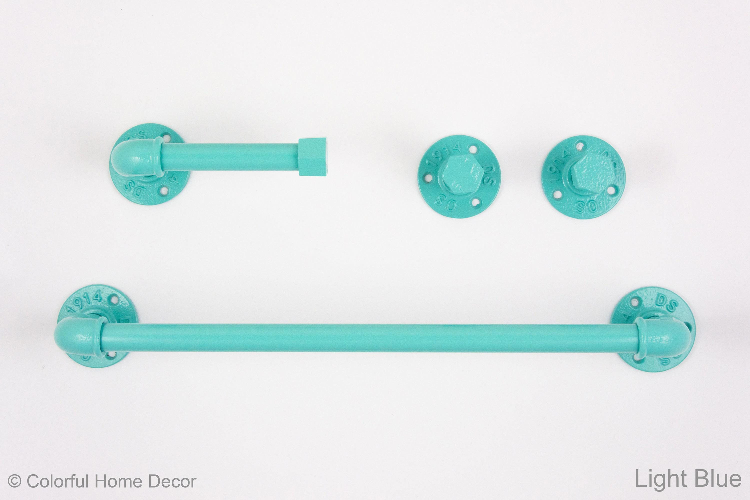 Create your own unique farmhouse bathroom with these pipe bathroom accessories set! This pipe towel rack together with rustic towel hooks will hold your robes and towels while creating an amazing look in your bathroom. The color of the set in the pictures is Light Blue, however, it can be made in more than 65 colors!