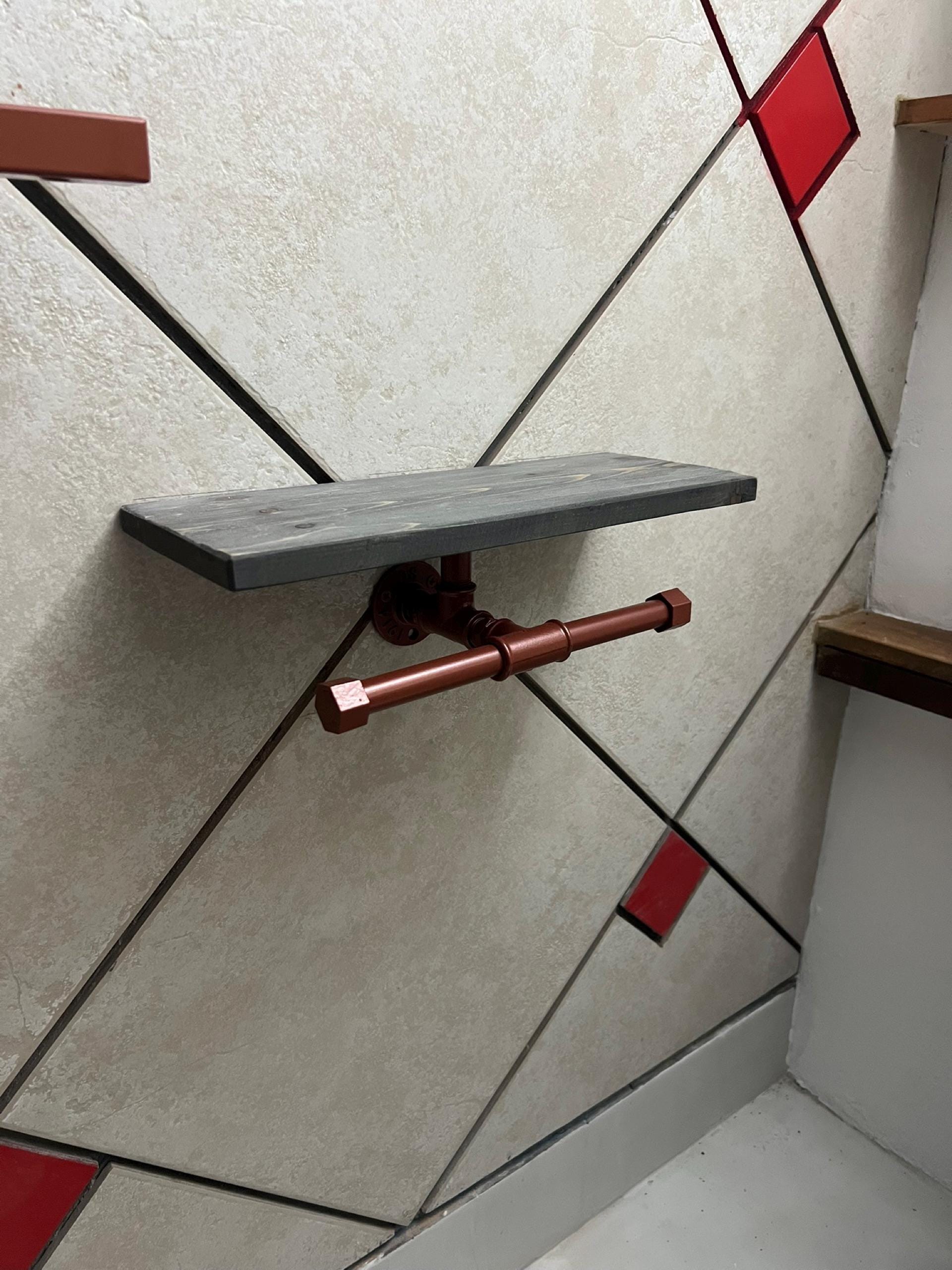 Double Toilet Paper Holder With Shelf, Toilet Paper Storage, Pipe Tp Holder, Rustic Industrial Bathroom Decor, Bathroom Storage