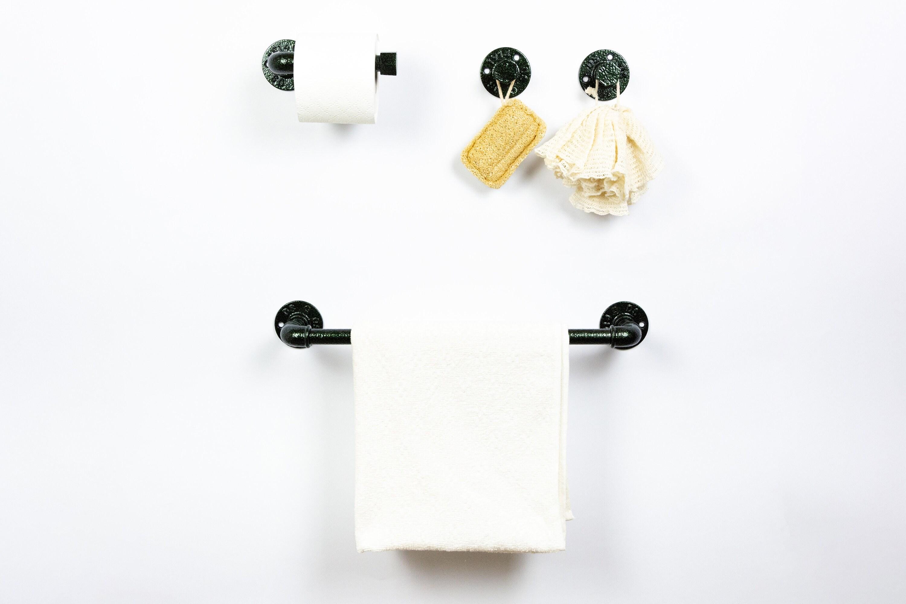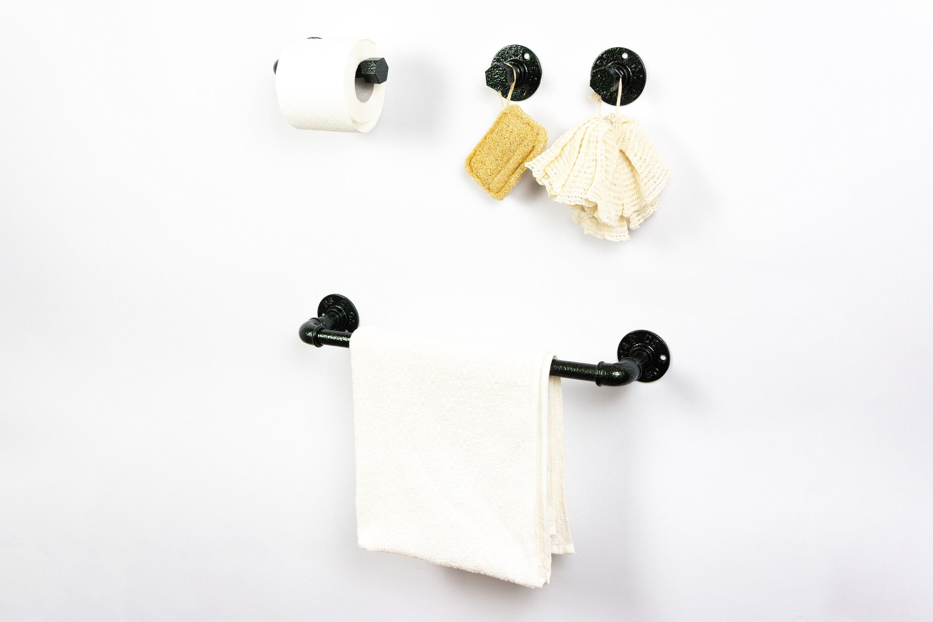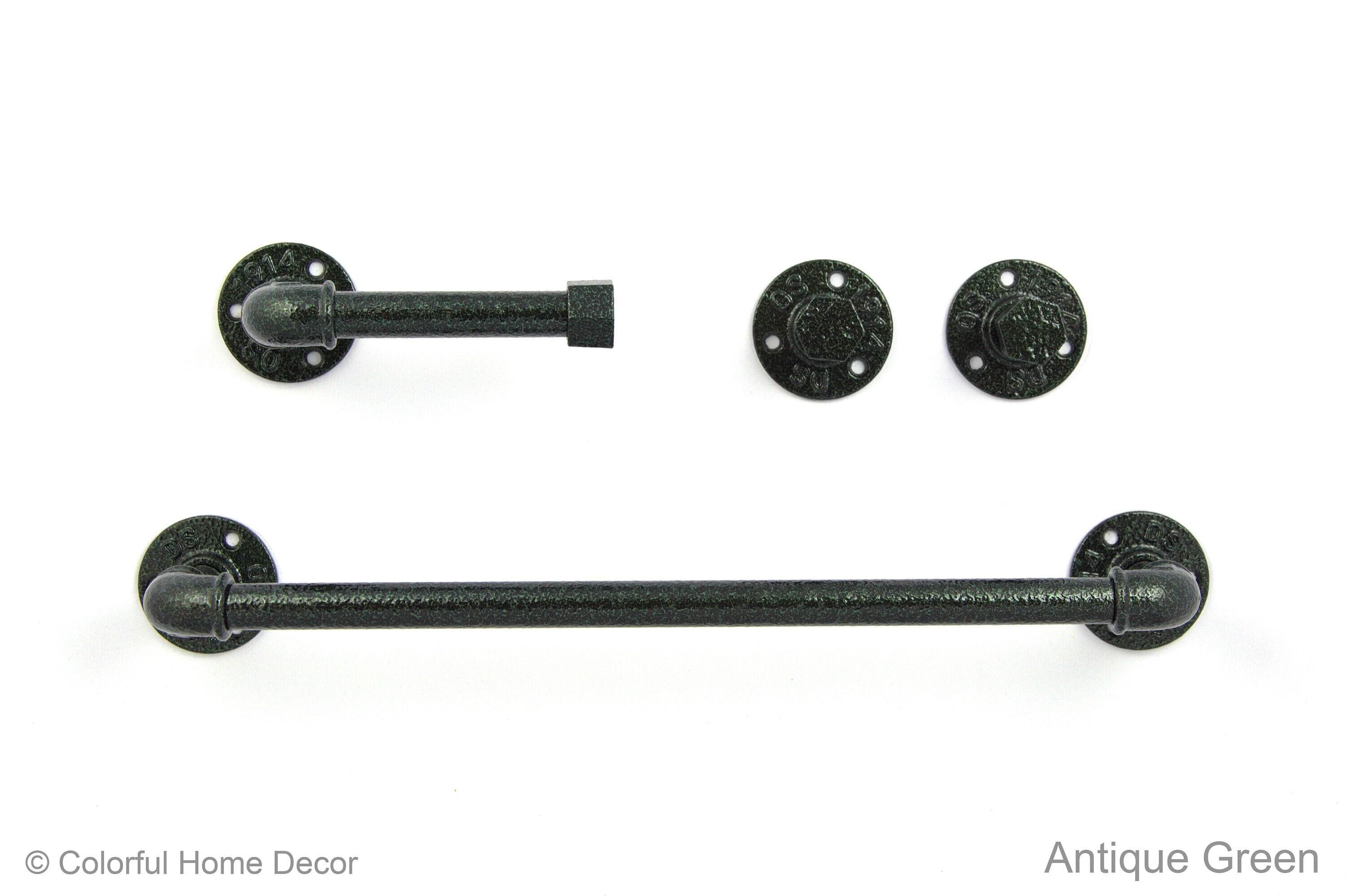 Create your own unique farmhouse bathroom with these pipe bathroom accessories set! This pipe towel rack together with rustic towel hooks will hold your robes and towels while creating an amazing look in your bathroom. The color of the set in the pictures is Antique Green, however, it can be made in more than 65 colors!
