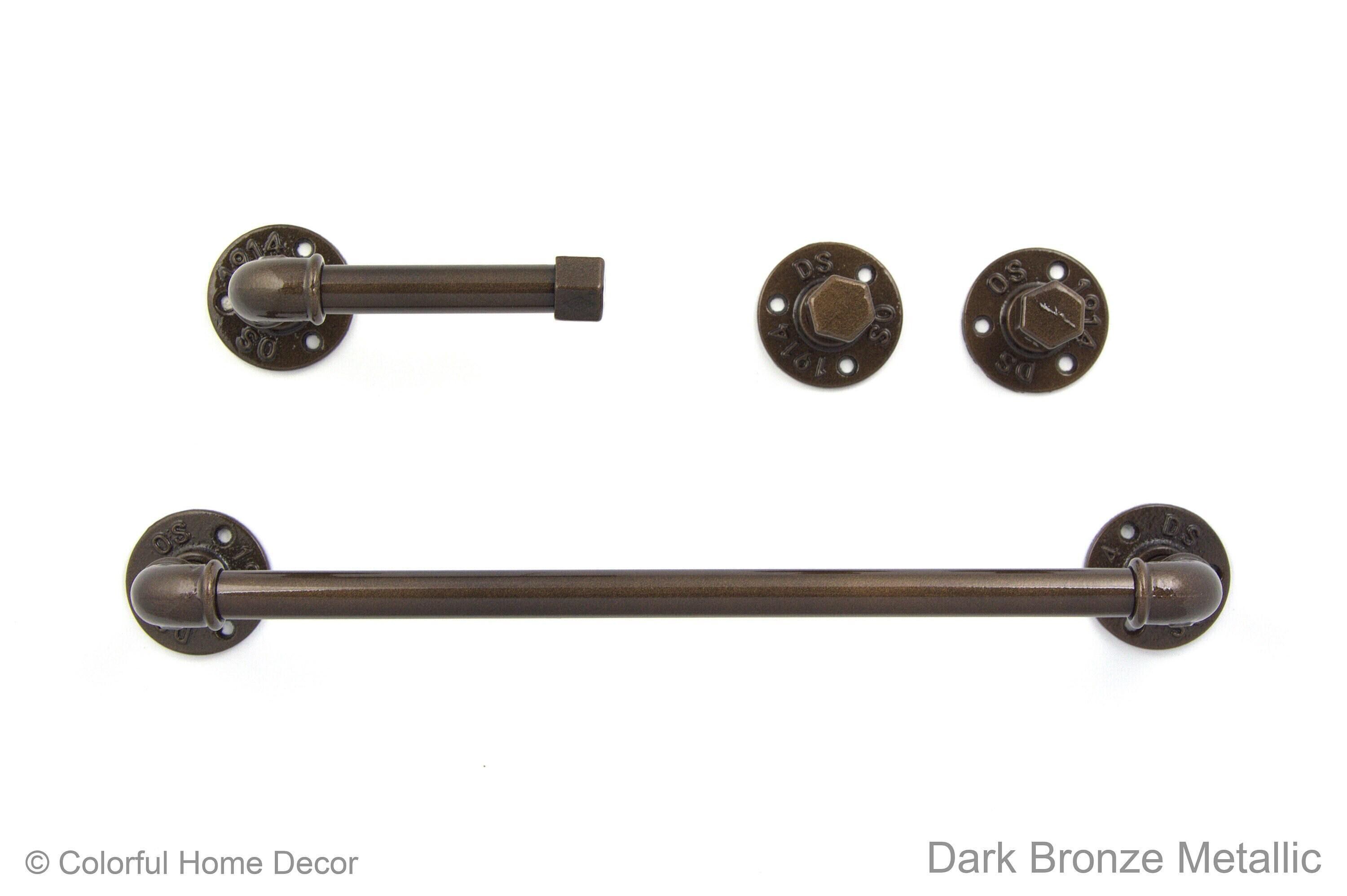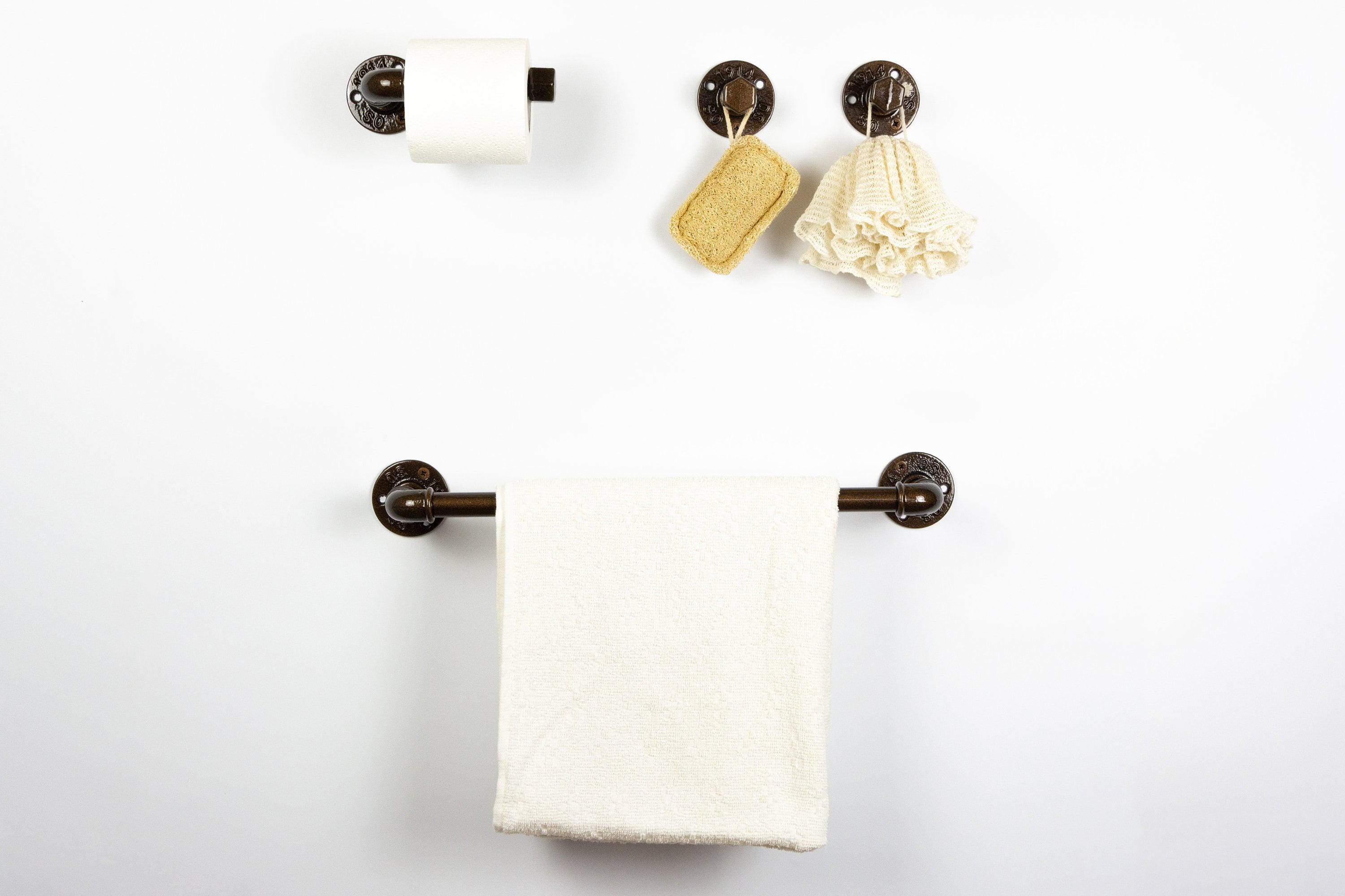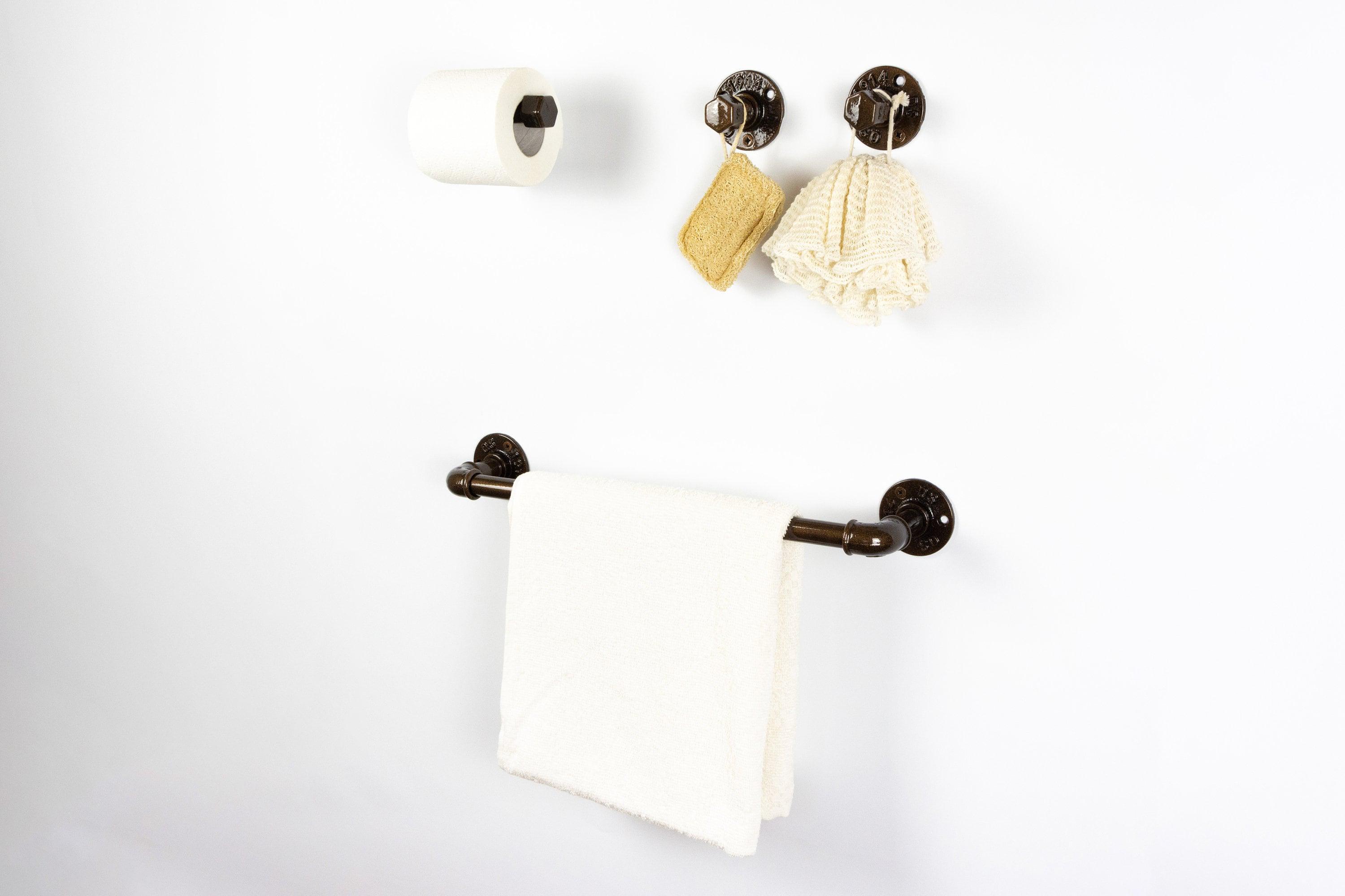 This practical pipe bathroom set will be a beautiful yet functional piece in your home! Use this pipe towel rack, toilet roll holder and wall hooks to keep your home organized. The color of the set in the pictures is Dark Bronze Metallic, however, it can be made in more than 65 colors!