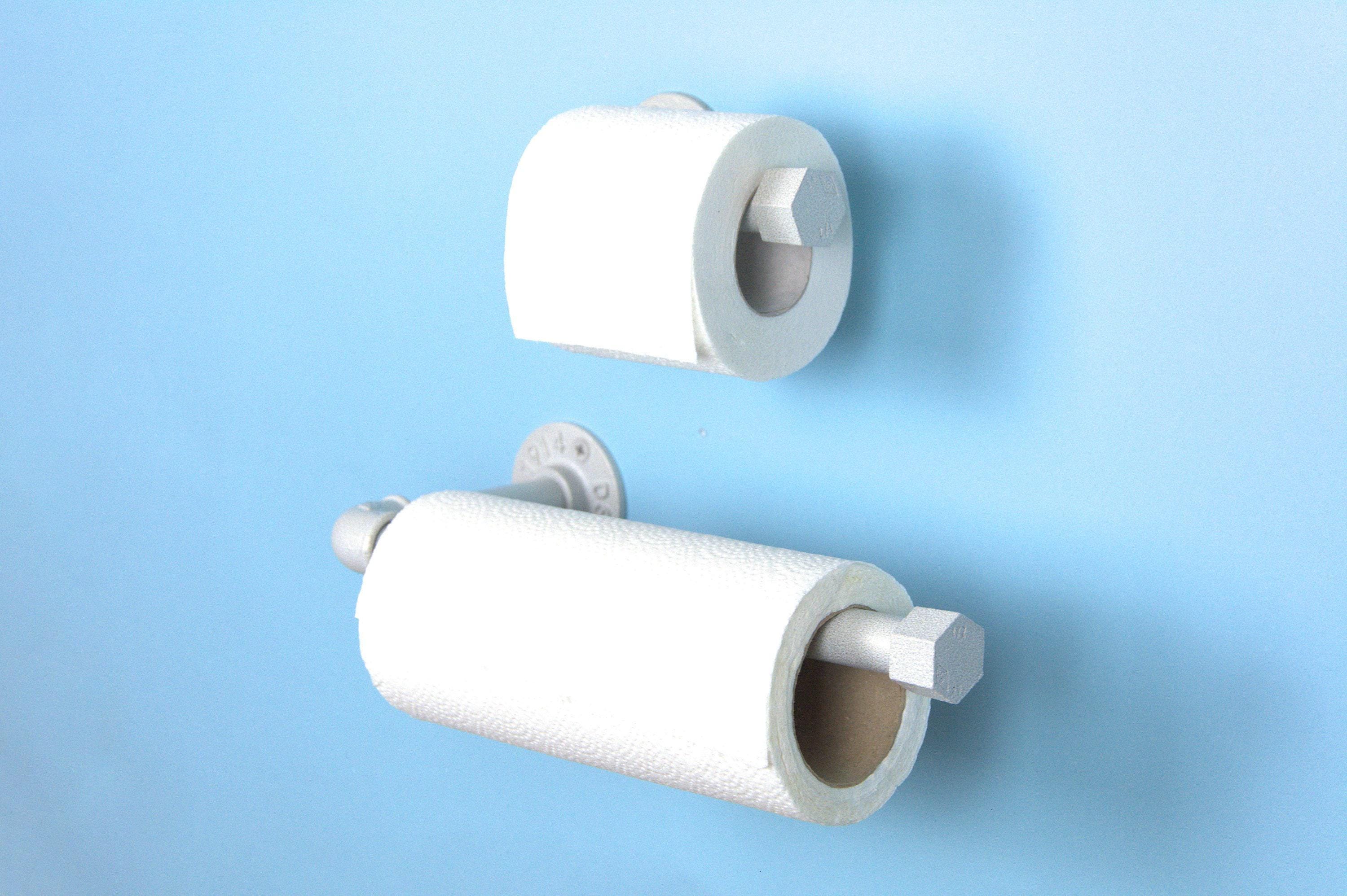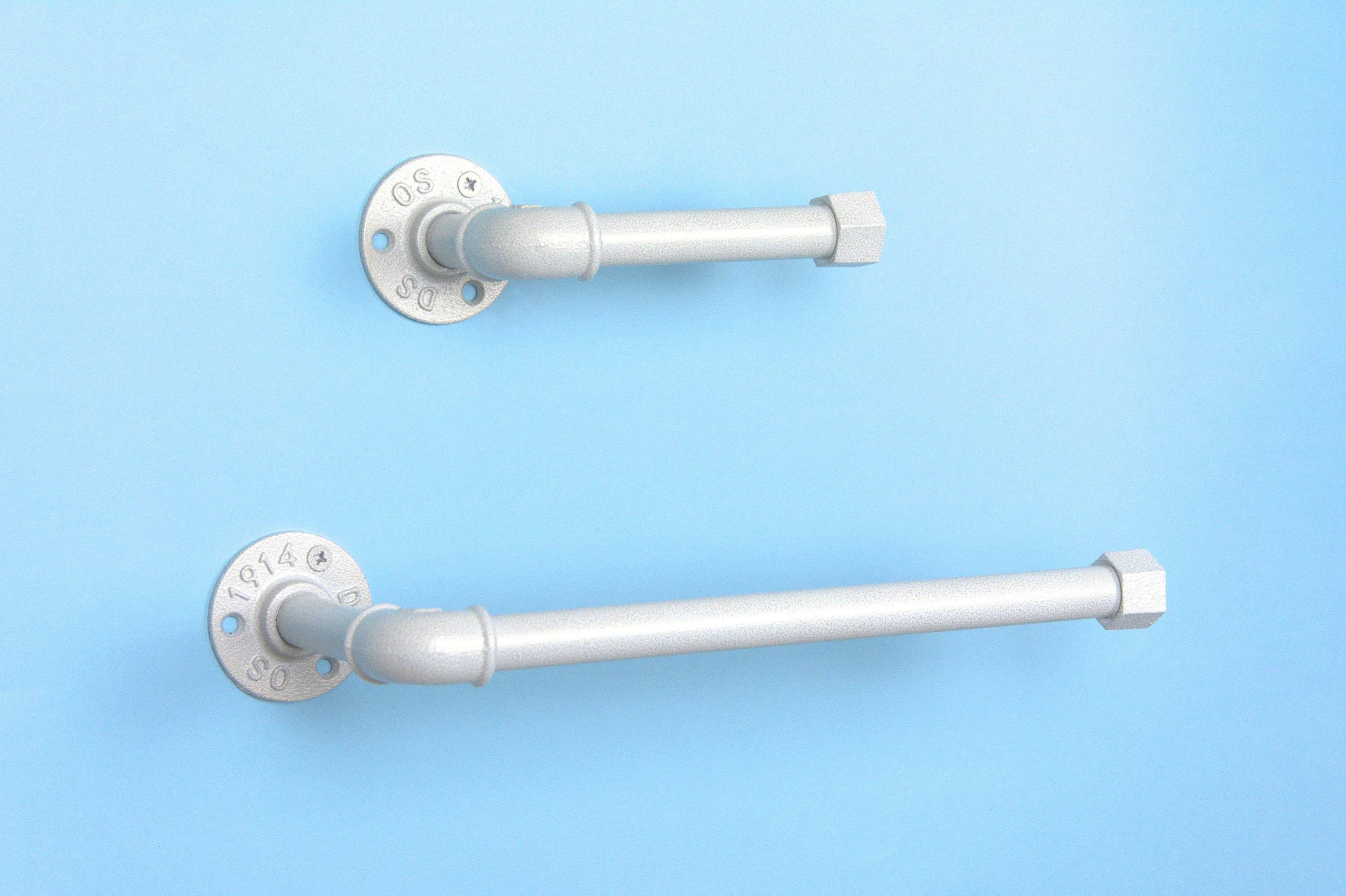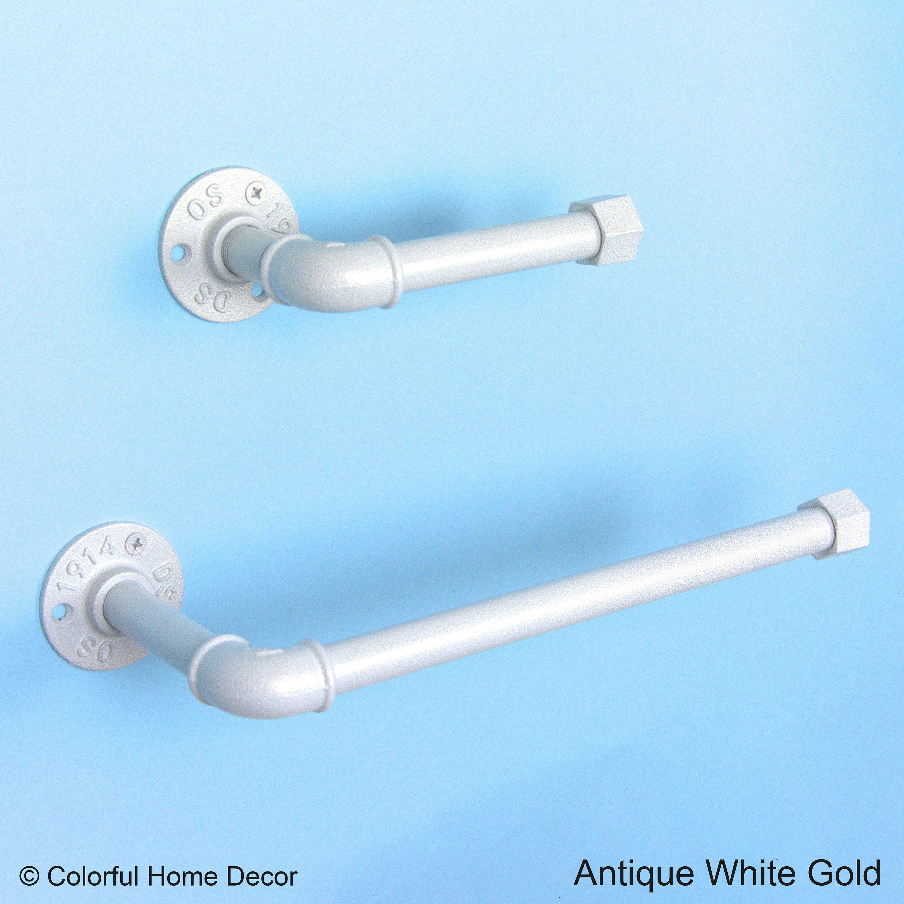 Does your urban decor restroom needs a hanging space for a toilet paper roll or a towel? Solve this problem easily with our toilet roll holder or paper towel holder made from pipe! Color in the pictures is Antique White Gold.