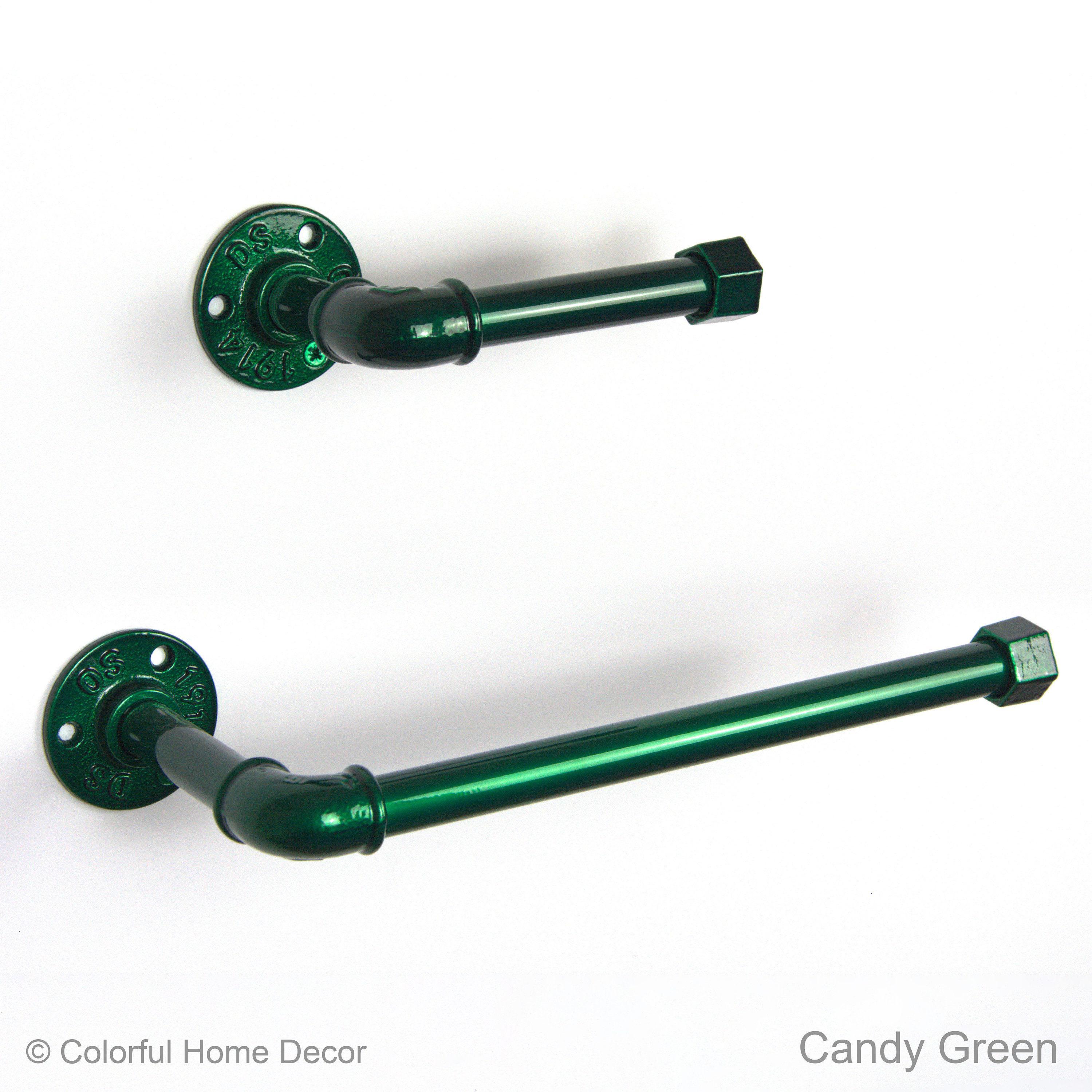 Toilet Paper Holder, Paper Towel Holder, Towel Rack, Industrial Bathroom, Space Saver, Color Pictured Candy Green
