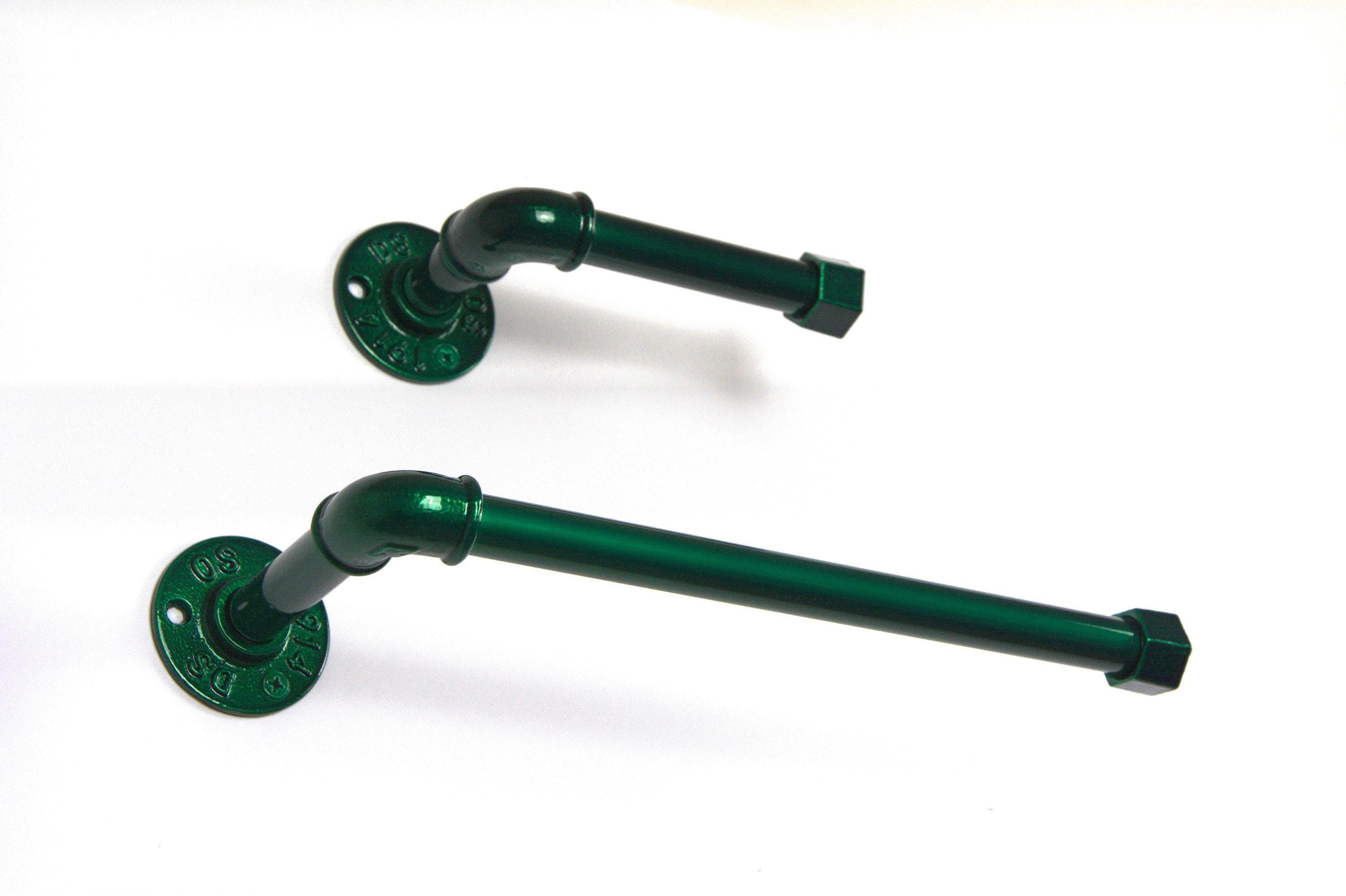 When in need of space saver piece choose from our new industrial bathroom pieces - toilet paper holder and paper towel holder made from pipe! We offer a variety of 60+ color finishes and the color pictured is Candy Green.