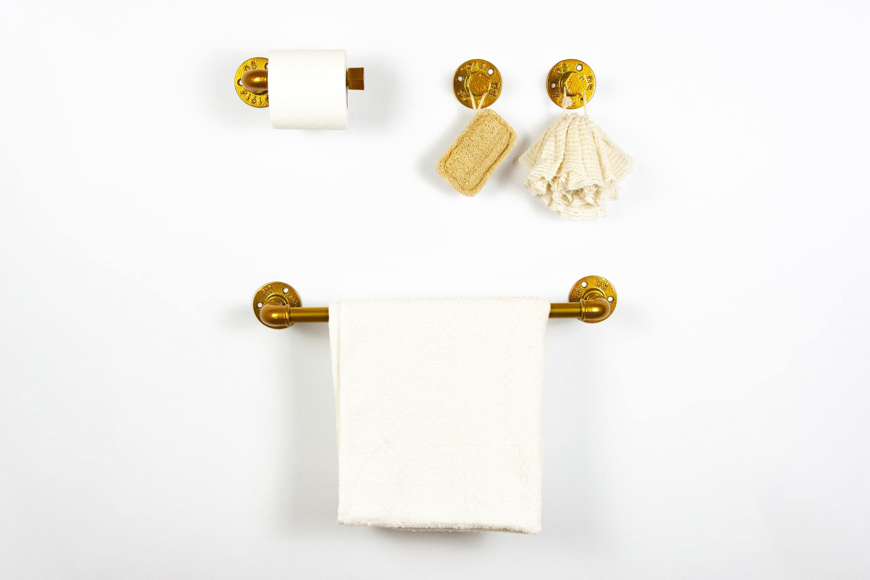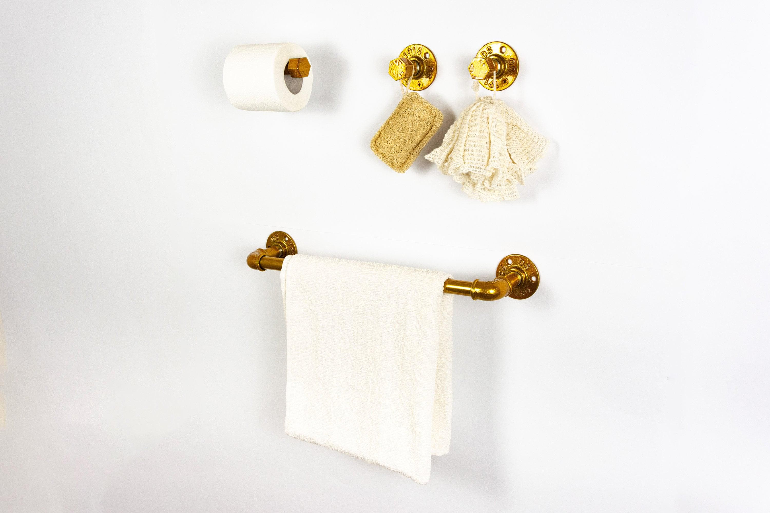 Steampunk Bathroom Accessories 4pcs Set, Includes Towel Rack, Two Towel Hooks, Toilet Paper Holder. Pipe Bathroom Set
