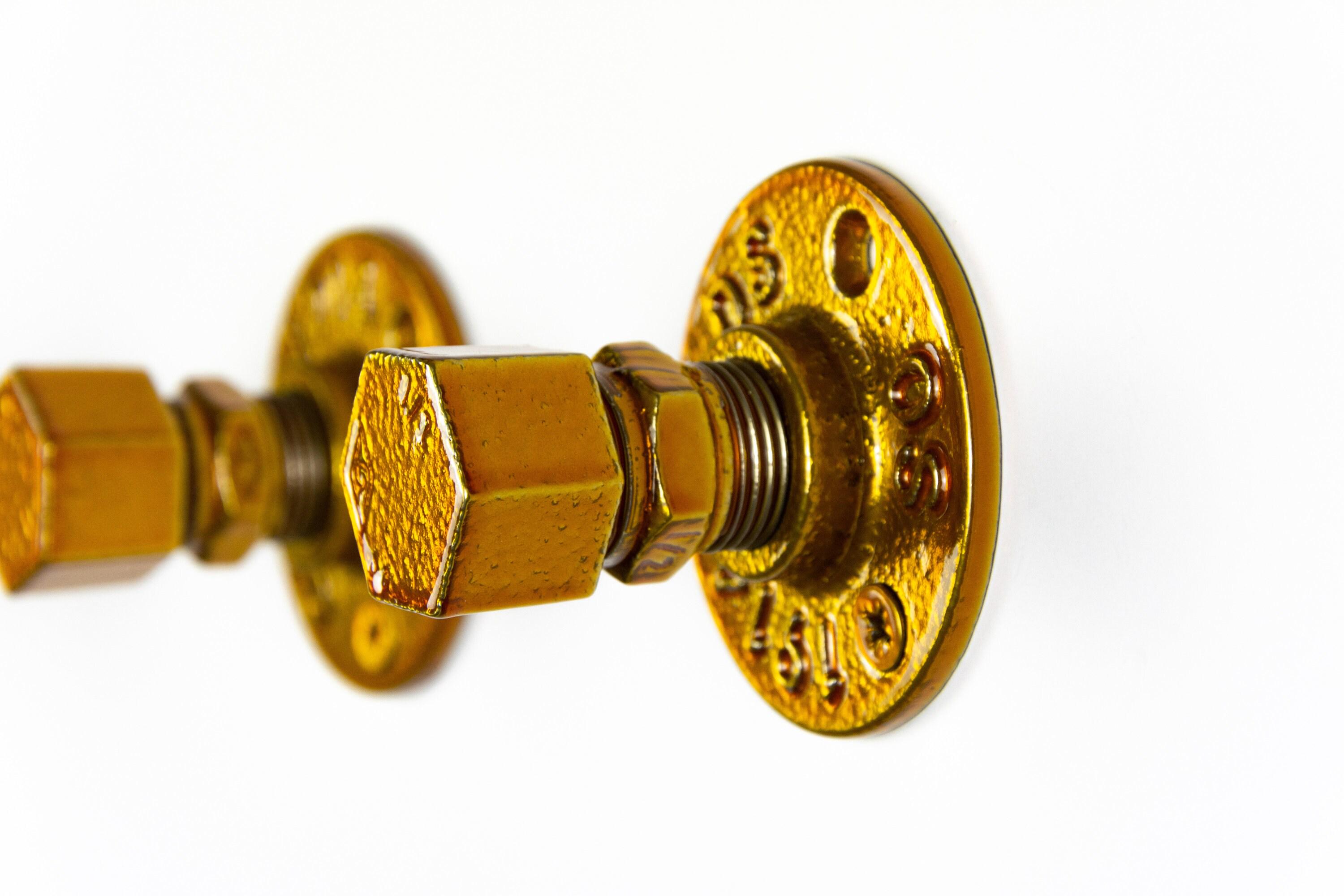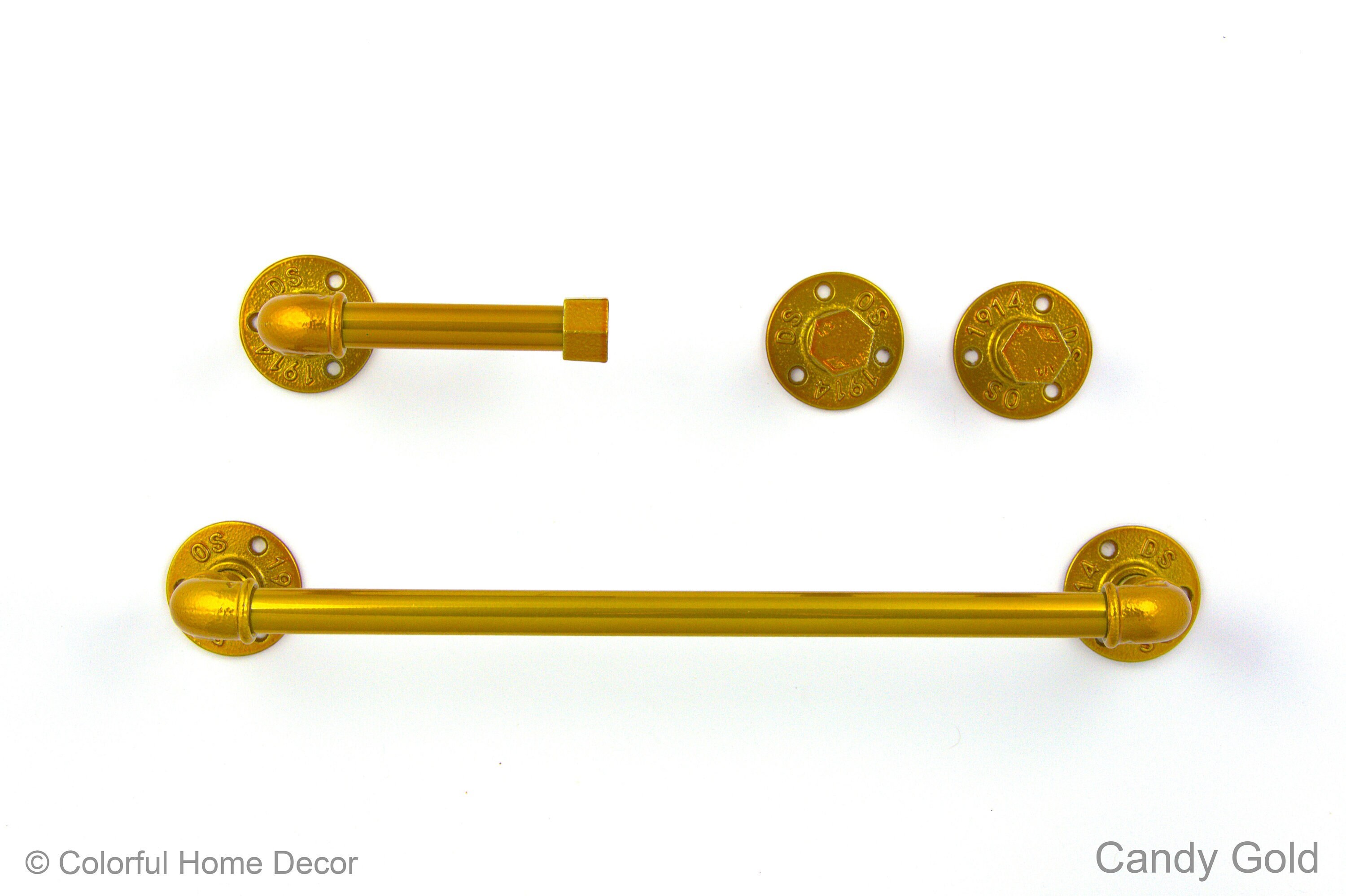 This practical steampunk bathroom set will add charm and sturdiness to any bathroom! These modern bathroom accessories that include a towel rack, two towel hooks, toilet paper holder will be sure to add a unique touch to your washroom. The color of the set in the pictures is Candy Gold, however, it can be made in more than 65 colors!