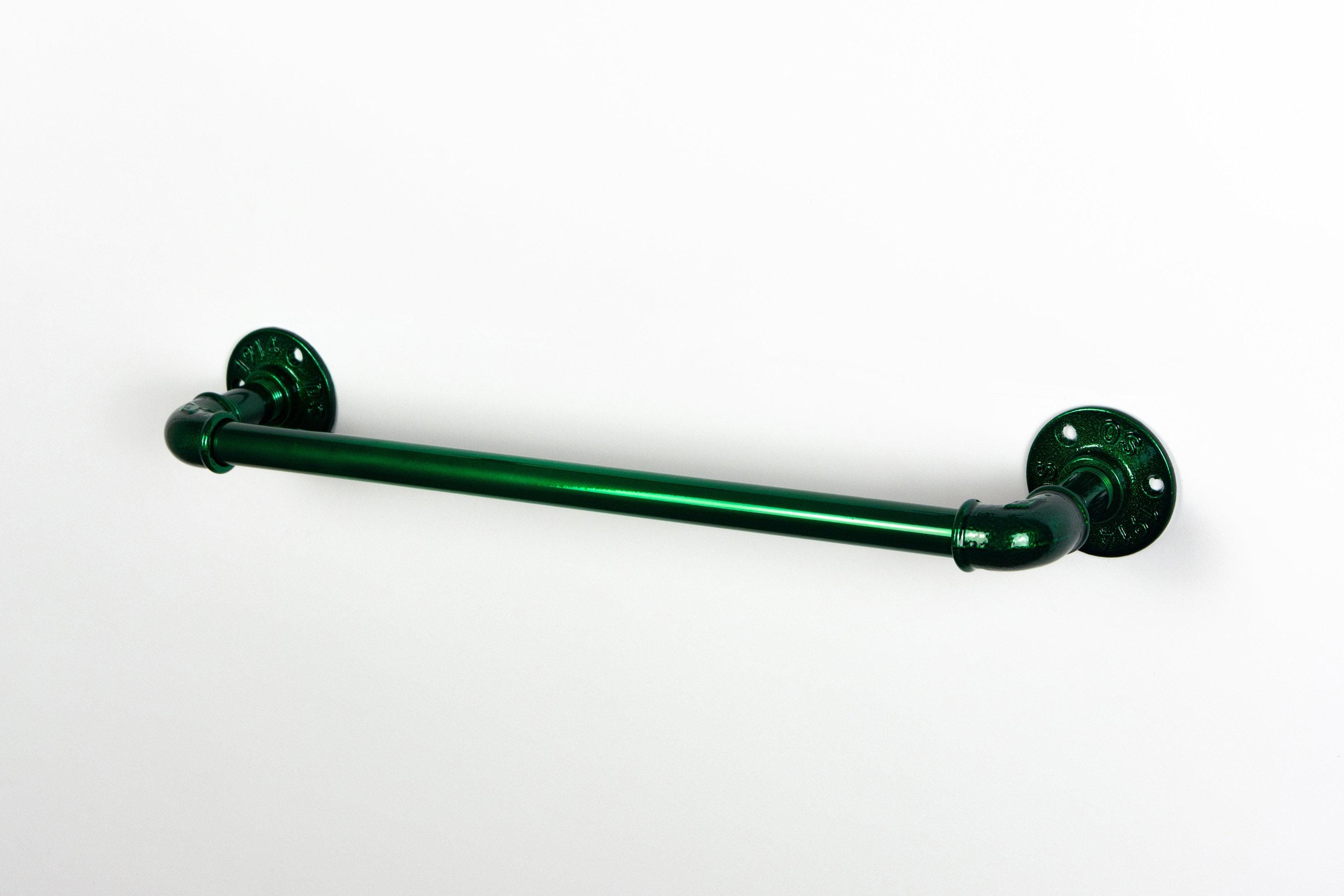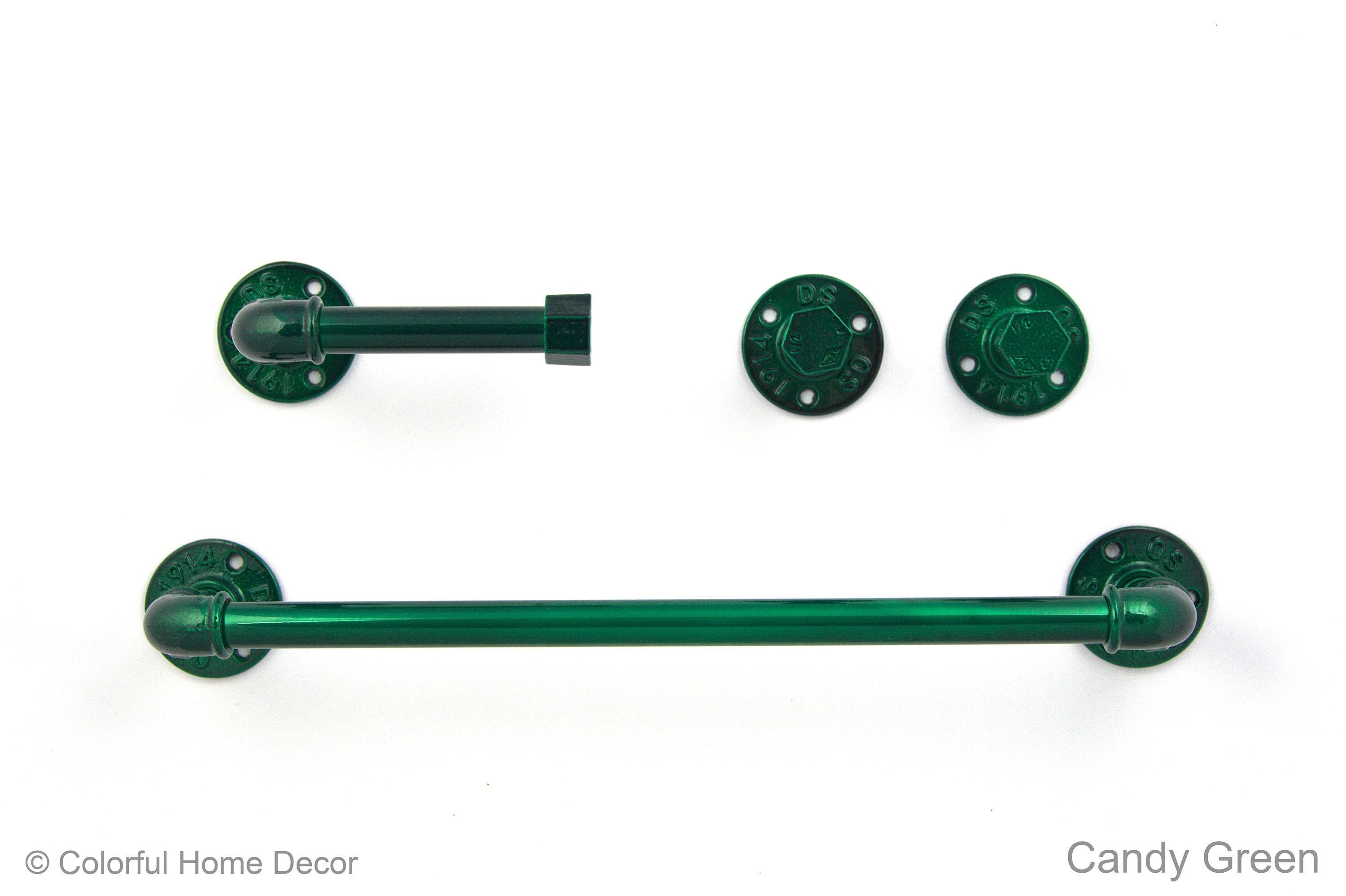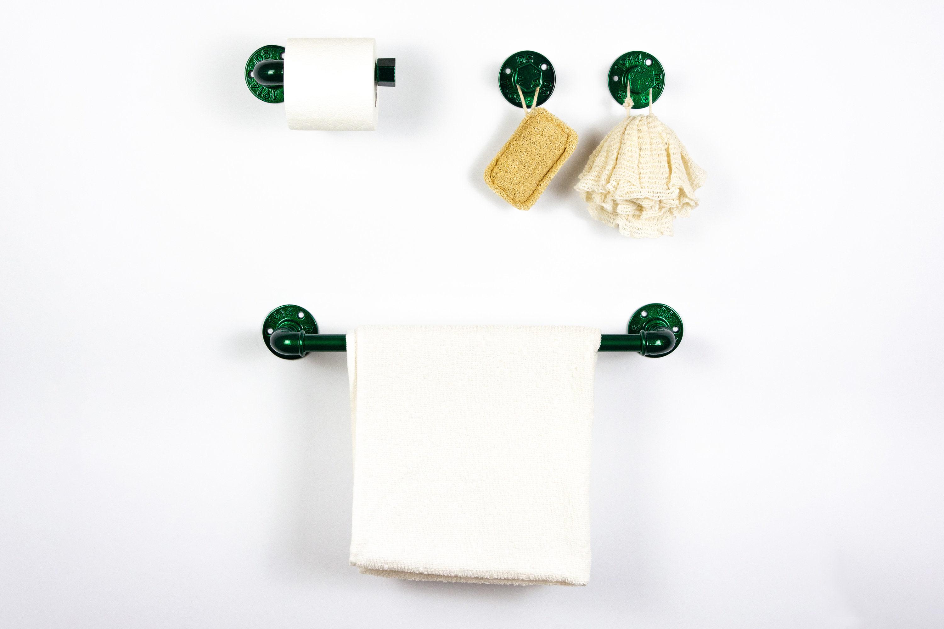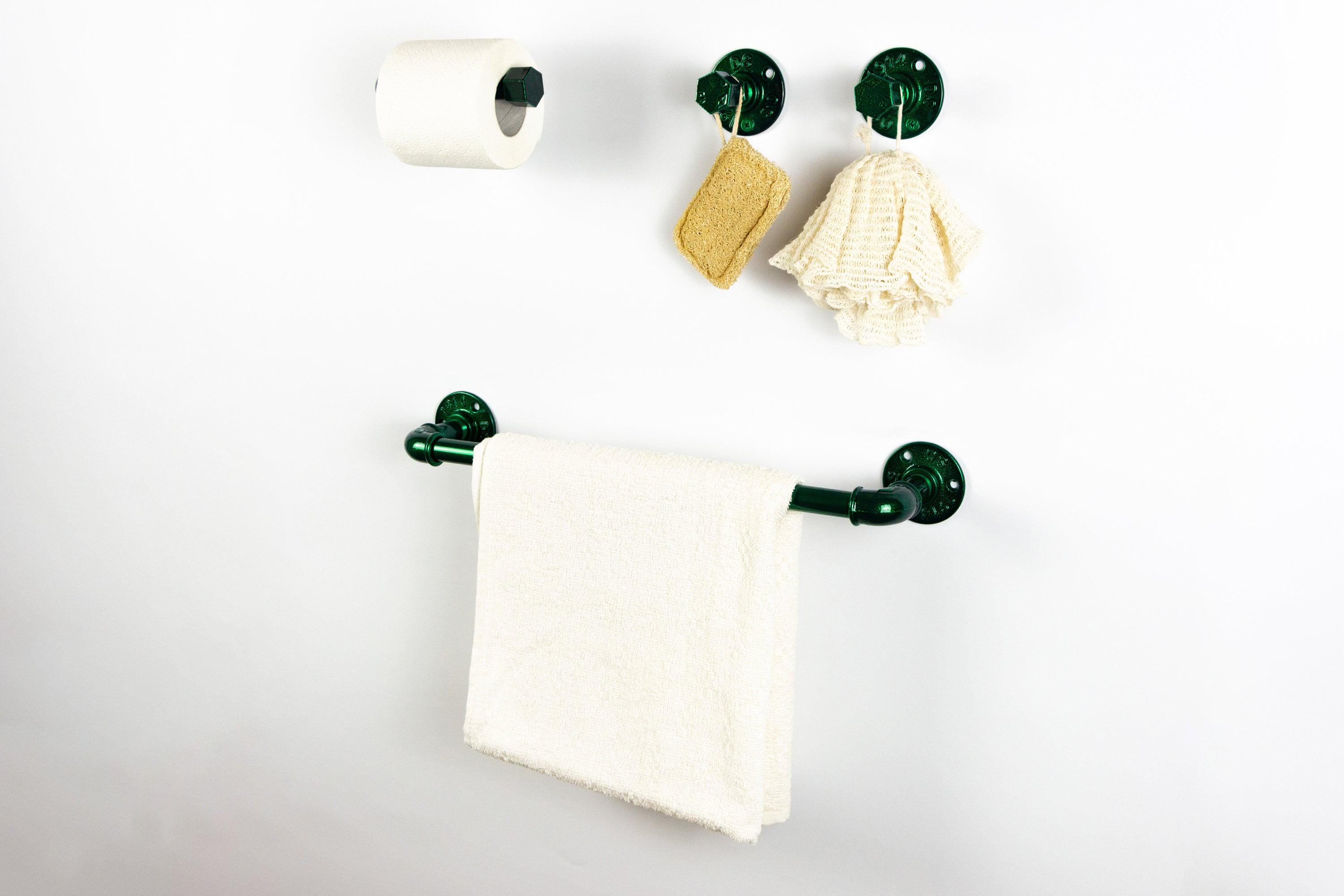Create your own unique farmhouse bathroom with these pipe bathroom accessories set! This pipe towel rack together with rustic towel hooks will hold your robes and towels while creating an amazing look in your bathroom. The color of the set in the pictures is Candy Green, however, it can be made in more than 65 colors!