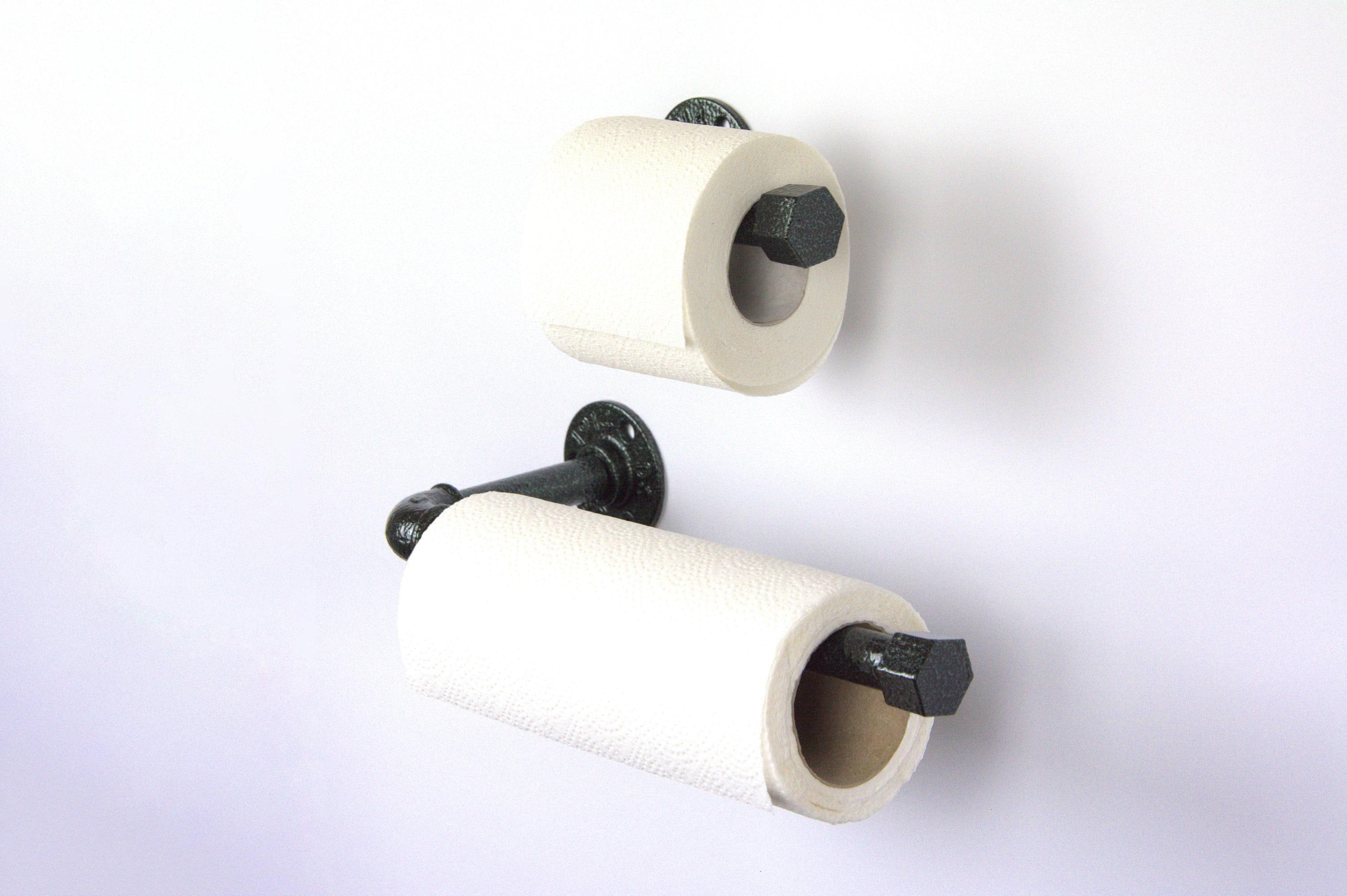 Does your urban decor restroom needs a hanging space for a toilet paper roll or a towel? Solve this problem easily with our toilet roll holder or paper towel holder made from pipe! Color in the pictures is Antique Green.