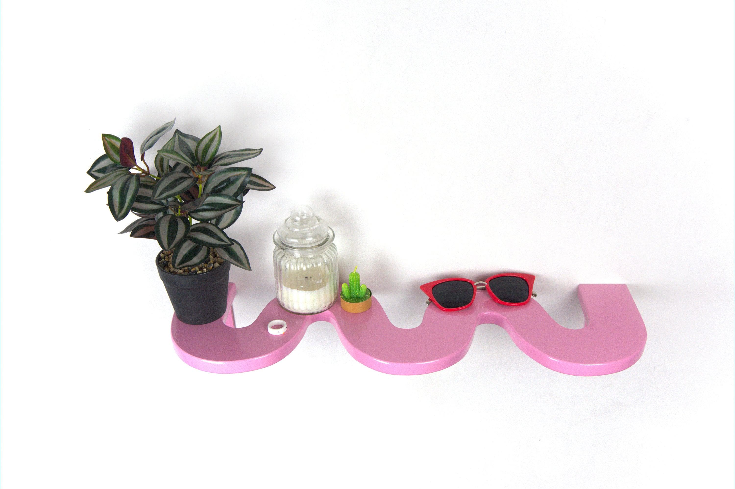 Squiggle Shelf - Pastel Pink Shelf, Funky Decor, Danish Pastel, Aesthetic Shelf, Colorful Decor