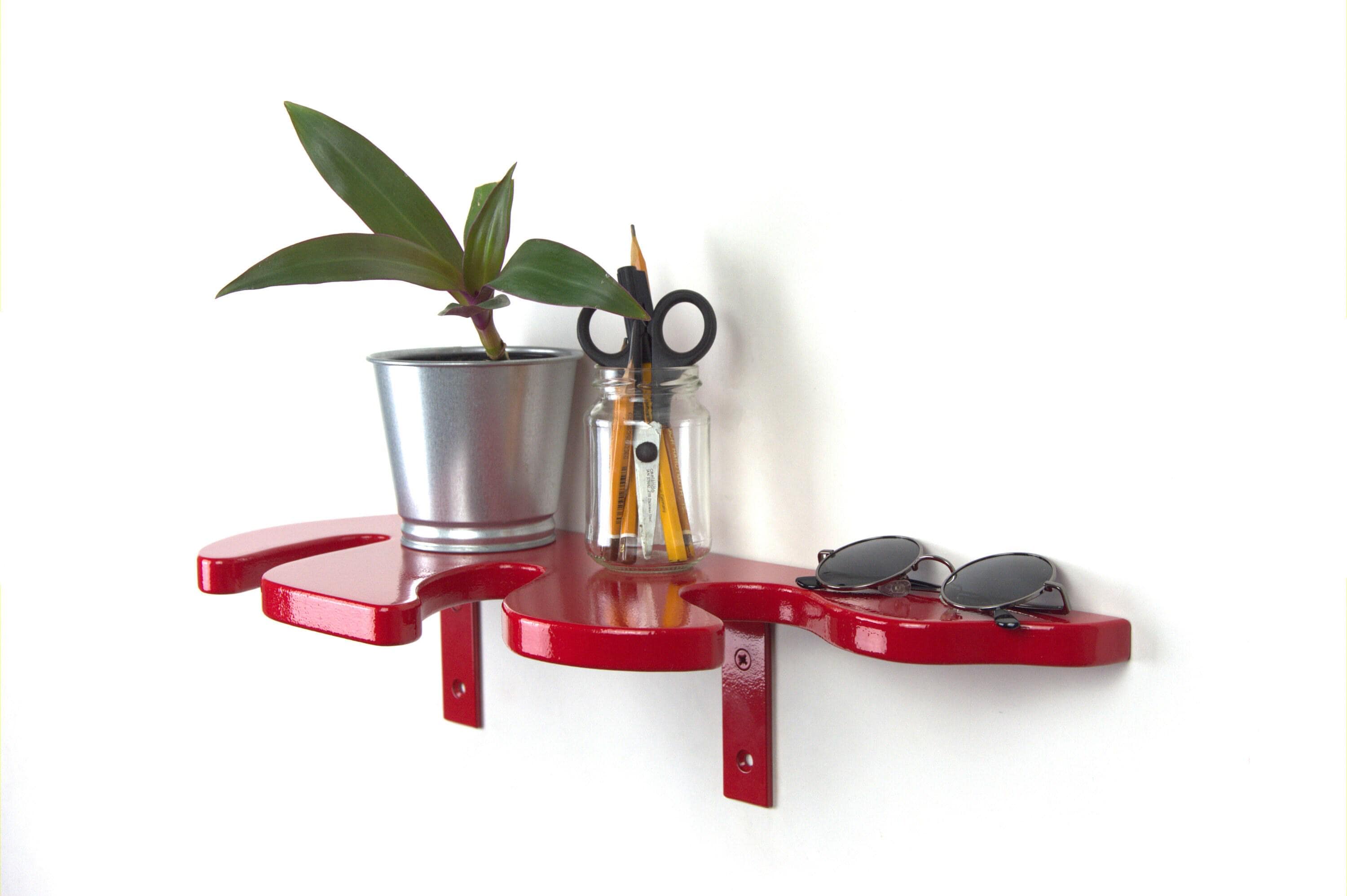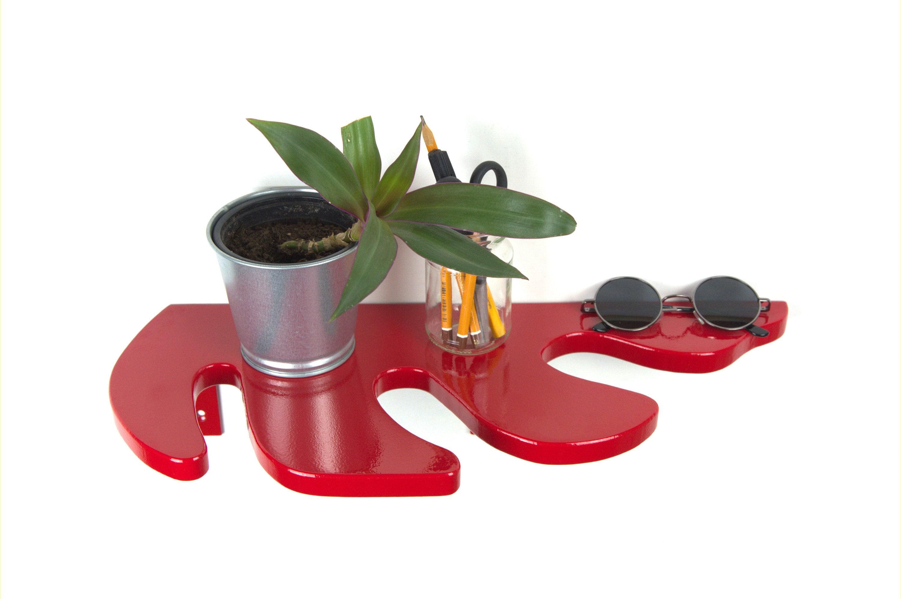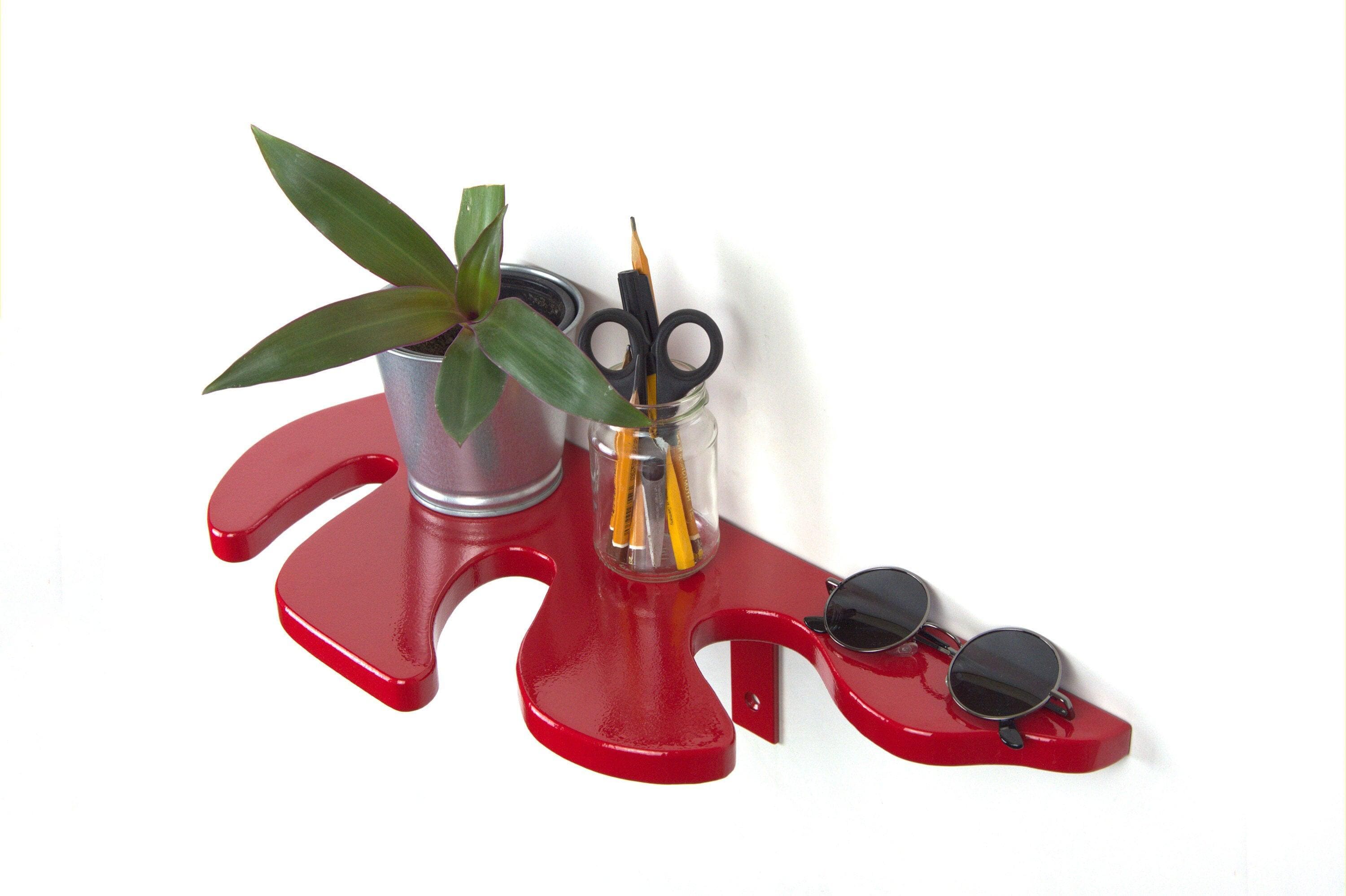 Wall Plant Shelf - Red Hanging Shelf, Wall Art, Funky Decor, Monstera Shelf, Aesthetic Room Decor