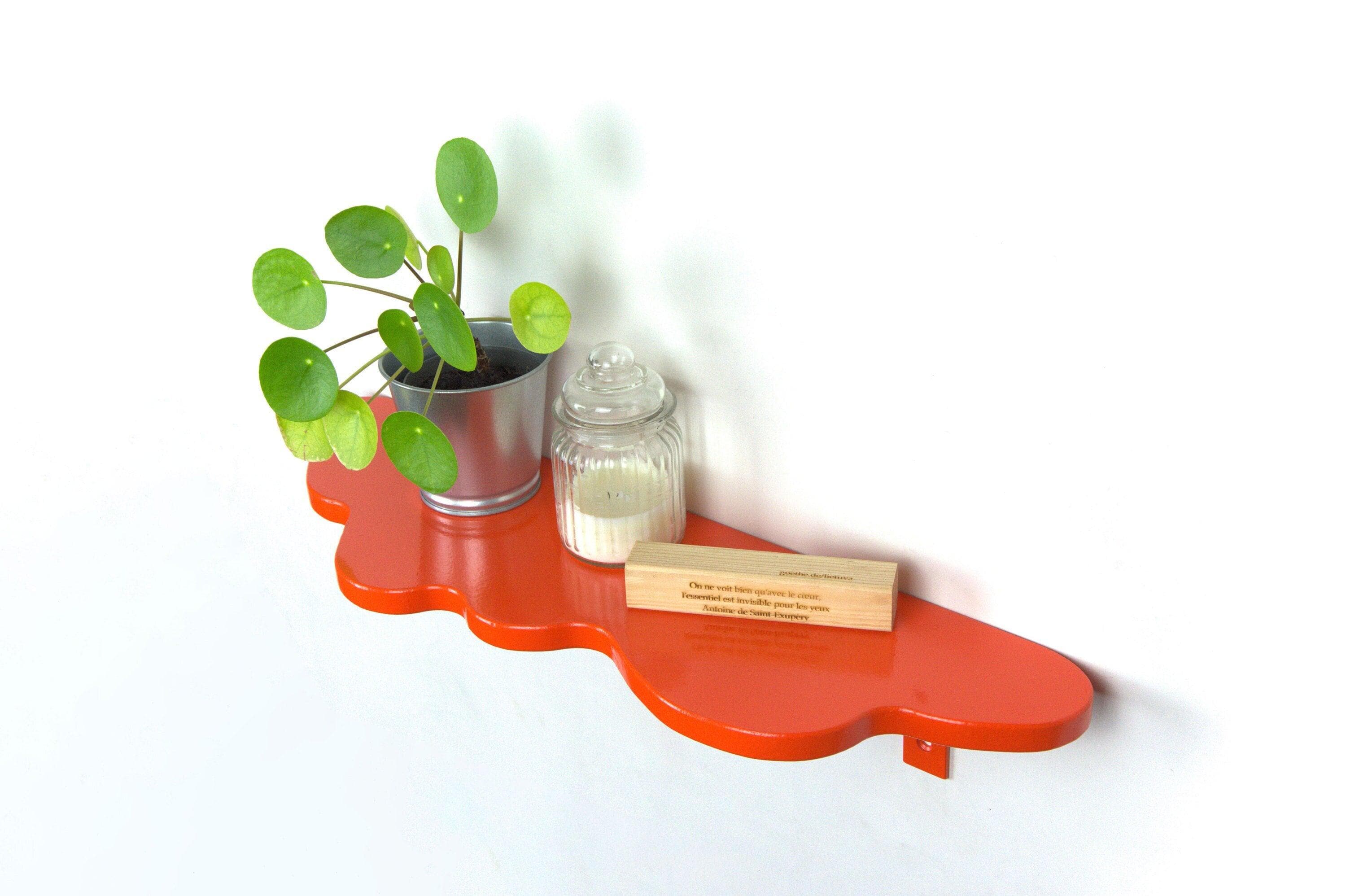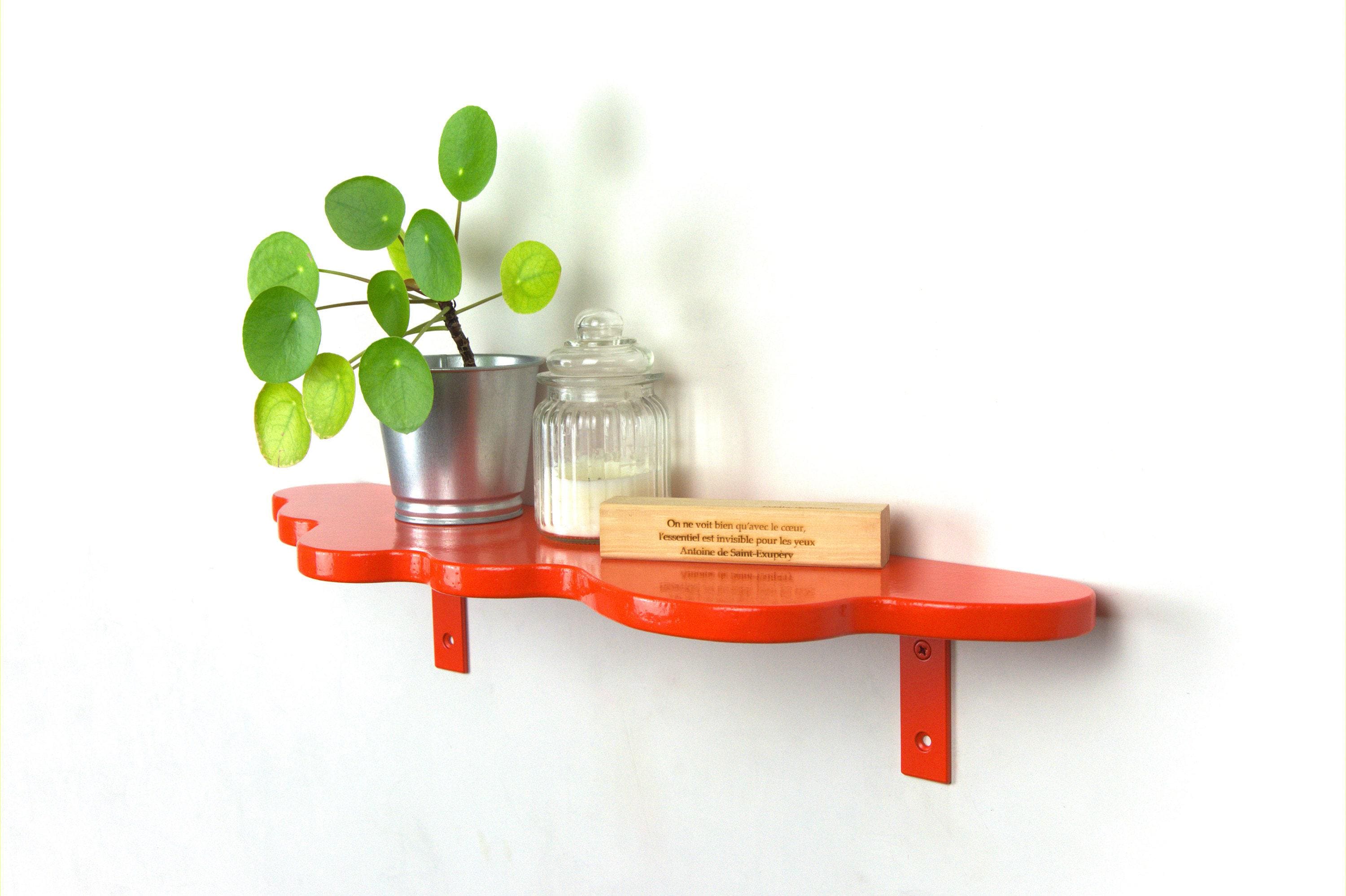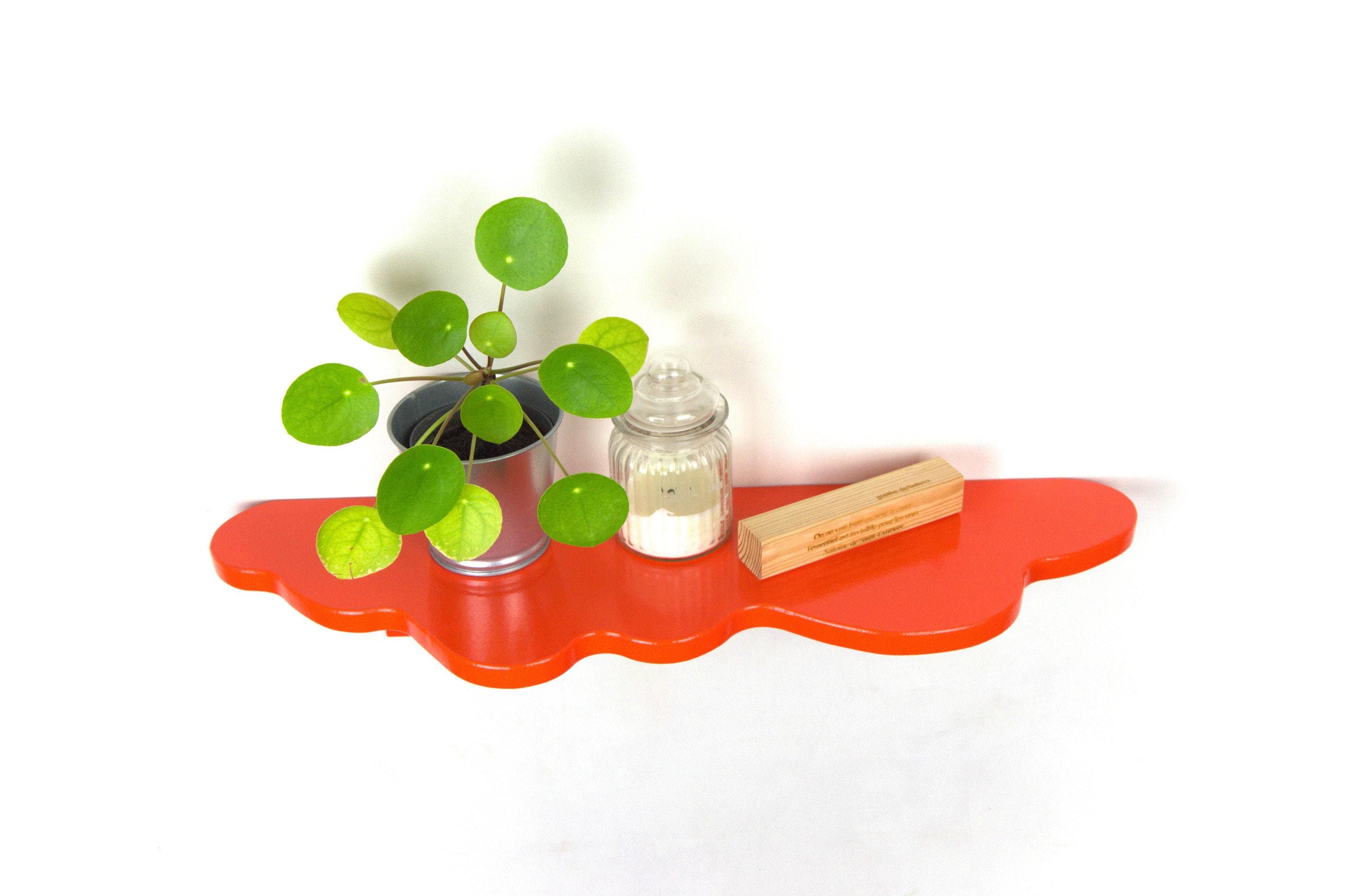 Add a touch of funk and personality to your home with our aesthetic orange shelf. This handmade floating wavy shelf is perfect for displaying plants, books, or other decorative items. It's sure to be a conversation starter in any room!