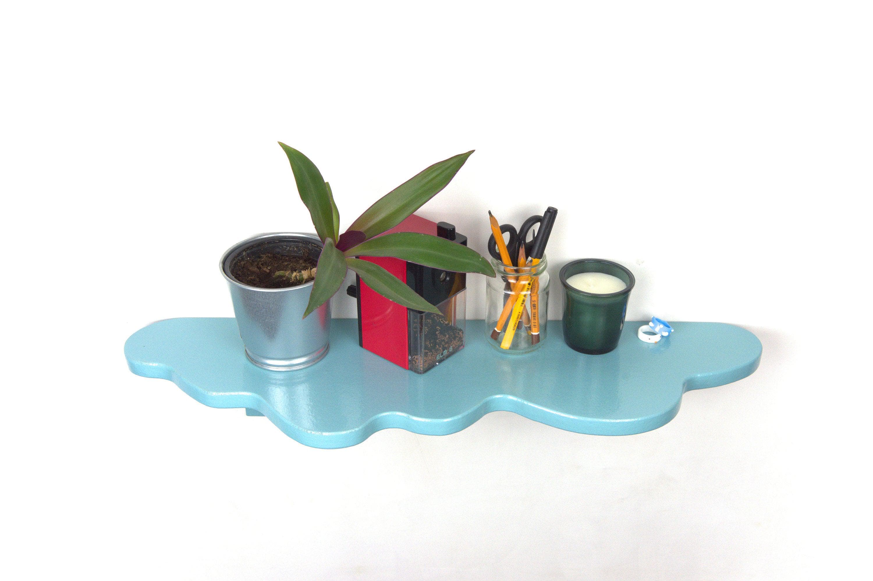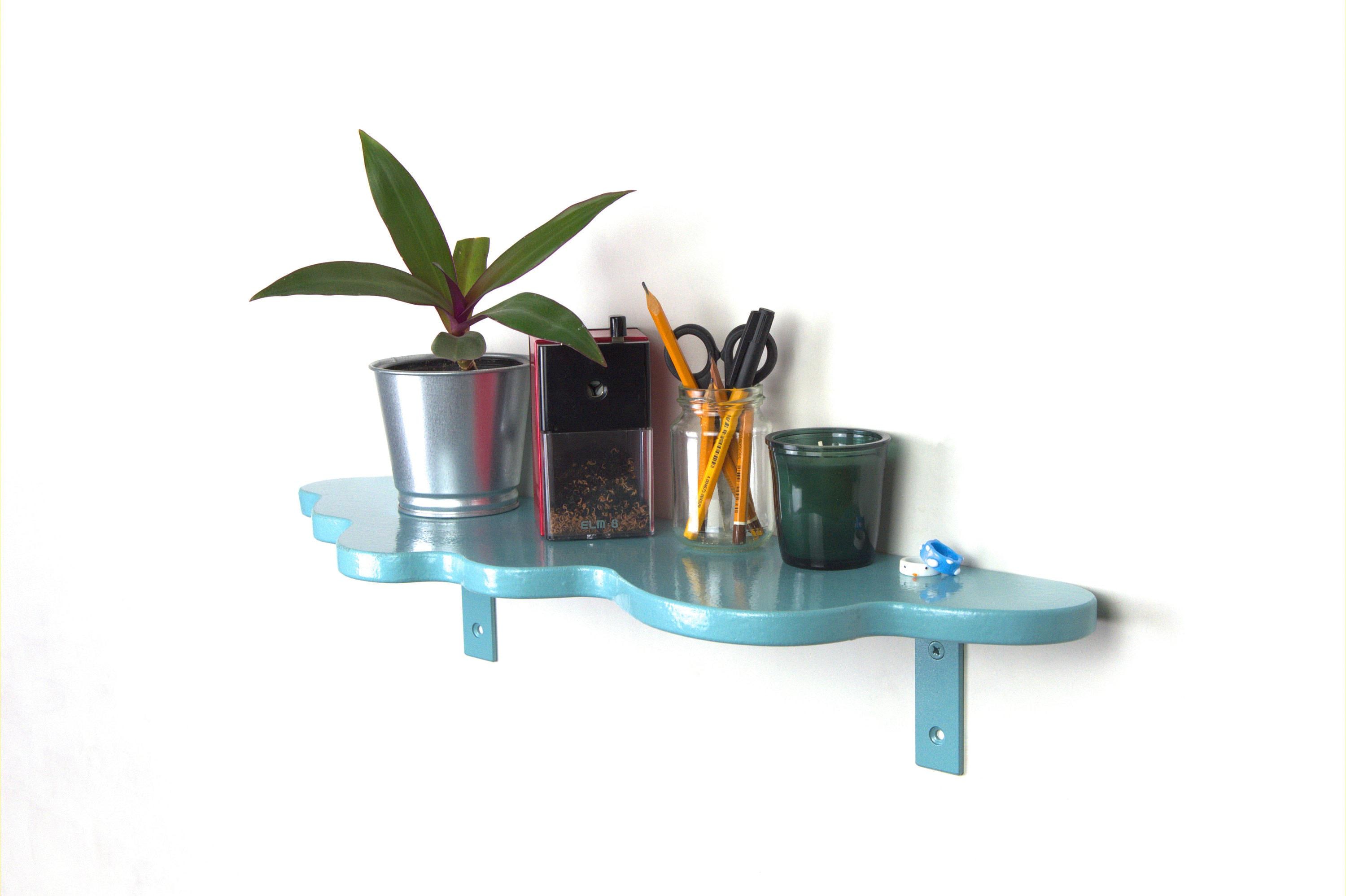 Our light blue wavy floating plant shelf is a unique and eye-catching addition to your home. Handmade with high-quality materials, this shelf is perfect for displaying your favorite plants, books, or other decorative items. It's sure to add a touch of bohemian style and Danish pastel color to any room!