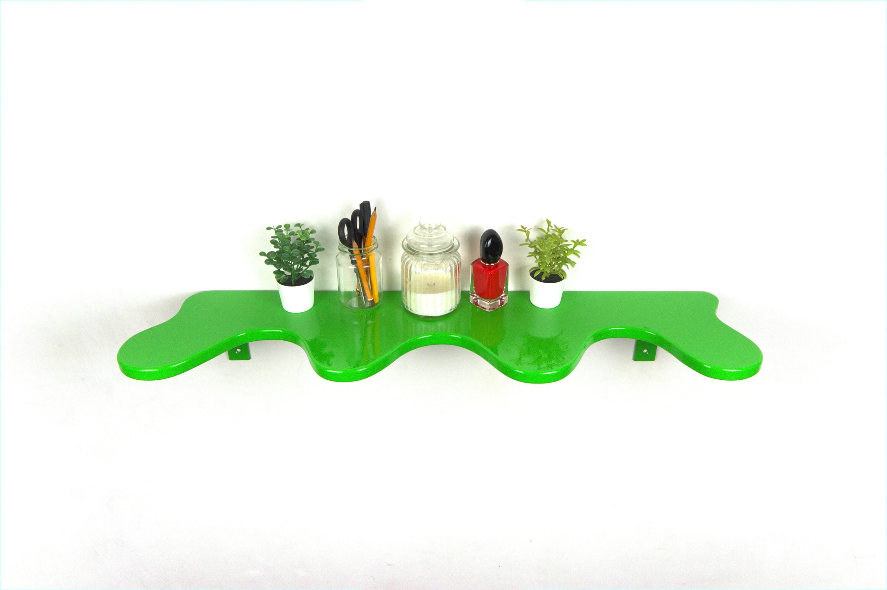 Bring a touch of nature's freshness to your home with this eye-catching wavy shelf in a vibrant shade of green. Perfect for displaying your favorite colorful decor, this shelf is sure to add a touch of fun and personality to any room!