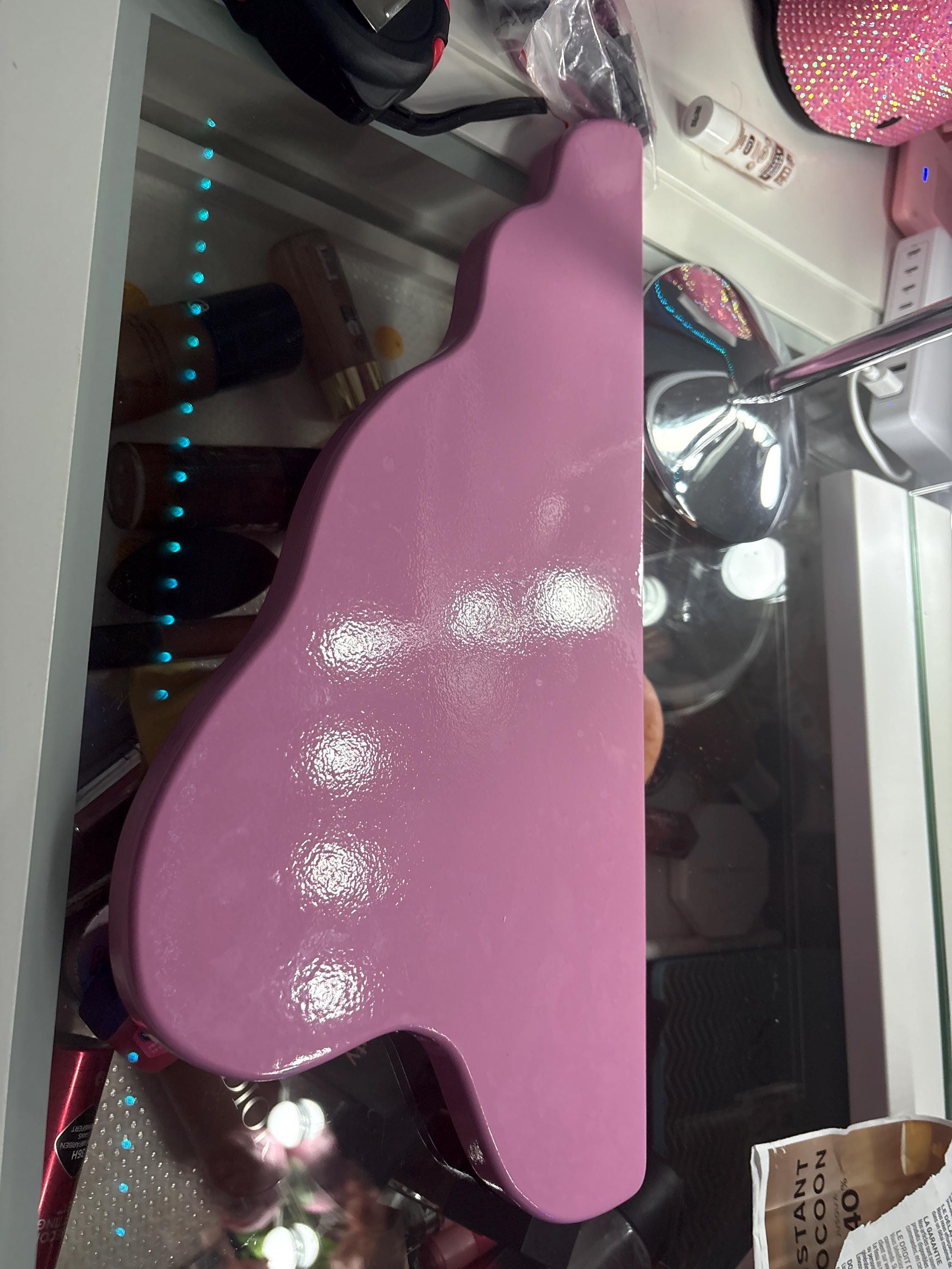 Embrace the joy of maximalist decor with this captivating pastel pink wavy shelf. Inspired by Danish pastel colors, this shelf is sure to add a touch of playfulness and vibrancy to any room!